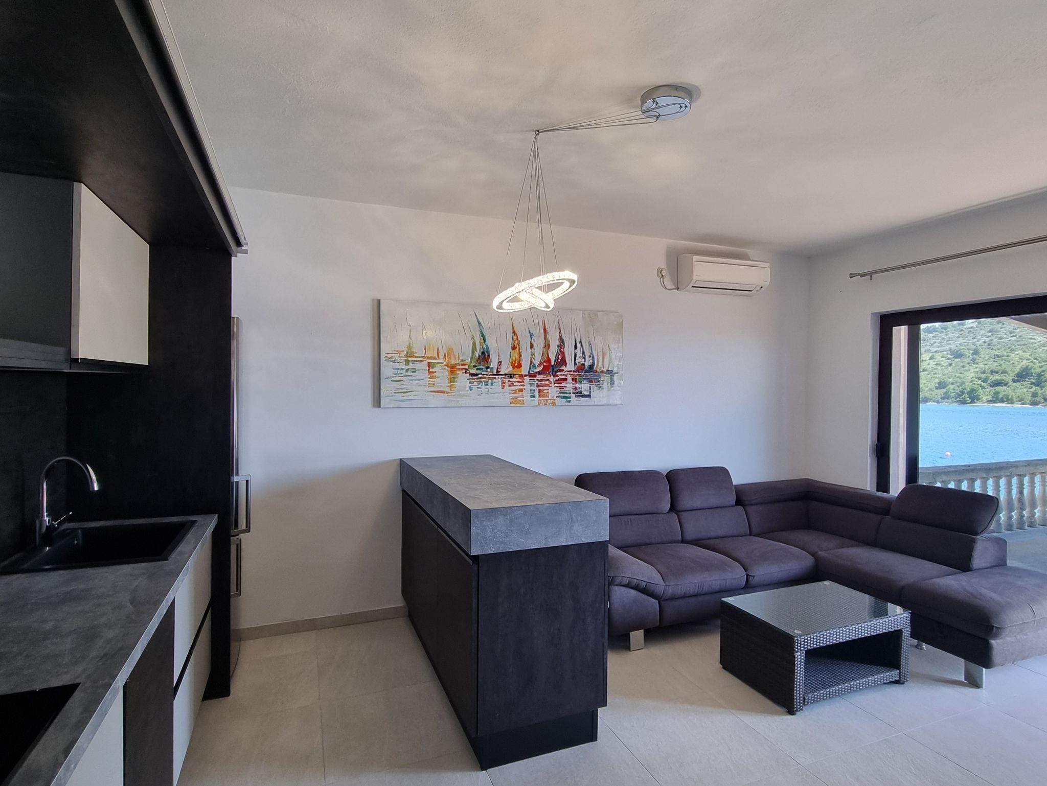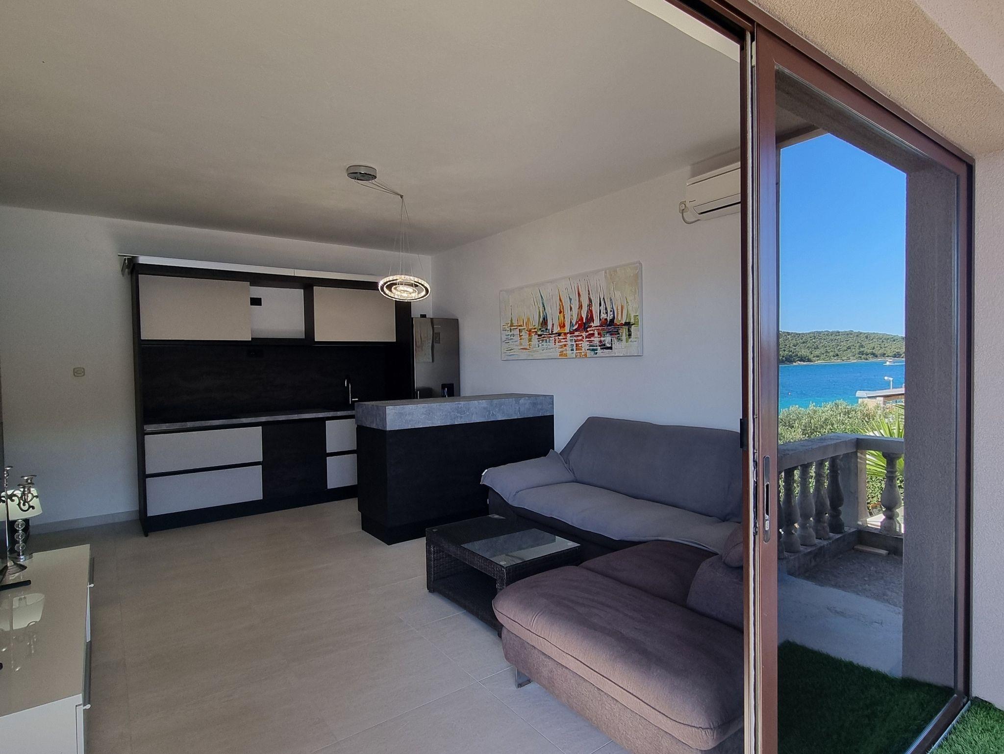 Ferienwohnung bietet Platz für 3 Gäste. Die Betten sind in Schlafzimmern, die es 1 gibt, und in Wohnzimmer, innerhalb einer Gesamtfläche von 44m2, angeordnet. Die Gäste haben eine eigene Terrasse zur Verfügung, auf der sie in warmen Sommernächten genießen können. Das Apartment bietet Meerblick. Es ist erlaubt, Speisen auf dem Gemeinschafts-Grill vorzubereiten. In der Unterkunftseinheit besteht die Möglichkeit des Mitbringens von Haustieren, und die Dienstleistung ist im Preis der Unterkunft enthalten. IM PREIS INBEGRIFFEN: Kurtaxe, Endreinigung, Klimatisierung, Parkplatz, Internet, Boot, Bootsanlegeplatz, Haustiere, Fahrrad, Kinderbett, Bügeleisen, Bügelbrett, Föhn, Sonnenschirm, Liegestühle. Die Verfügbarkeit zusätzlicher Dienstleistungen in Ihrem reservierten Termin und die Preise derselben (falls nicht aufgeführt) müssen im Voraus überprüft werden. Zusätzliche Dienstleistungen die in der Zahlungsaufforderung nicht aufgeführt sind werden direkt beim Vermieter bezahlt, angenommen der Gast nutzt auch diese.