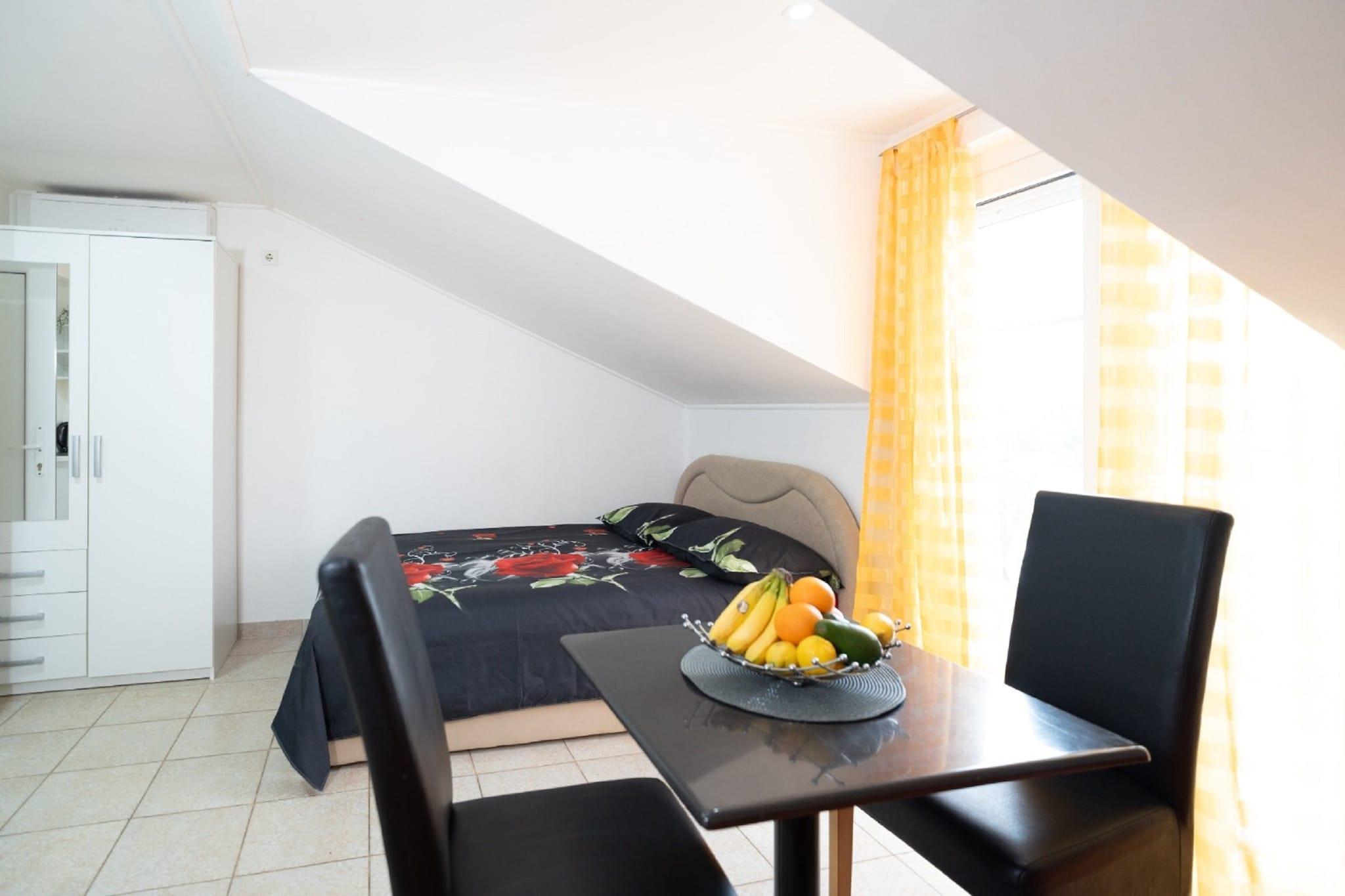 Apartments Milic are located in small place Karin Gornji, approximately 45 kilometers away from Zadar. A common BBQ grill is at your disposal, which makes this place a perfect spot for a nice and relaxing vacation. Private parking is provided,reservation is not needed. A baby cot and highchair are available upon request. Laundry room is available with an additional coast of 5euros. The property has a restaurant on-site and seasonal pool. This studio apartment with sea view can accommodate up to four people. It features SAT LCD TV as well as air-conditioning. The kitchenette is equipped with refrigerator, water kettle, freezer, stove, kitchen utensils and dining area. The private bathroom comes with shower and toilet. Bed linen as well towels are at your disposal. This location is perfect for guests who love to enjoy the sun and the sea, being close to the touristic center, but far enough to avoid the crowds and keep their peace and privacy. The closest sandy beach is 500 m away from Šljuncana beach. All You need can be found within 50 m range, such as restaurants, grocery store. Airport is 23 km away, while bus stop is only 500 m away.