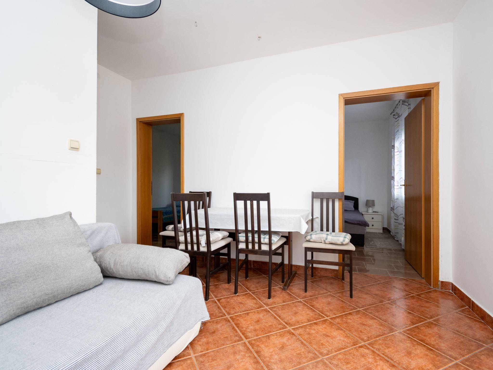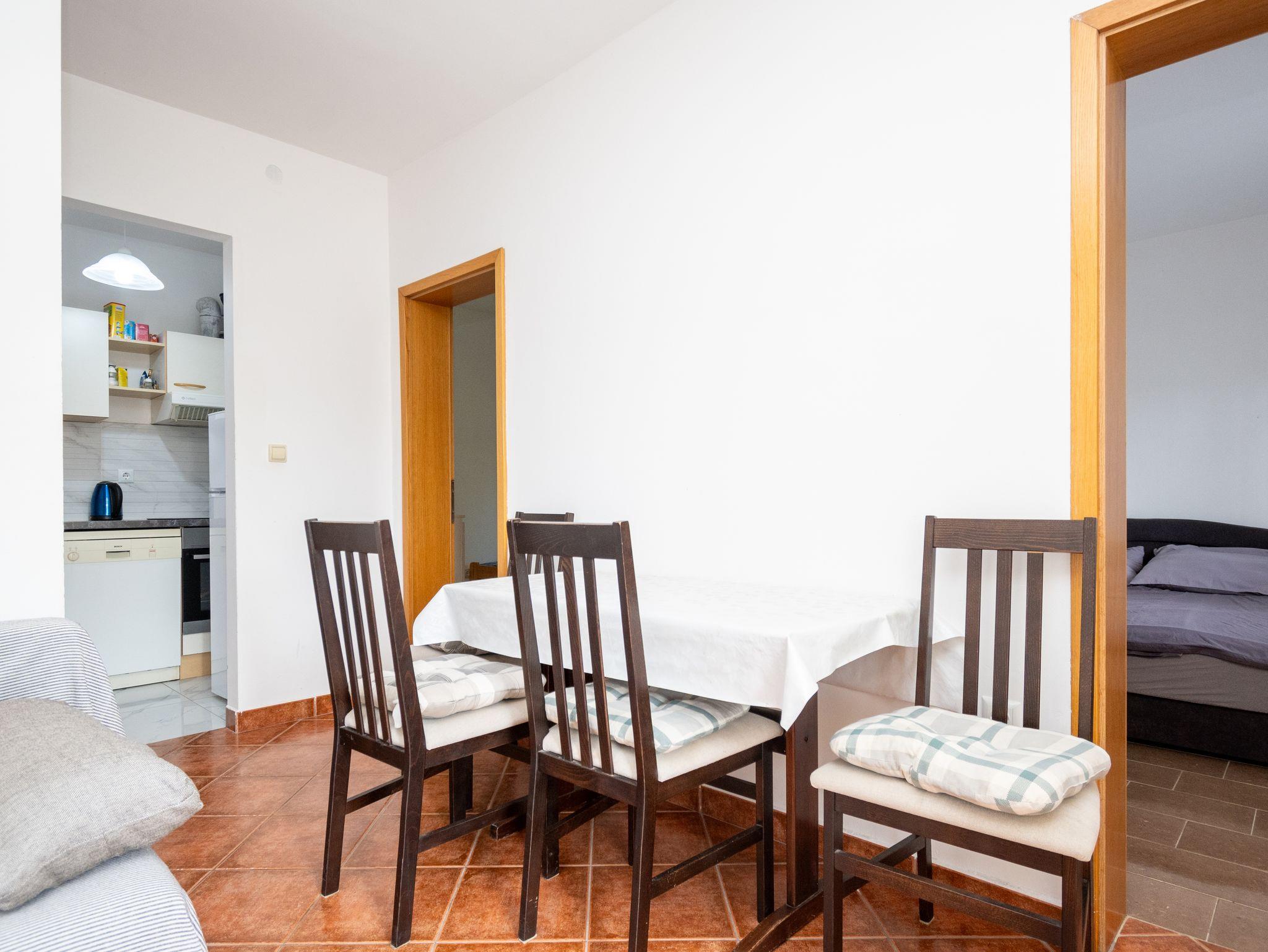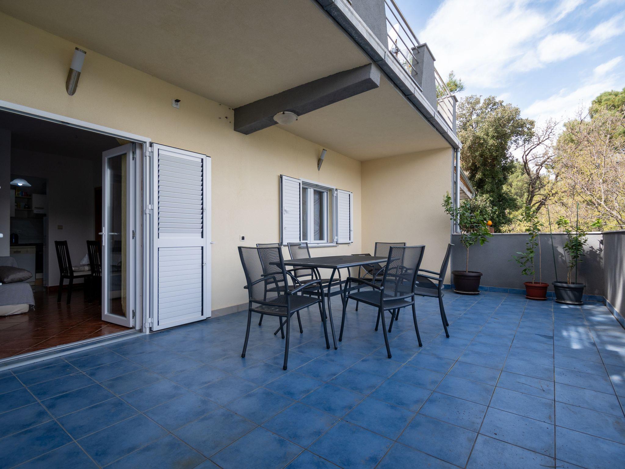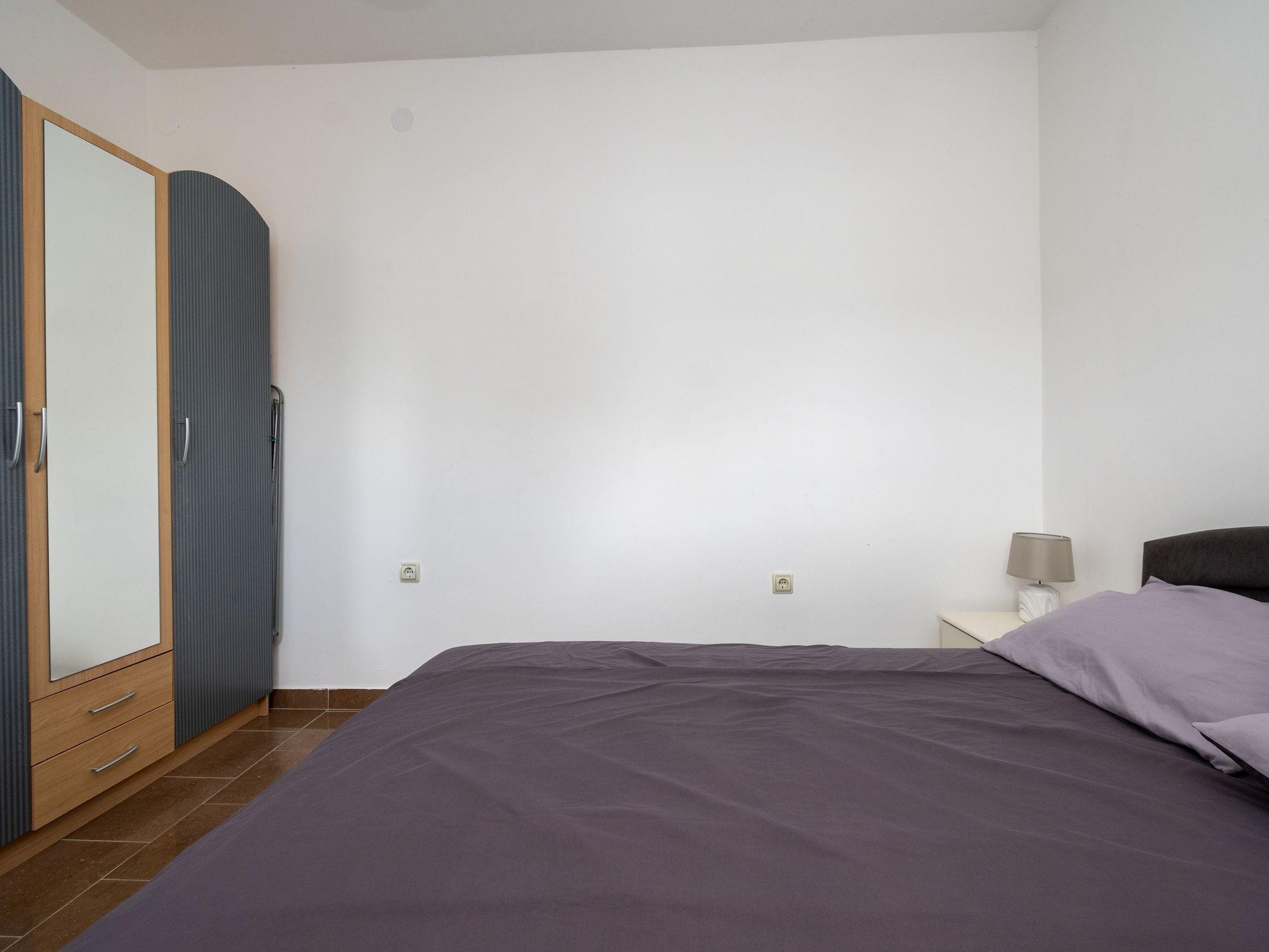 Ferienwohnung bietet Platz für 6 Gäste. Die Betten sind in Schlafzimmern, die es 2 gibt, und in Wohnzimmer, innerhalb einer Gesamtfläche von 46m2, angeordnet. Die Gäste haben eine eigene Terrasse zur Verfügung, auf der sie in warmen Sommernächten genießen können. Das Apartment bietet Meerblick. Für vollen Genuss und Entspannung gibt es einen privaten Grill für Gäste dieser Unterkunft. In der Unterkunftseinheit besteht die Möglichkeit des Mitbringens von Haustieren gegen Aufpreis. IM PREIS INBEGRIFFEN: Kurtaxe, Endreinigung, Klimatisierung, Parkplatz, Internet, Kinderbett, Bügeleisen, Bügelbrett, Föhn. UNVERBINDLICHE ZUSÄTZLICHE KOSTEN: Haustiere (5,00 € pro Nacht). Die Verfügbarkeit zusätzlicher Dienstleistungen in Ihrem reservierten Termin und die Preise derselben (falls nicht aufgeführt) müssen im Voraus überprüft werden. Zusätzliche Dienstleistungen die in der Zahlungsaufforderung nicht aufgeführt sind werden direkt beim Vermieter bezahlt, angenommen der Gast nutzt auch diese. Ermäßigung auf den Grundpreis: Gratistag 14=13 (bei einem Aufenthalt von 14 Tagen oder mehr erhalten Sie einen Gratistag für den Aufenthalt bis 31.12.26).