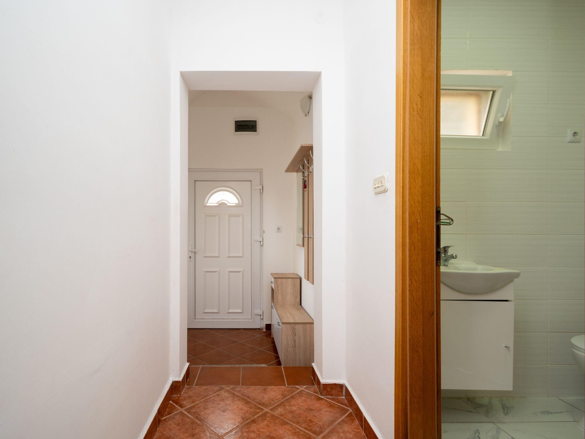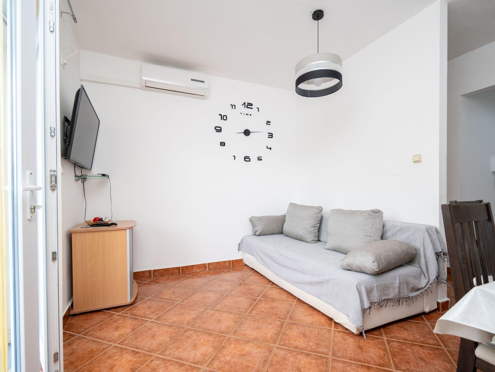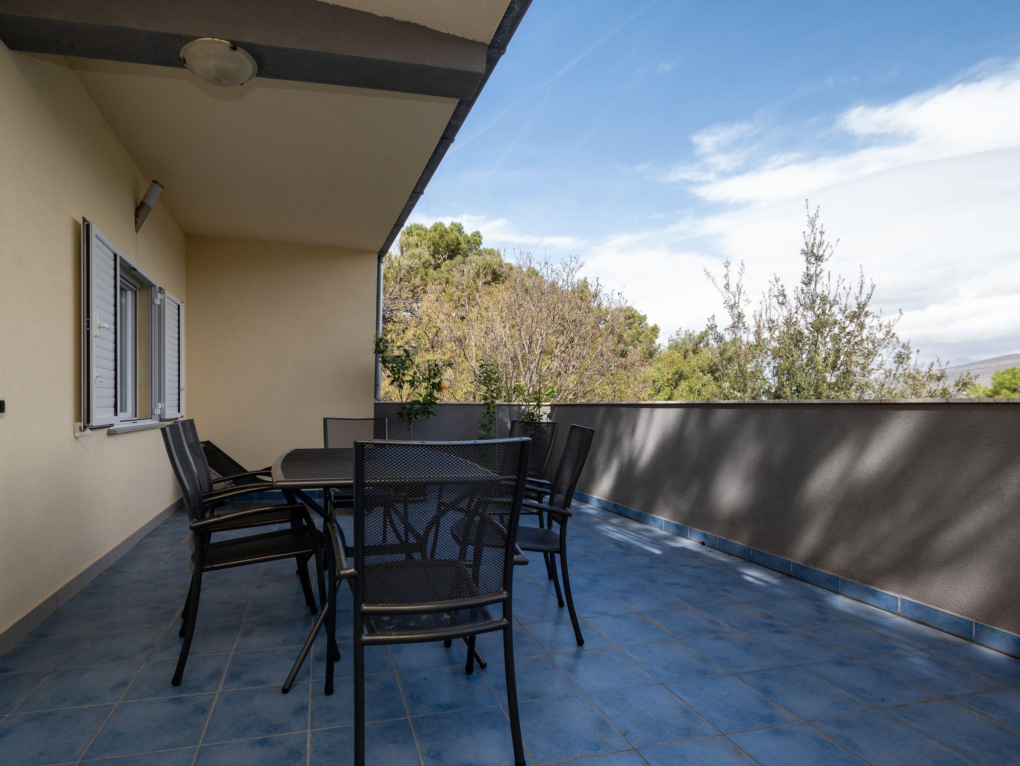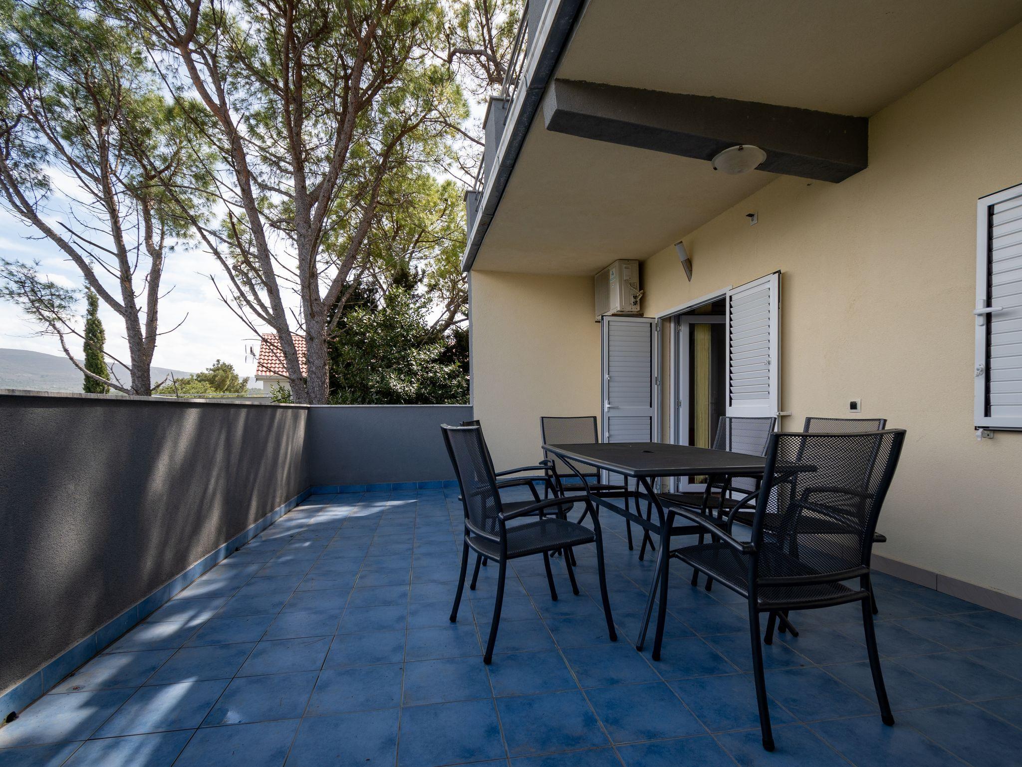 Ferienwohnung bietet Platz für 6 Gäste. Die Betten sind in Schlafzimmern, die es 2 gibt, und in Wohnzimmer, innerhalb einer Gesamtfläche von 46m2, angeordnet. Die Gäste haben eine eigene Terrasse zur Verfügung, auf der sie in warmen Sommernächten genießen können. Das Apartment bietet Meerblick. Für vollen Genuss und Entspannung gibt es einen privaten Grill für Gäste dieser Unterkunft. In der Unterkunftseinheit besteht die Möglichkeit des Mitbringens von Haustieren gegen Aufpreis. IM PREIS INBEGRIFFEN: Kurtaxe, Endreinigung, Klimatisierung, Parkplatz, Internet, Kinderbett, Bügeleisen, Bügelbrett, Föhn. UNVERBINDLICHE ZUSÄTZLICHE KOSTEN: Haustiere (5,00 € pro Nacht). Die Verfügbarkeit zusätzlicher Dienstleistungen in Ihrem reservierten Termin und die Preise derselben (falls nicht aufgeführt) müssen im Voraus überprüft werden. Zusätzliche Dienstleistungen die in der Zahlungsaufforderung nicht aufgeführt sind werden direkt beim Vermieter bezahlt, angenommen der Gast nutzt auch diese. Ermäßigung auf den Grundpreis: Gratistag 14=13 (bei einem Aufenthalt von 14 Tagen oder mehr erhalten Sie einen Gratistag für den Aufenthalt bis 31.12.26).