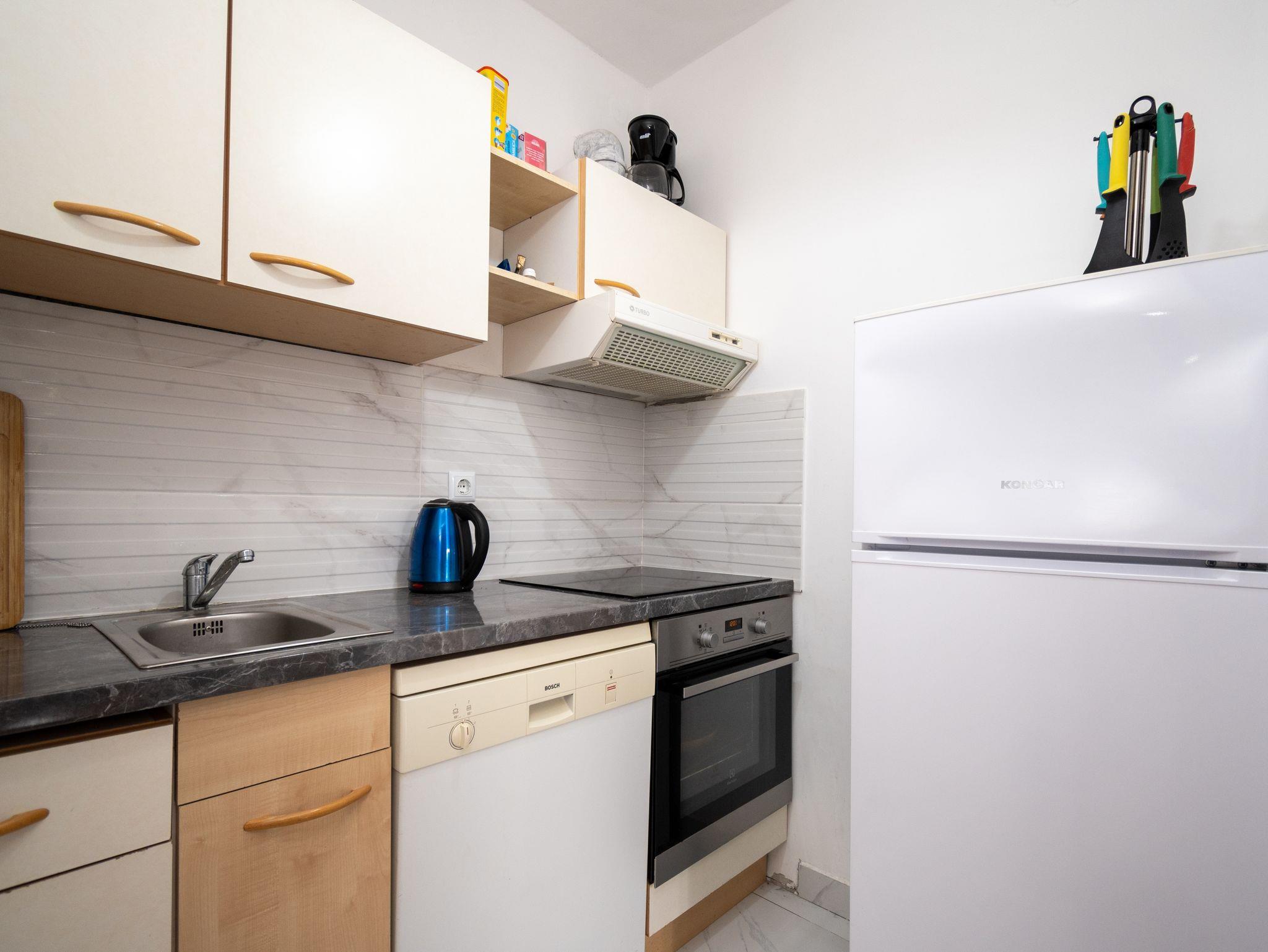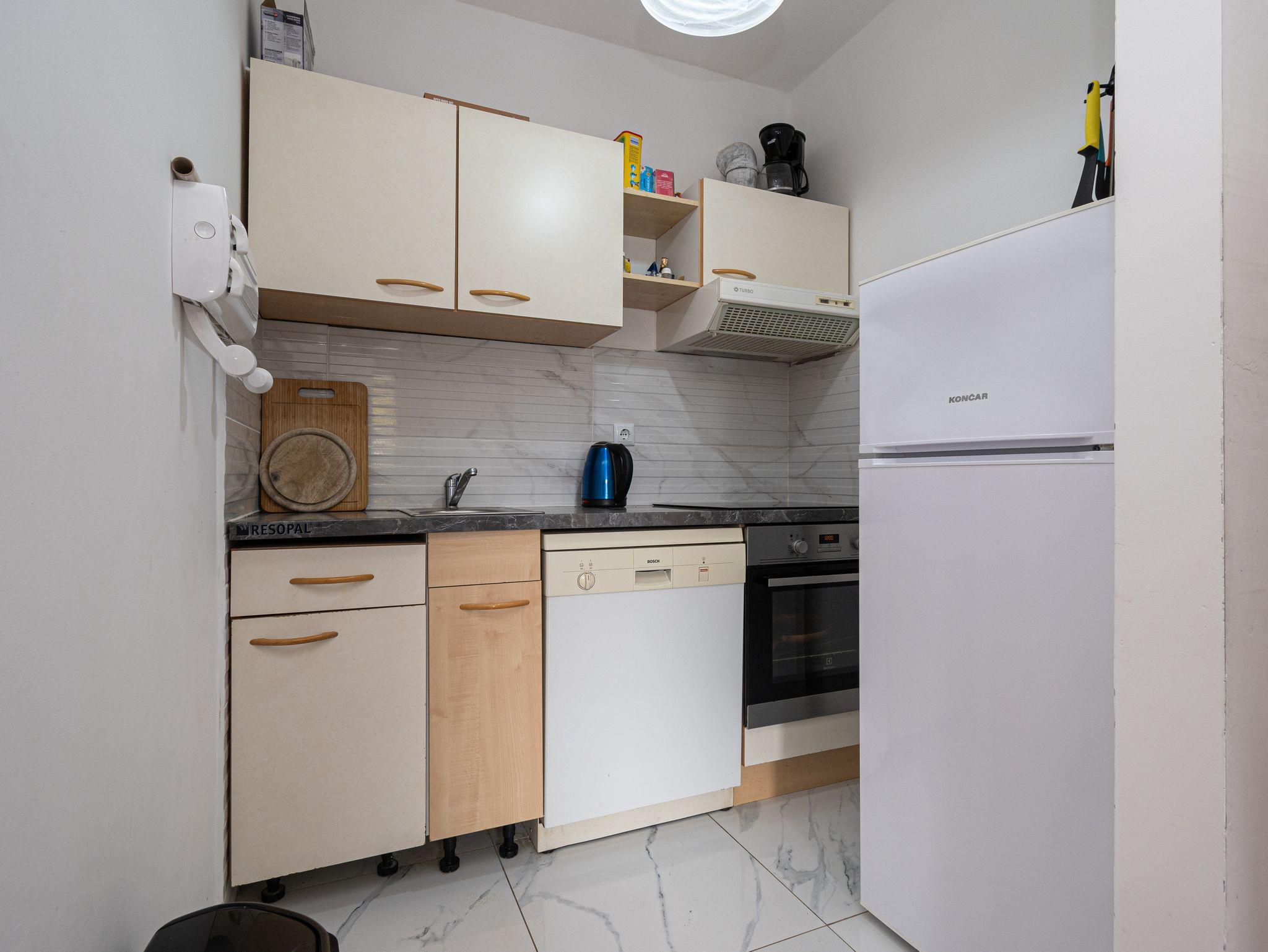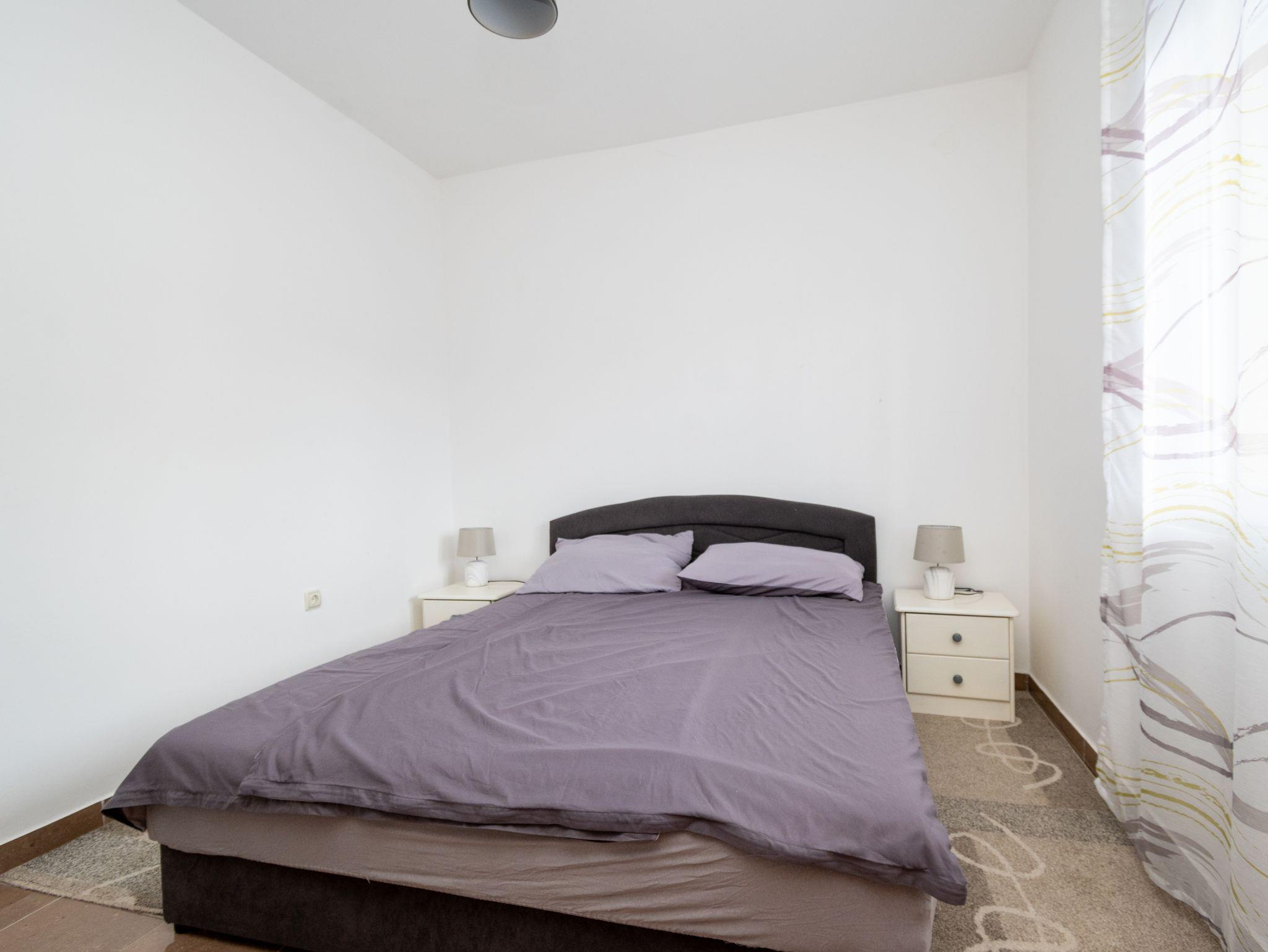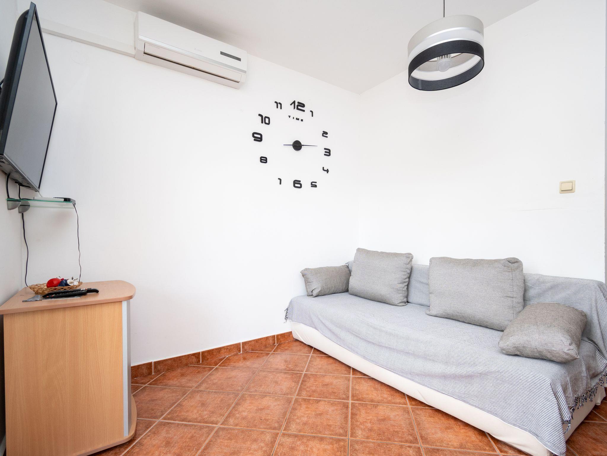 Ferienwohnung bietet Platz für 6 Gäste. Die Betten sind in Schlafzimmern, die es 2 gibt, und in Wohnzimmer, innerhalb einer Gesamtfläche von 46m2, angeordnet. Die Gäste haben eine eigene Terrasse zur Verfügung, auf der sie in warmen Sommernächten genießen können. Das Apartment bietet Meerblick. Für vollen Genuss und Entspannung gibt es einen privaten Grill für Gäste dieser Unterkunft. In der Unterkunftseinheit besteht die Möglichkeit des Mitbringens von Haustieren gegen Aufpreis. IM PREIS INBEGRIFFEN: Kurtaxe, Endreinigung, Klimatisierung, Parkplatz, Internet, Kinderbett, Bügeleisen, Bügelbrett, Föhn. UNVERBINDLICHE ZUSÄTZLICHE KOSTEN: Haustiere (5,00 € pro Nacht). Die Verfügbarkeit zusätzlicher Dienstleistungen in Ihrem reservierten Termin und die Preise derselben (falls nicht aufgeführt) müssen im Voraus überprüft werden. Zusätzliche Dienstleistungen die in der Zahlungsaufforderung nicht aufgeführt sind werden direkt beim Vermieter bezahlt, angenommen der Gast nutzt auch diese. Ermäßigung auf den Grundpreis: Gratistag 14=13 (bei einem Aufenthalt von 14 Tagen oder mehr erhalten Sie einen Gratistag für den Aufenthalt bis 31.12.26).