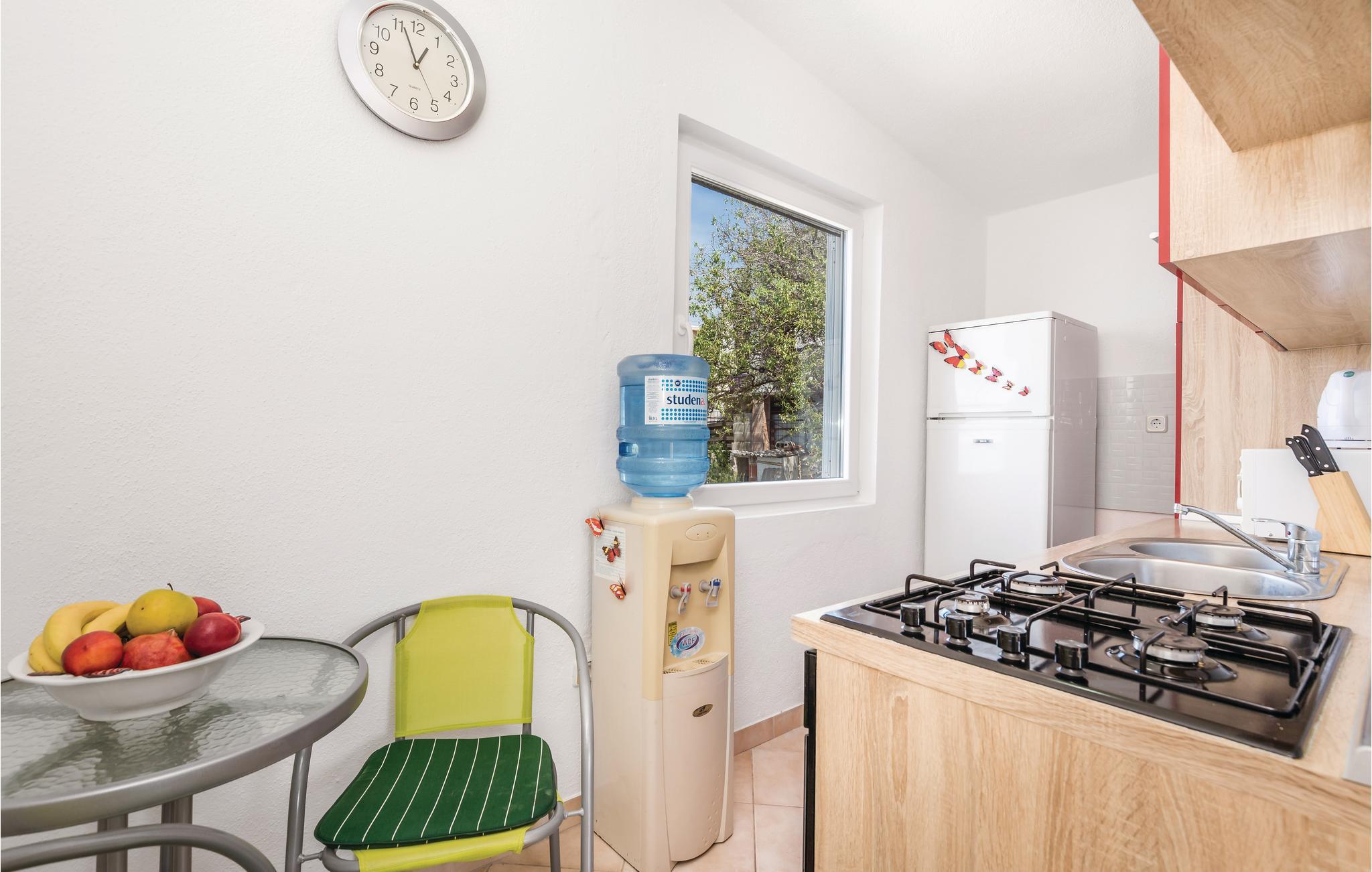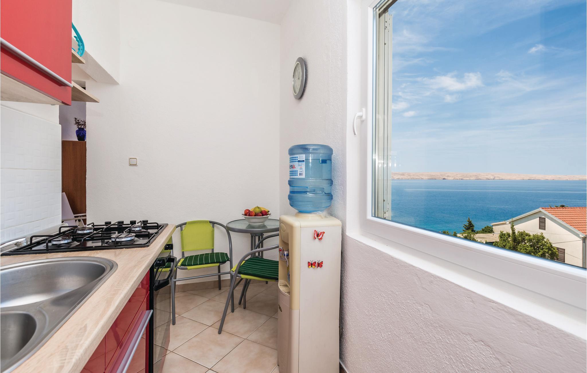 Denne funktionelt indrettede ferielejlighed er ideel til en rolig familieferie. Den ligger i den lille by Baric Draga nær vejen. Frau terrassen på 1. Sal har I en dejlig panoramaudsigt over havet og øen Pag. Vandforsyningen i lejligheden kommer fra en vandtank og i gården er der en fælles grill, hvor I kann tilberede jeres yndlingsretter. Nyd sommerens glæder ved stranden kun ca. 50 m fra huset. Besøg nationalparkerne i Paklenica, Velebit-bjergene og Rivieraen i Karlobad med mange historiske seværdigheder.