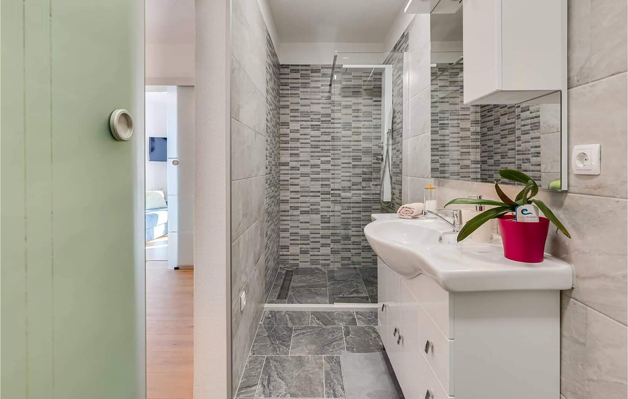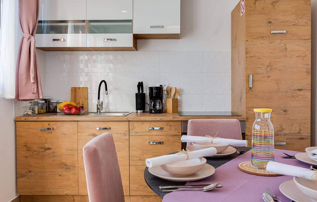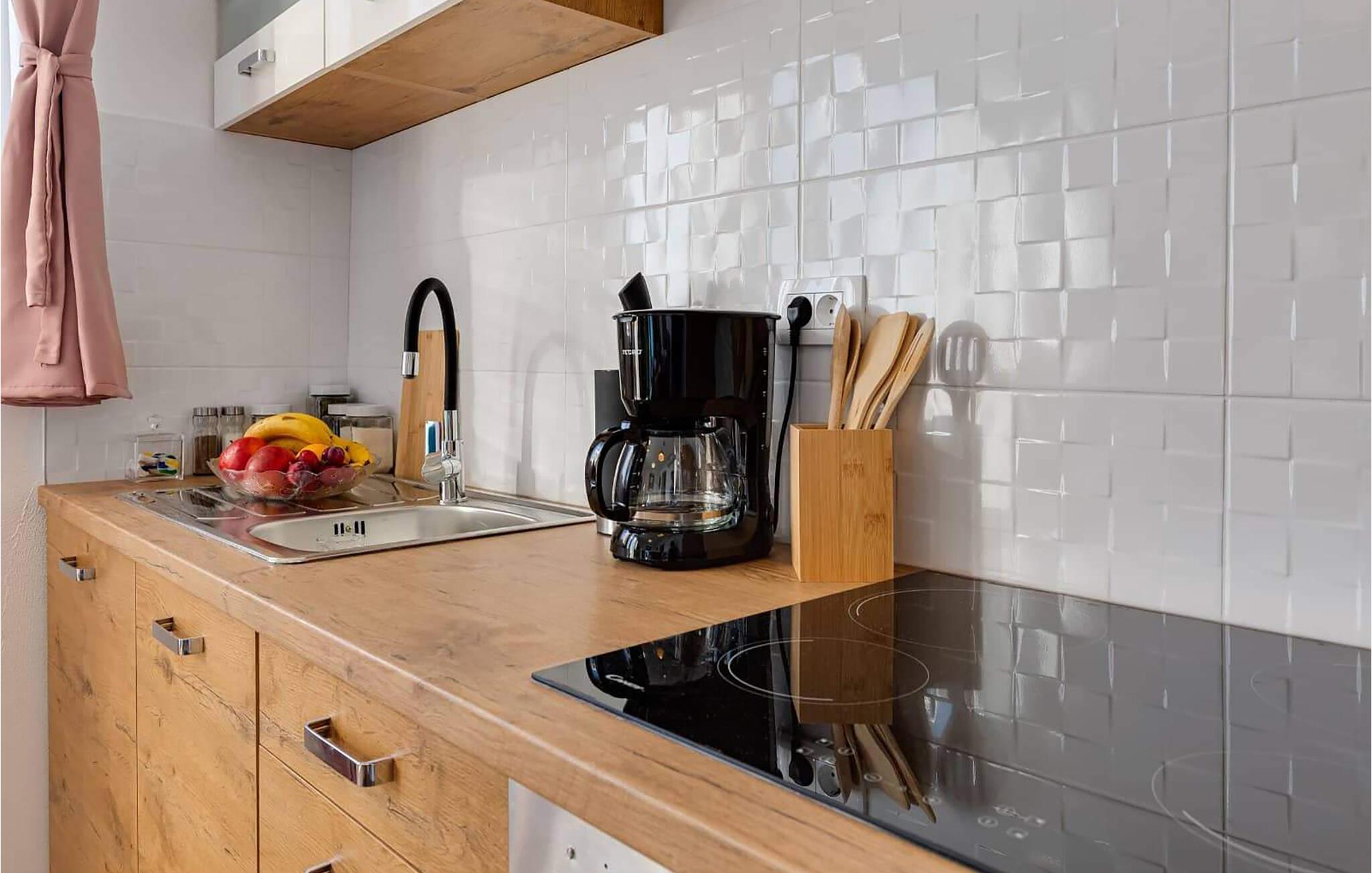 Kun en kort gåtur fra stranden inviterer denne velindrettede ferielejlighed jer til at tilbringe solrige dage ved Adriaterhavskysten. Gør nogle lækre ferieretter klar i det moderne køkken, sæt jer ved det indbydende spisebord, og slap af efter en lang dag på stranden i den komfortable sofa, hvor I kan streame en film eller læne jer tilbage med en god bog.