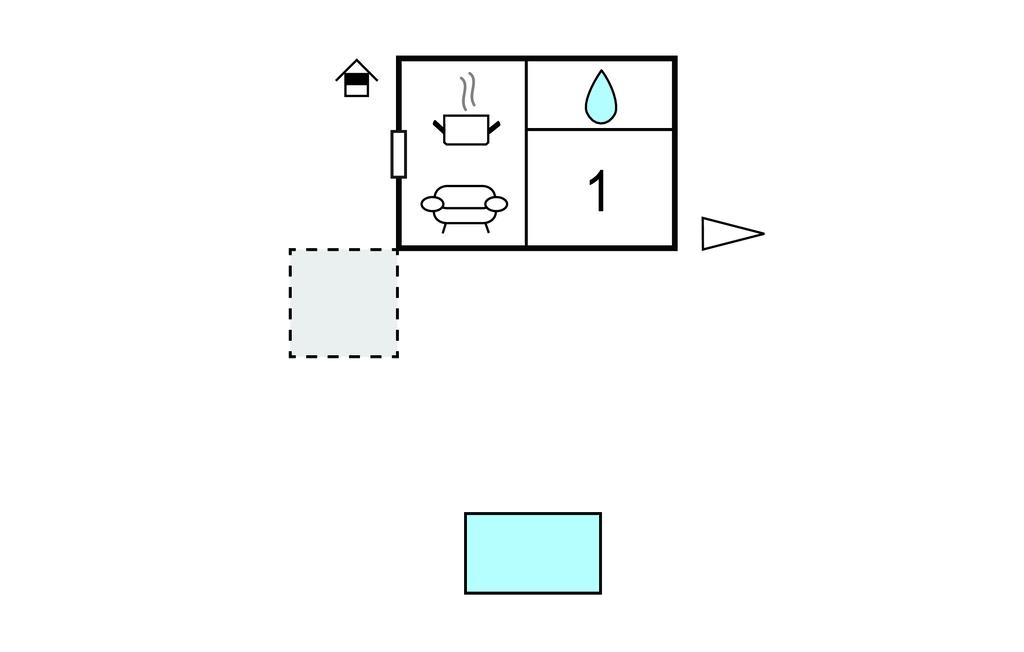 Opholdsstue/køkken 13m2 - 2 Sovepladser. (Sofa, madras eller lignende).