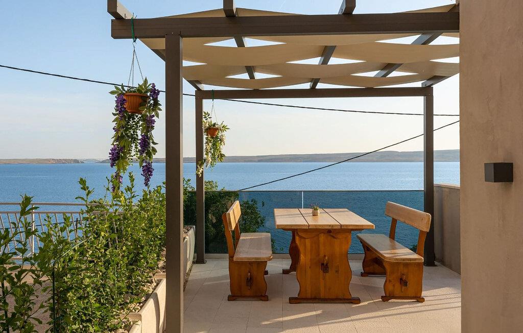 Jeres elegante skyggefulde terrasse byder på en smuk udsigt over havet og er perfekt til en skøn morgenmad i morgensolen og lange sommernætter med vin og levende lys. Nyd middelhavsklimaet her til fulde.