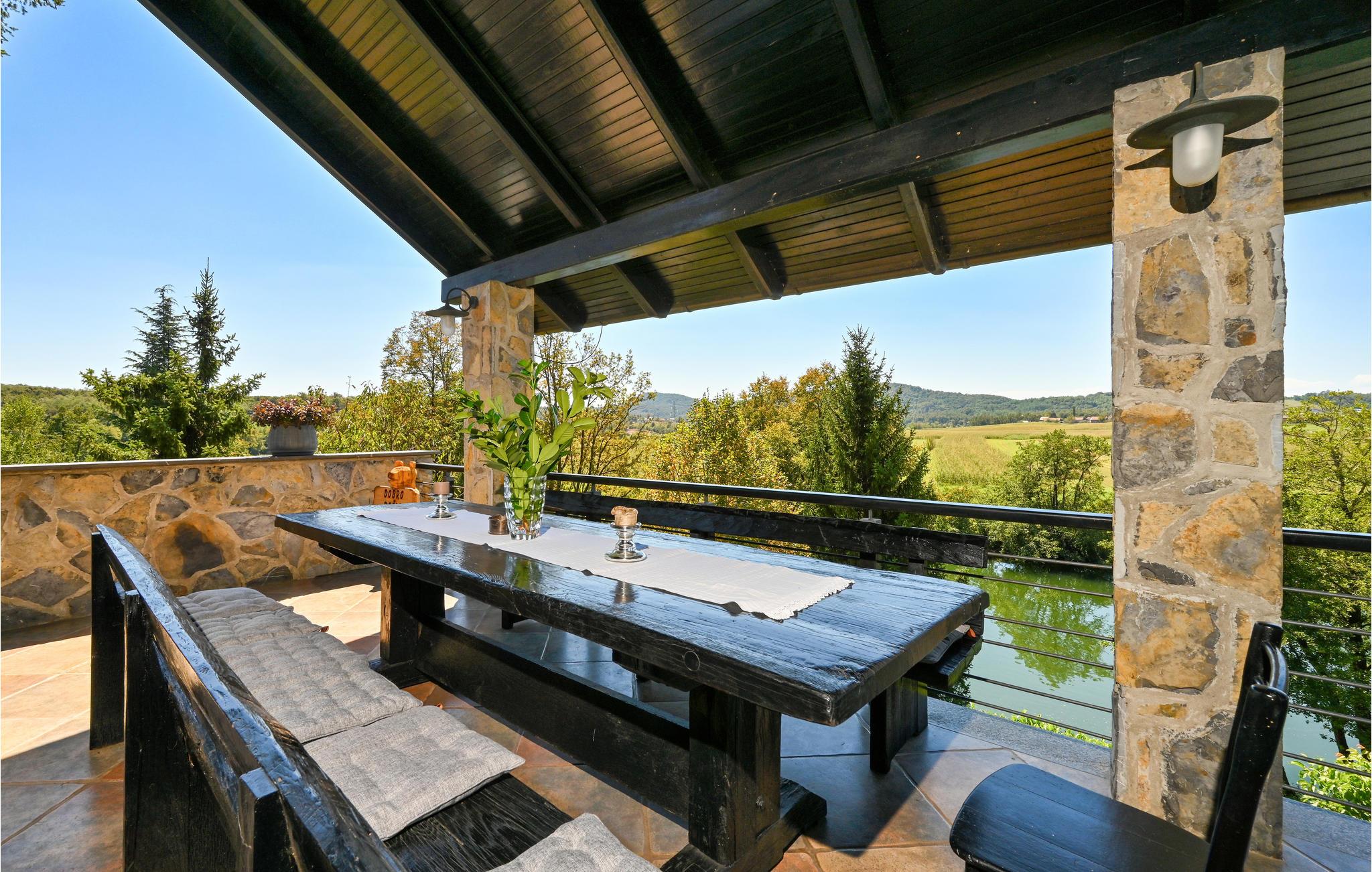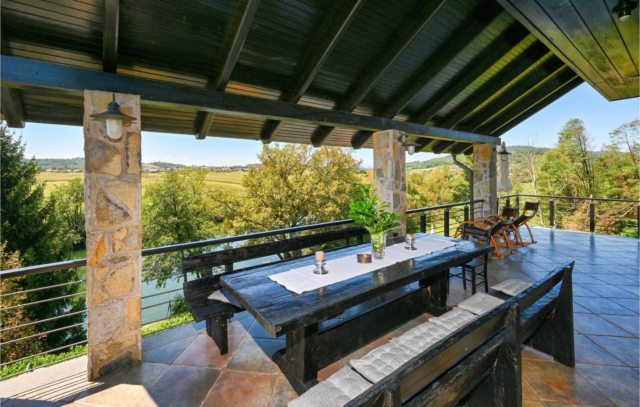 Velkommen til dette fremragende feriehus ved floden Karan syd for byen Karlovac. Huset er lyst og flot indrettet med mange detaljer og gør et varnt, behageligt indtryk. Efter en afslappet morgenmad på den lukkede terrasse, kan I slentre 20 meter ned til floden og sætte jer med en god bog og lytte til stilheden. Skulle I få lyst til selv at fange aftensmaden, kan I også kaste en line ud - nyd roen og udsigten, mens I venter på bid.