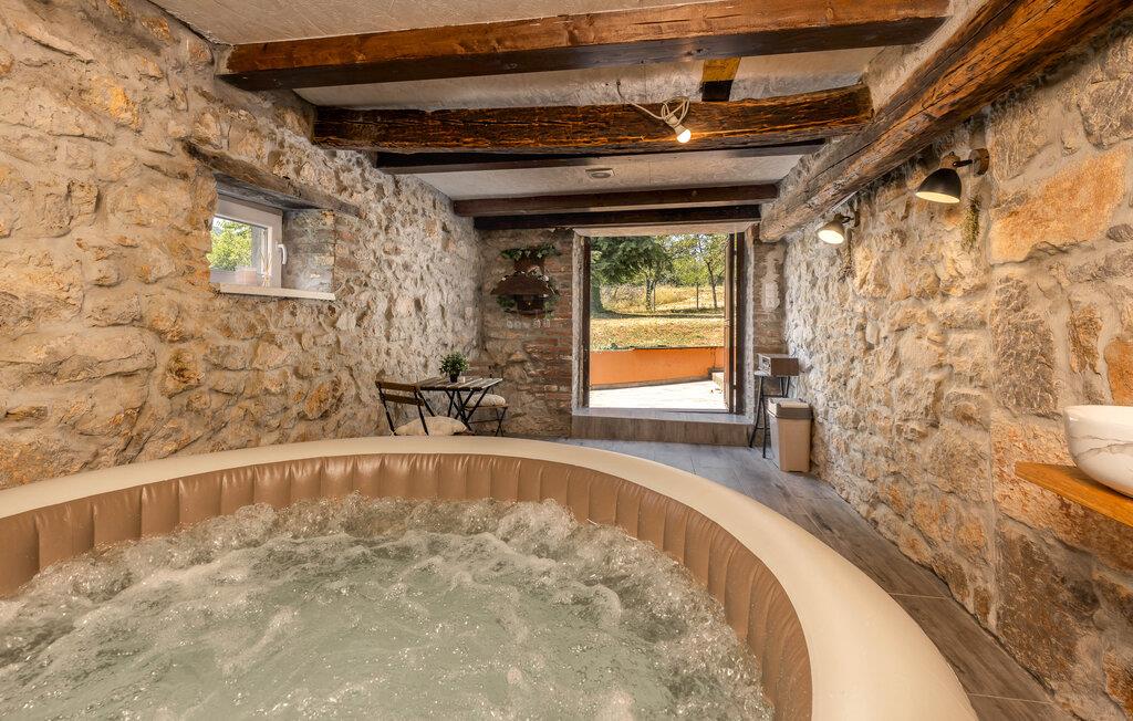 Nyd jeres ferie i dette idyllisk beliggende feriehus med spabad og en stor have. En rustik stemning og modernitet kombineres på en behagelig afslappende måde i dette feriehus. Natursten, træbjælker og diskrete farver skaber en atmosfære, hvor I kan slappe af og lade op. Fordyb jer i en god bog i den behagelige sofa, lyt til jeres yndlingspodcast, eller tilbered friske måltider i det moderne køkken. Start dagen på terrassen med en let morgenmad og en dejlig kop kaffe. Slap af i skyggen af træerne i den store have eller nyd et solbad. For at forfriske jer kan I blot hoppe i spabadet, som er placeret i et komfortabelt møbleret wellnessrum mellem vægge af natursten. Det grønne flodlandskab omkring Karlovac og Ozalj inviterer jer til at opdage naturen mellem bakker og vandløb, mens I ror i kano eller padler. Det middelalderlige Ozalj Slot fortæller historien om regionen og tilbyder en storslået udsigt over Kupa-dalen. Nyd autentisk kroatisk mad og regionale specialiteter i traditionelle taverner. Tag en dagstur til stranden og oplev Adriaterhavet med dets smukke bugter og krystalklare vand.