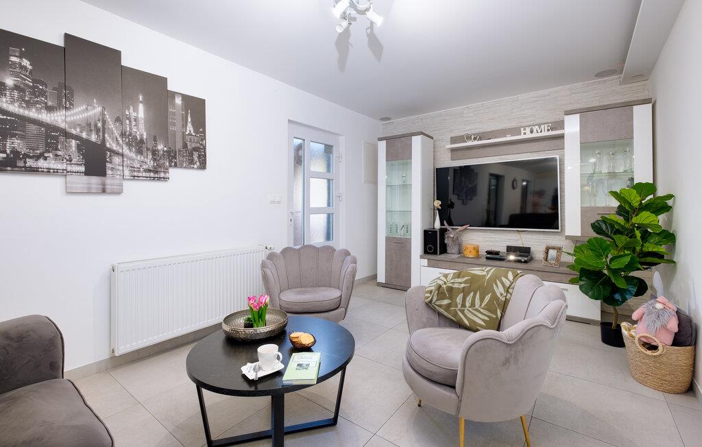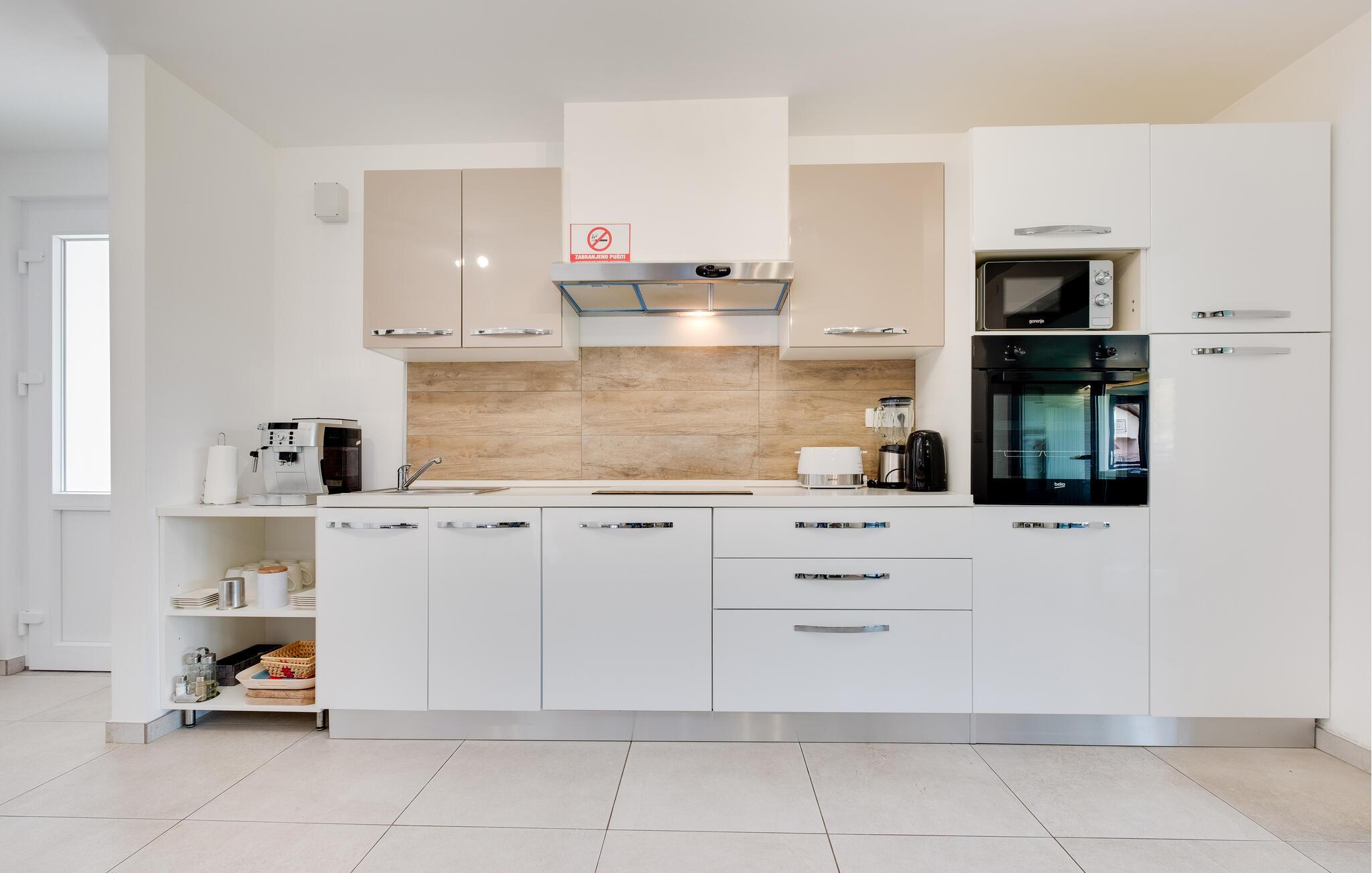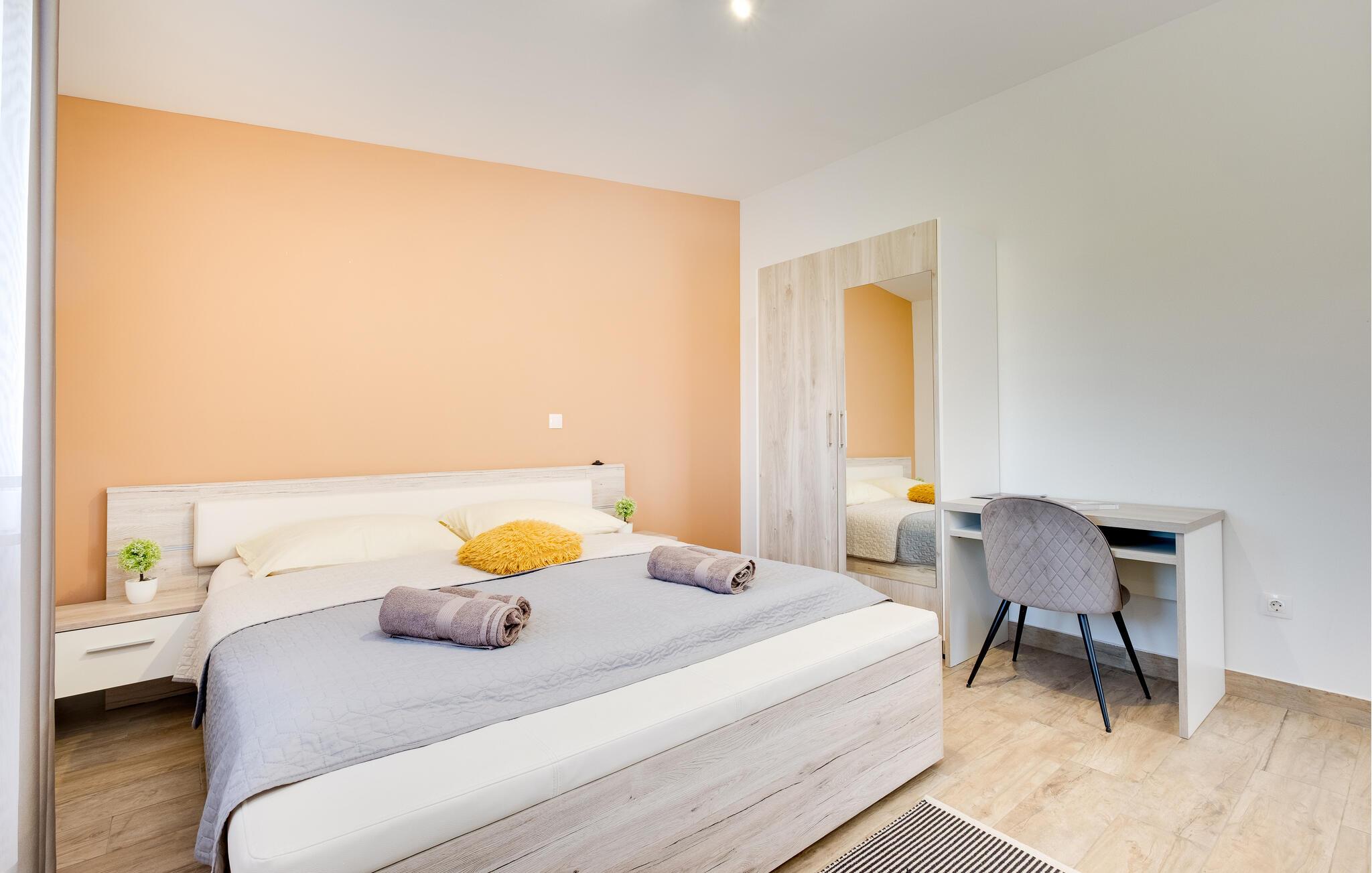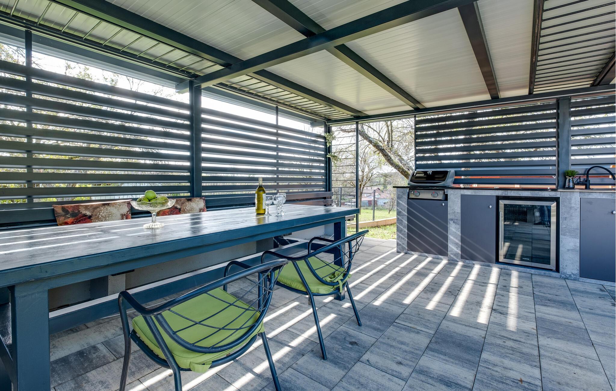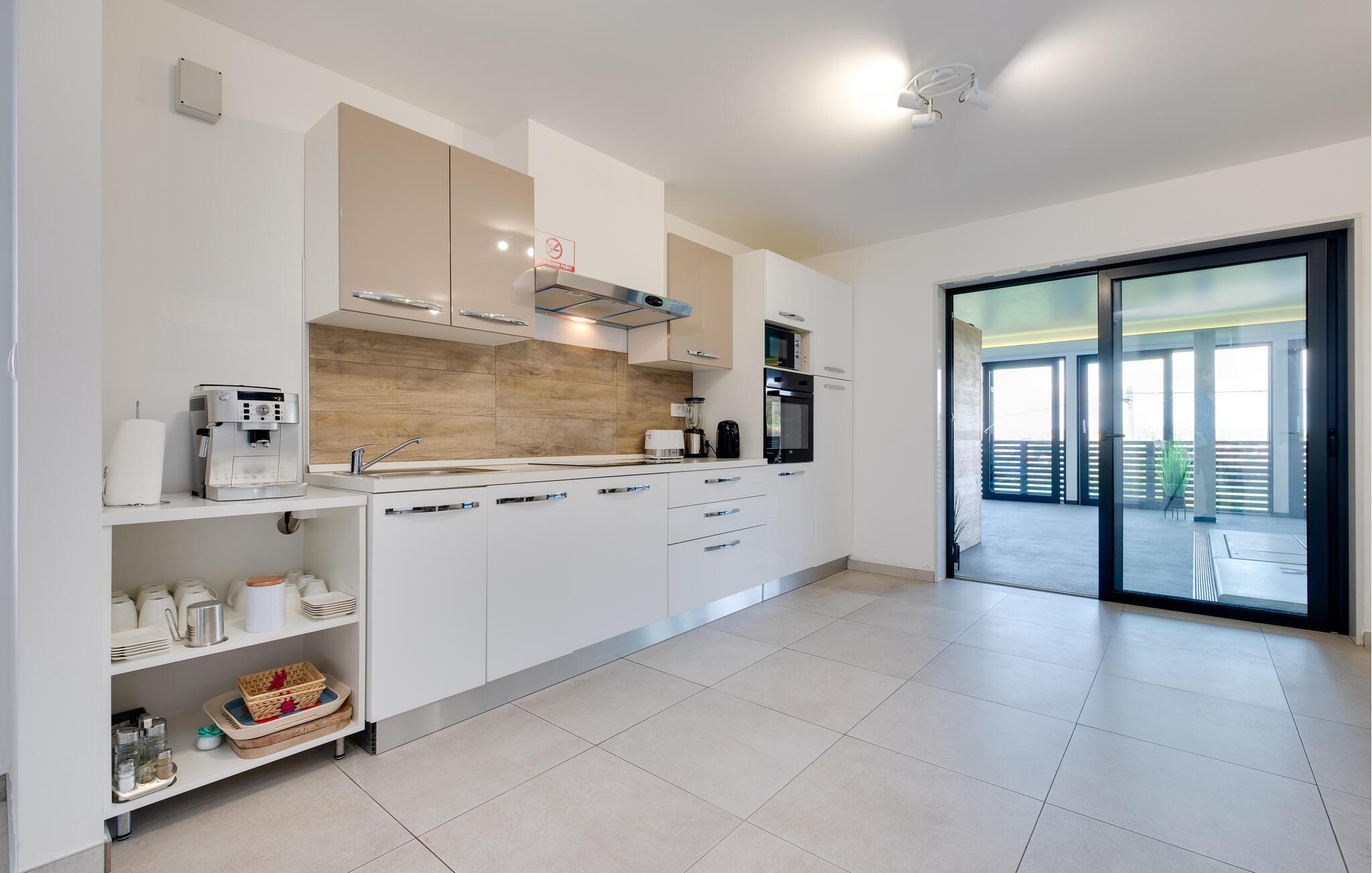 Dette rummelige, moderne feriehus i Tusilovic tilbyder alt, hvad du behøver for en afslappende ferie. De lyse og komfortabelt indrettede rum skaber en indbydende atmosfære, hvor du straks vil føle dig hjemme. Indendørs finder du en swimmingpool og en sauna – ideelle rammer for afslappende stunder. I sommerens udekøkken kan du fornøje dig med et spil bordfodbold, og den store terrasse inviterer dig til at opleve udsigten over de maleriske omgivelser.