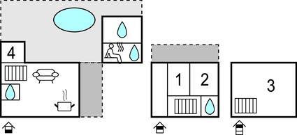 Badeværelse 3m2 (nr. 1) - WC. Varmt og koldt vand. Bruser