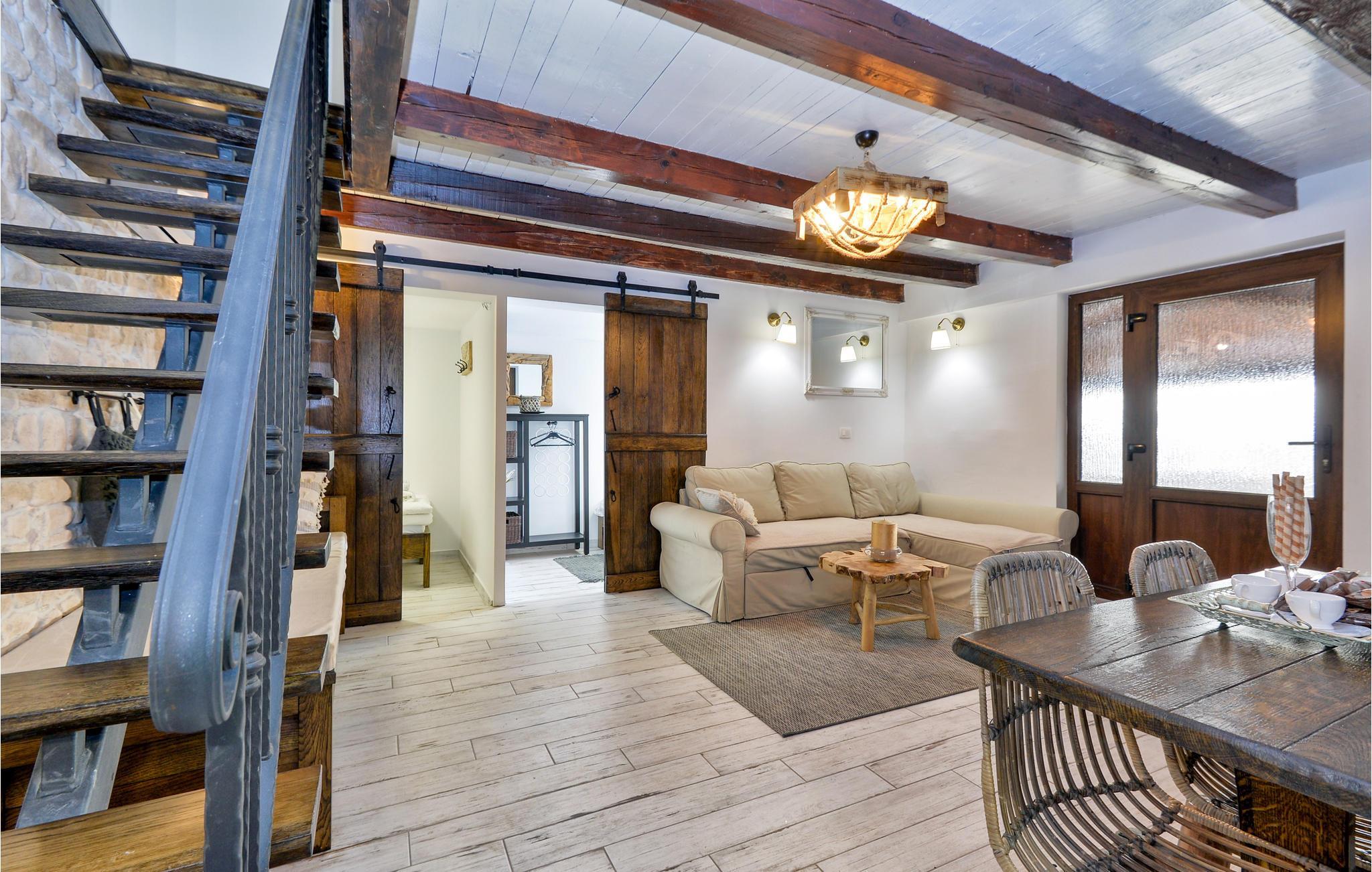 Husets indre er præget af en smuk kombination af sten- og træelementer og dejlige detaljer. Huset er udstyret med alt hvad I behøver for en ubekymret ferie.