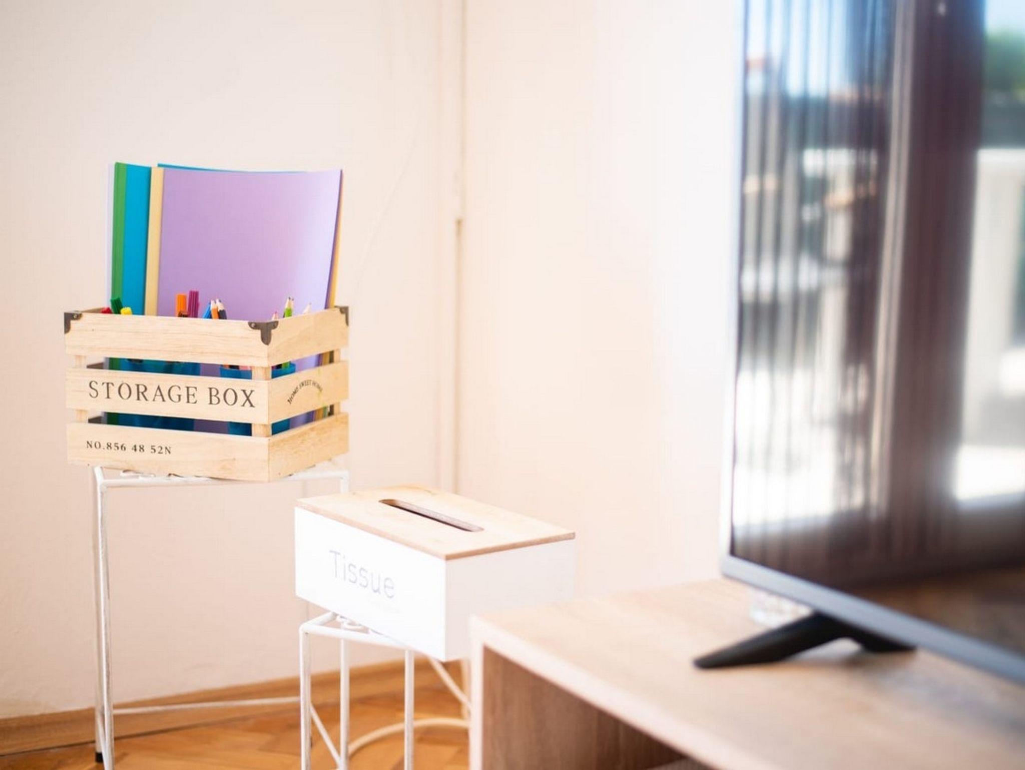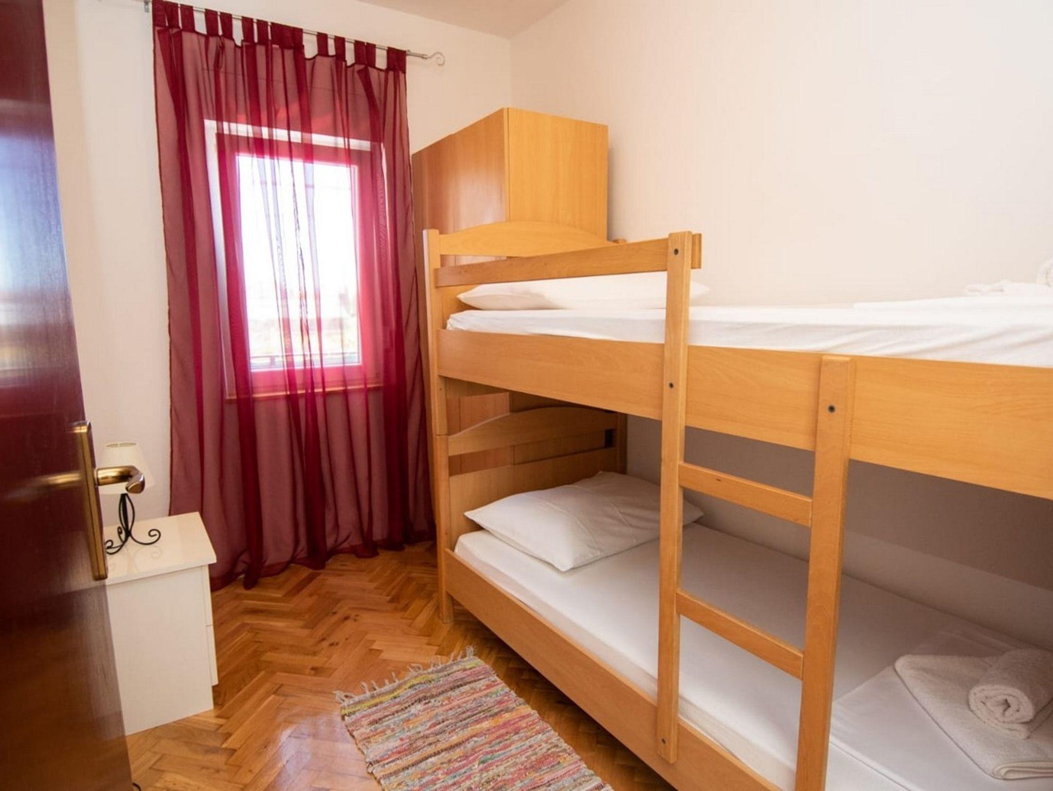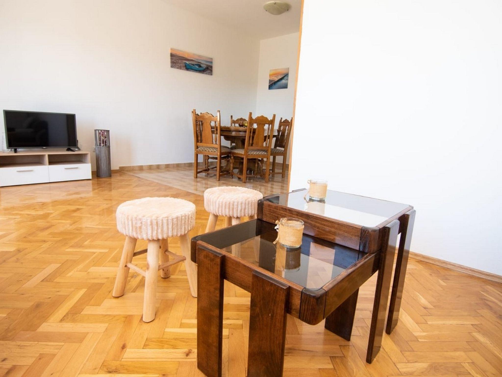 Ferienwohnung bietet Platz für 5 Gäste. Die Betten sind in Schlafzimmern, die es 2 gibt, und in Wohnzimmer, innerhalb einer Gesamtfläche von 60m2, angeordnet. Die Gäste haben einen eigenen Balkon zur Verfügung, auf der sie in warmen Sommernächten genießen können. Es ist erlaubt, Speisen auf dem Gemeinschafts-Grill vorzubereiten. IM PREIS INBEGRIFFEN: Kurtaxe, Endreinigung, Klimatisierung, Parkplatz, Internet, Kinderbett, Bügeleisen, Bügelbrett, Föhn. VERBINDLICHE ZUSÄTZLICHE KOSTEN: Aufzahlung für Kurzaufenthalte (prozentualer Zuschlag pro Nächtigungsanzahl: 30% - 1, 20% - 2, 10% - 3). Die Verfügbarkeit zusätzlicher Dienstleistungen in Ihrem reservierten Termin und die Preise derselben (falls nicht aufgeführt) müssen im Voraus überprüft werden. Zusätzliche Dienstleistungen die in der Zahlungsaufforderung nicht aufgeführt sind werden direkt beim Vermieter bezahlt, angenommen der Gast nutzt auch diese.