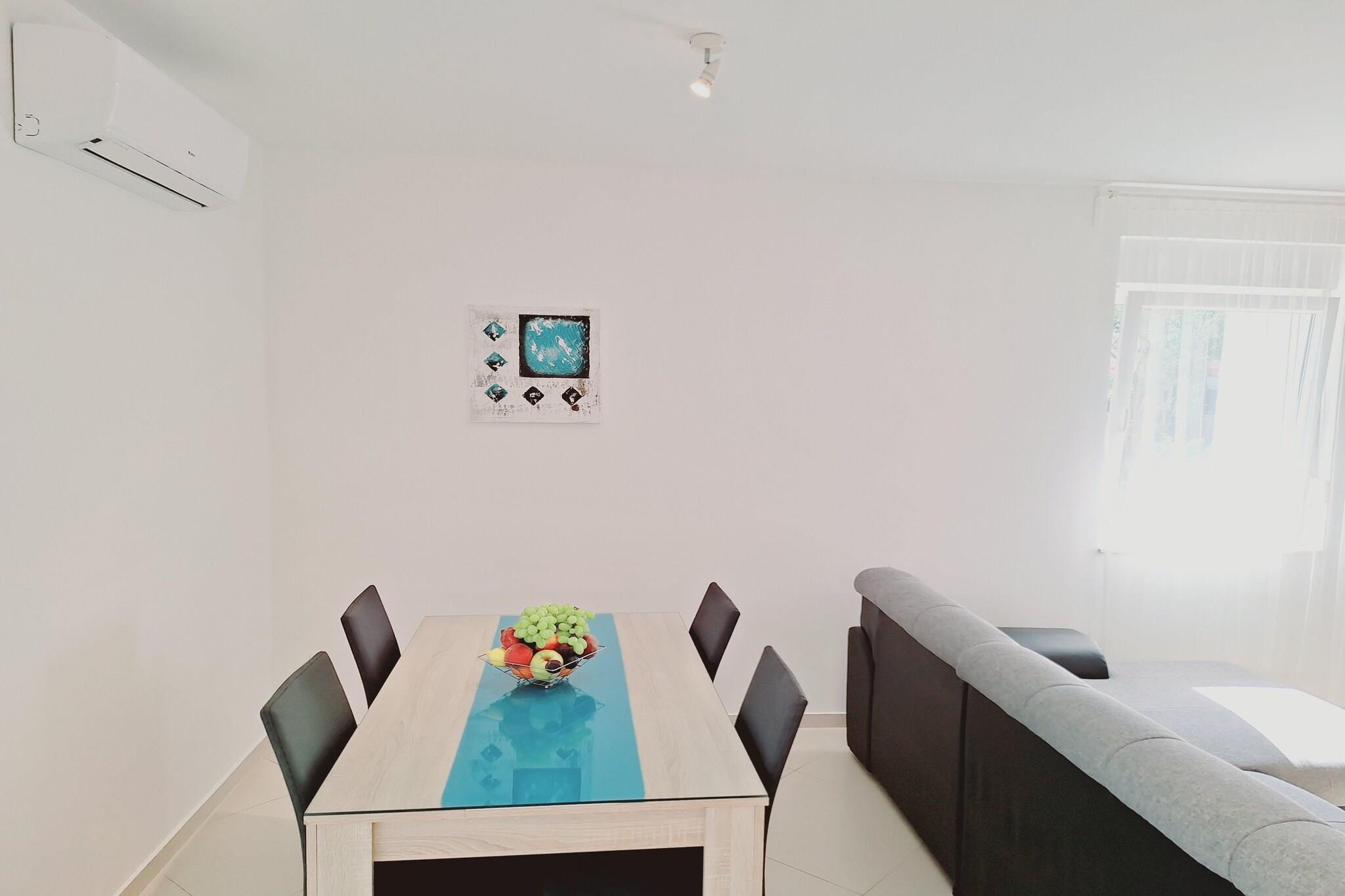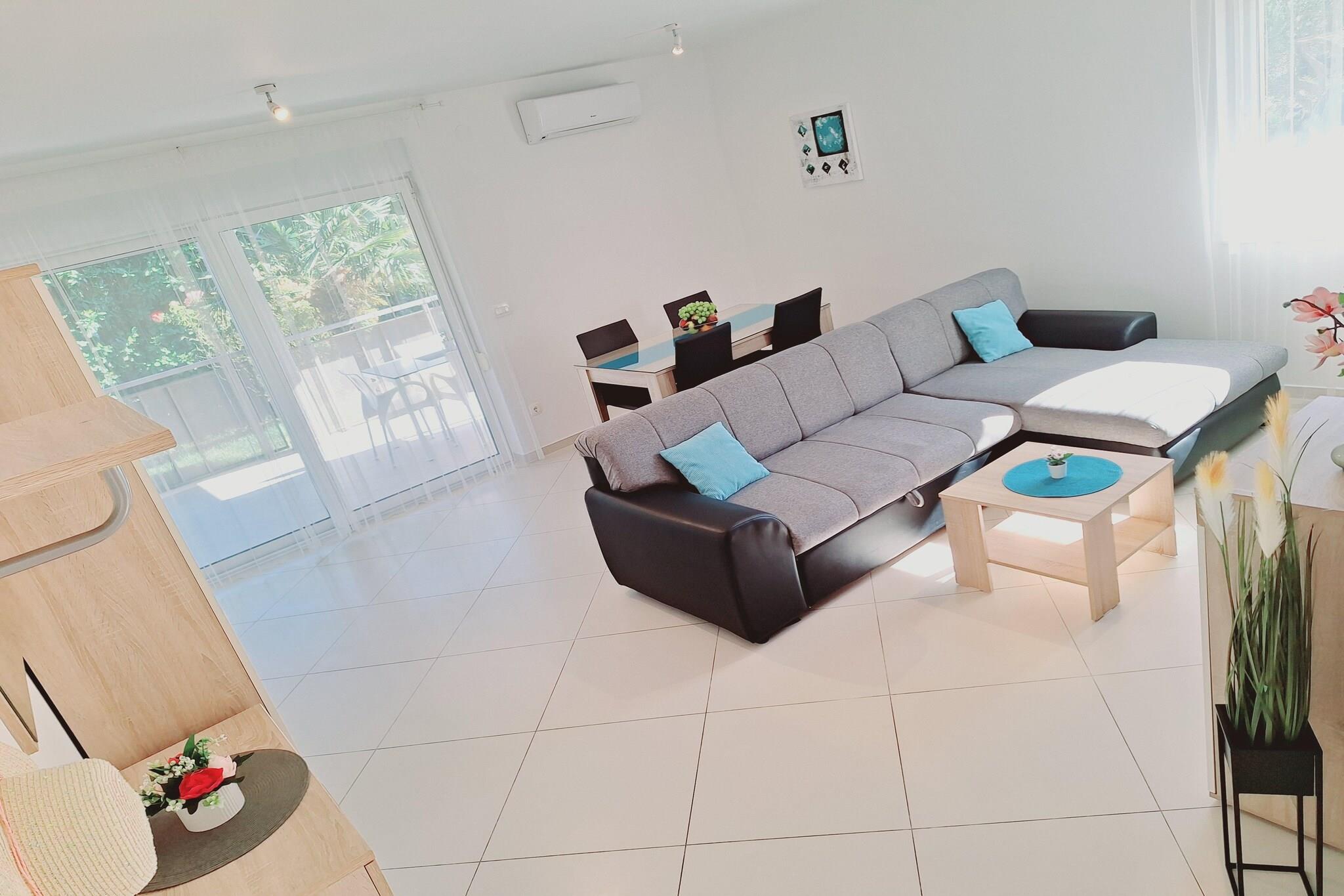 Enelani 1 lejlighed er beliggende i stueetagen af familiens hus, orienteret sydvest. Det har et soveværelse med stor dobbeltseng, komfortabel stue med stor sammenfoldet sovesofa, fuldt udstyret køkken med opvaskemaskine, komplet badeværelse med bruser og vaskemaskine, en stor overdækket terrasse foran, aircondition, LCD-tv og parkeringsplads. Enelani 1 lejlighed ligger i Kastel Stafilic, kun 200 meter fra den nærmeste strand. Designet er moderne og rummet udstråler et behageligt interiør og eksteriør. Der er en stor indhegnet have ca. 3.500 kvadratmeter med grill og udendørs spiseplads, hvor man kan nyde et behageligt ophold udenfor. Lejligheden er omgivet af mange middelhavsplanter, træer og blomster. Nyt projekt, som vi arbejder på og vil være færdigt indtil juni 2025. bliver udendørs fitnessudstyr til træning, bordtennis, fodboldbord og basketballkurv. Indkvartering, der giver dig privatliv og masser af fantastiske ting at se og aktiviteter at lave, vil helt sikkert gøre dit ophold til en oplevelse, som du vil huske for evigt! Denne stilling er velegnet til ferie på grund af tilstrækkelig afstand fra byens stress og jag, og er også passende på grund af dens nærhed til alle kulturelle seværdigheder og attraktioner, der vil gøre din ferie uforglemmelig. Vi er her for at give dig en behagelig og dejlig ferie, og vi står til rådighed for alle dine behov og ethvert spørgsmål og forslag.