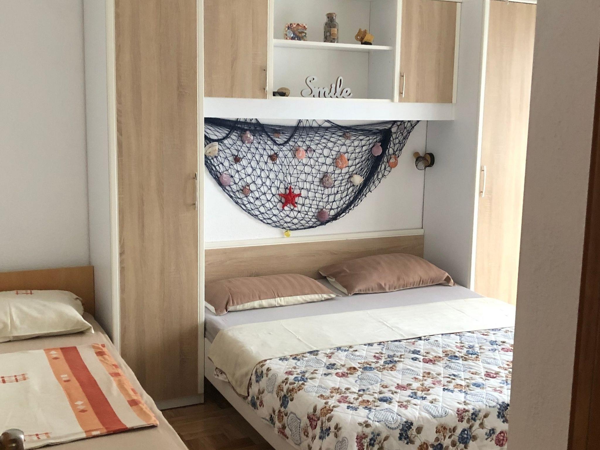 Ferienwohnung bietet Platz für 6 Gäste. Die Betten sind in Schlafzimmern, die es 2 gibt, innerhalb einer Gesamtfläche von 54m2, angeordnet. Die Gäste haben eine eigene Terrasse zur Verfügung, auf der sie in warmen Sommernächten genießen können. Es ist erlaubt, Speisen auf dem Gemeinschafts-Grill vorzubereiten. IM PREIS INBEGRIFFEN: Kurtaxe, Endreinigung, Klimatisierung, Zentralheizung, Parkplatz, Internet, Bügeleisen, Bügelbrett, Föhn. VERBINDLICHE ZUSÄTZLICHE KOSTEN: Aufzahlung für Kurzaufenthalte (prozentualer Zuschlag pro Nächtigungsanzahl: 30% - 1, 20% - 2, 10% - 3). Die Verfügbarkeit zusätzlicher Dienstleistungen in Ihrem reservierten Termin und die Preise derselben (falls nicht aufgeführt) müssen im Voraus überprüft werden. Zusätzliche Dienstleistungen die in der Zahlungsaufforderung nicht aufgeführt sind werden direkt beim Vermieter bezahlt, angenommen der Gast nutzt auch diese. Ermäßigung auf den Grundpreis: Gratistag 14=13 (bei einem Aufenthalt von 14 Tagen oder mehr erhalten Sie einen Gratistag für den Aufenthalt bis 31.12.26).