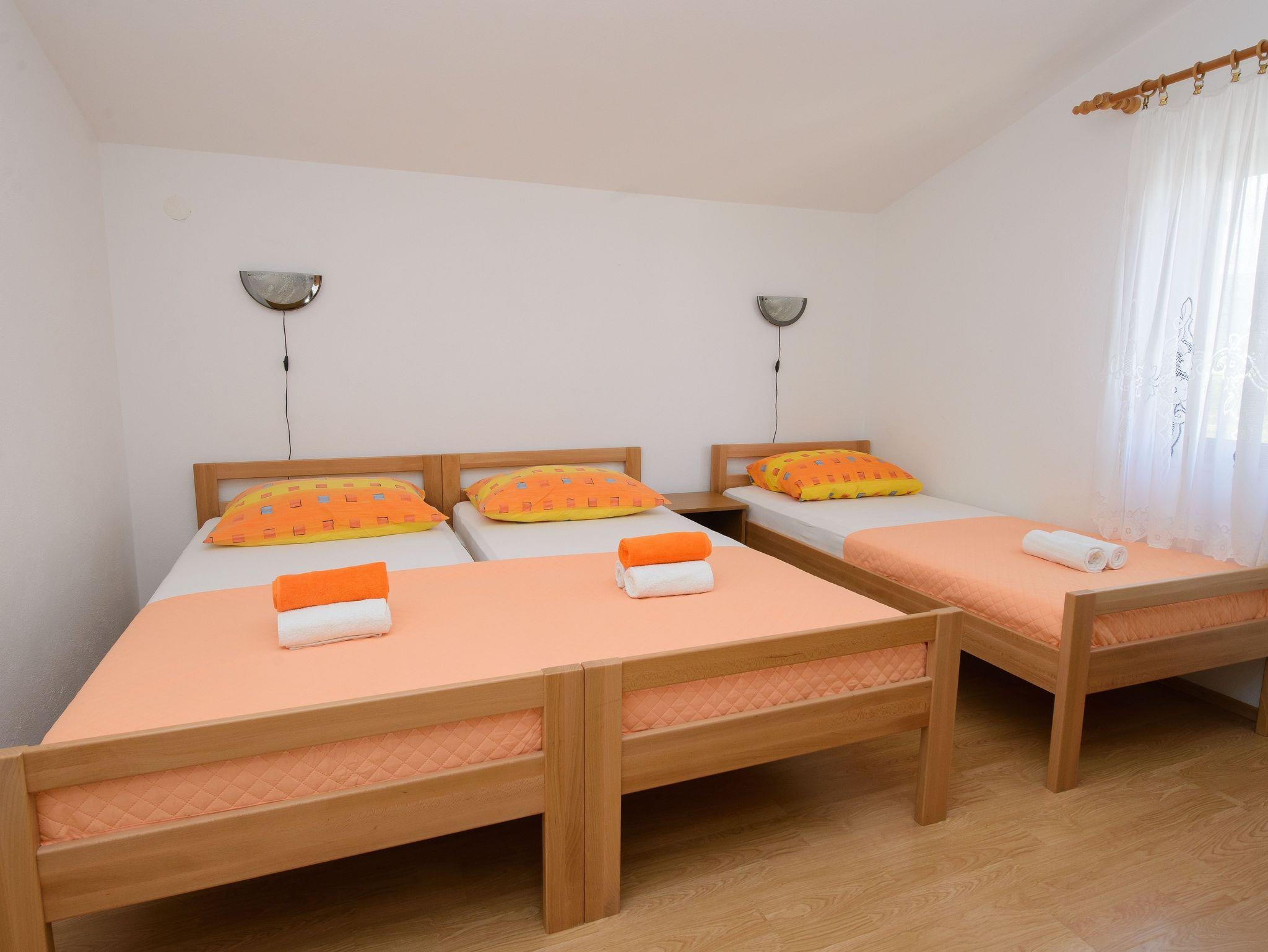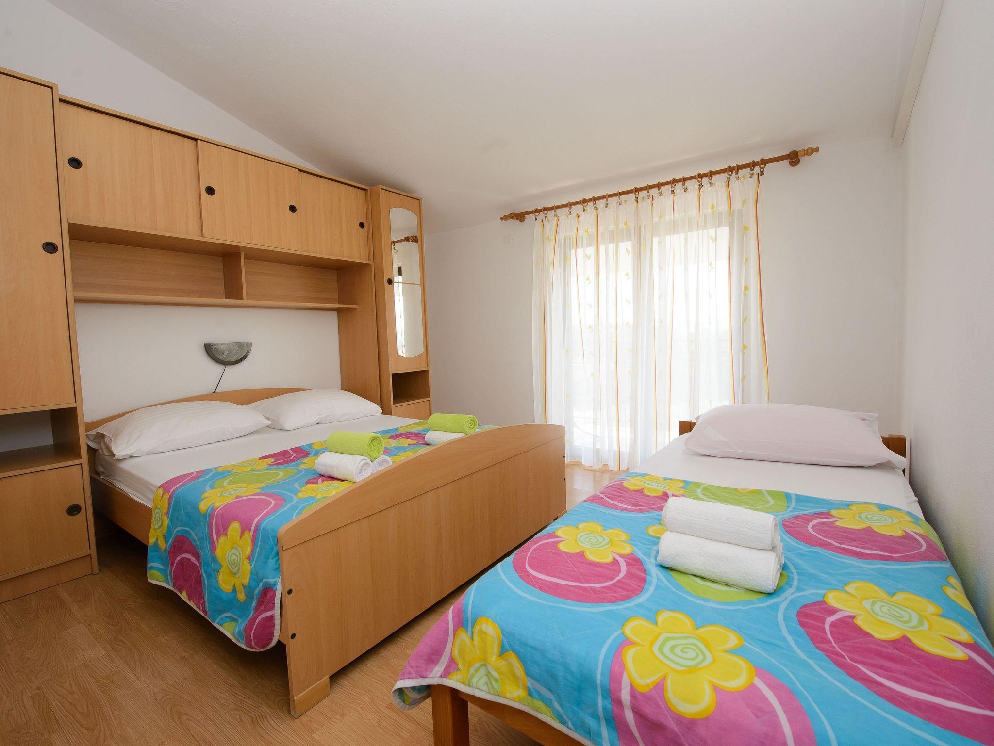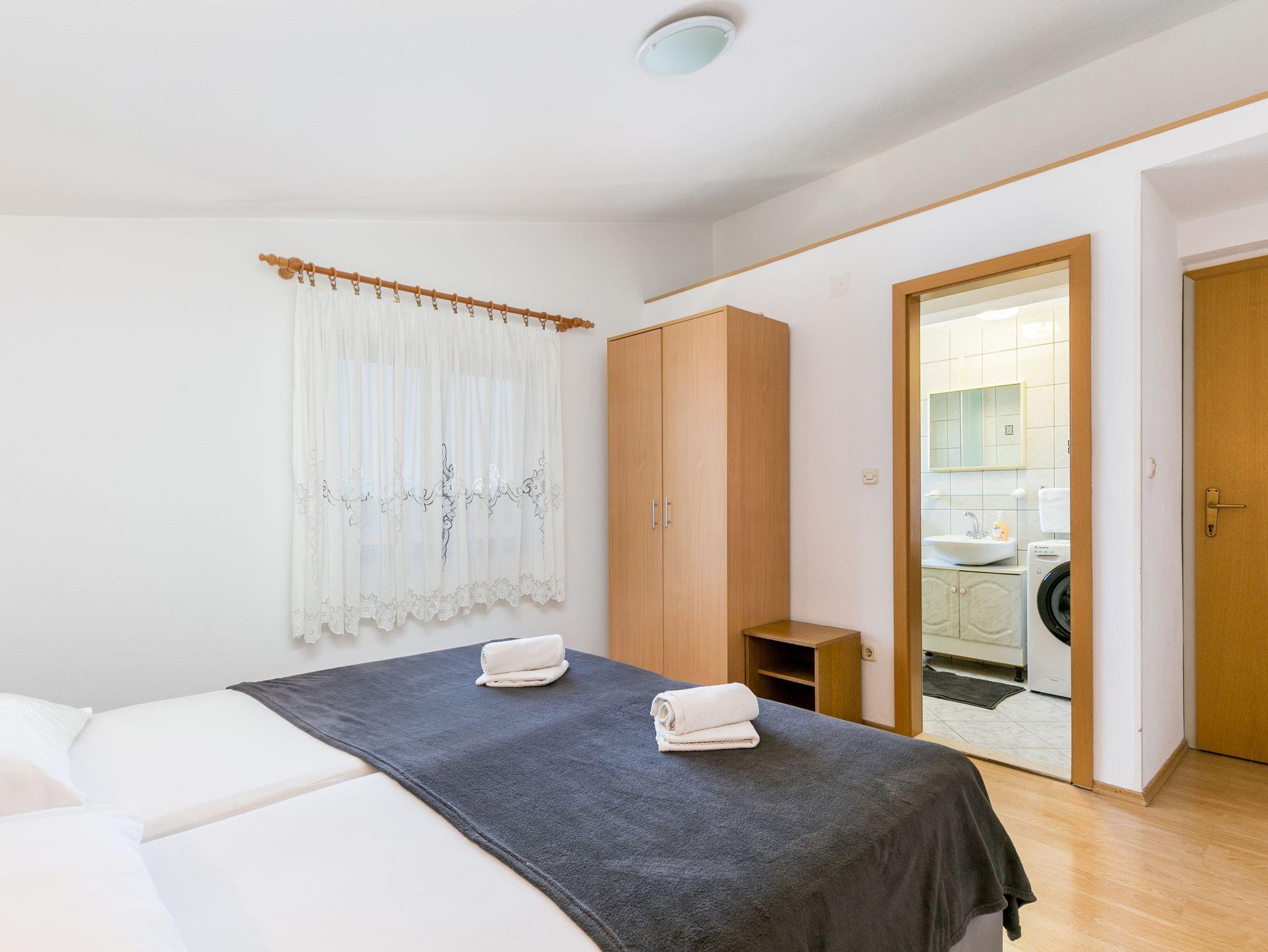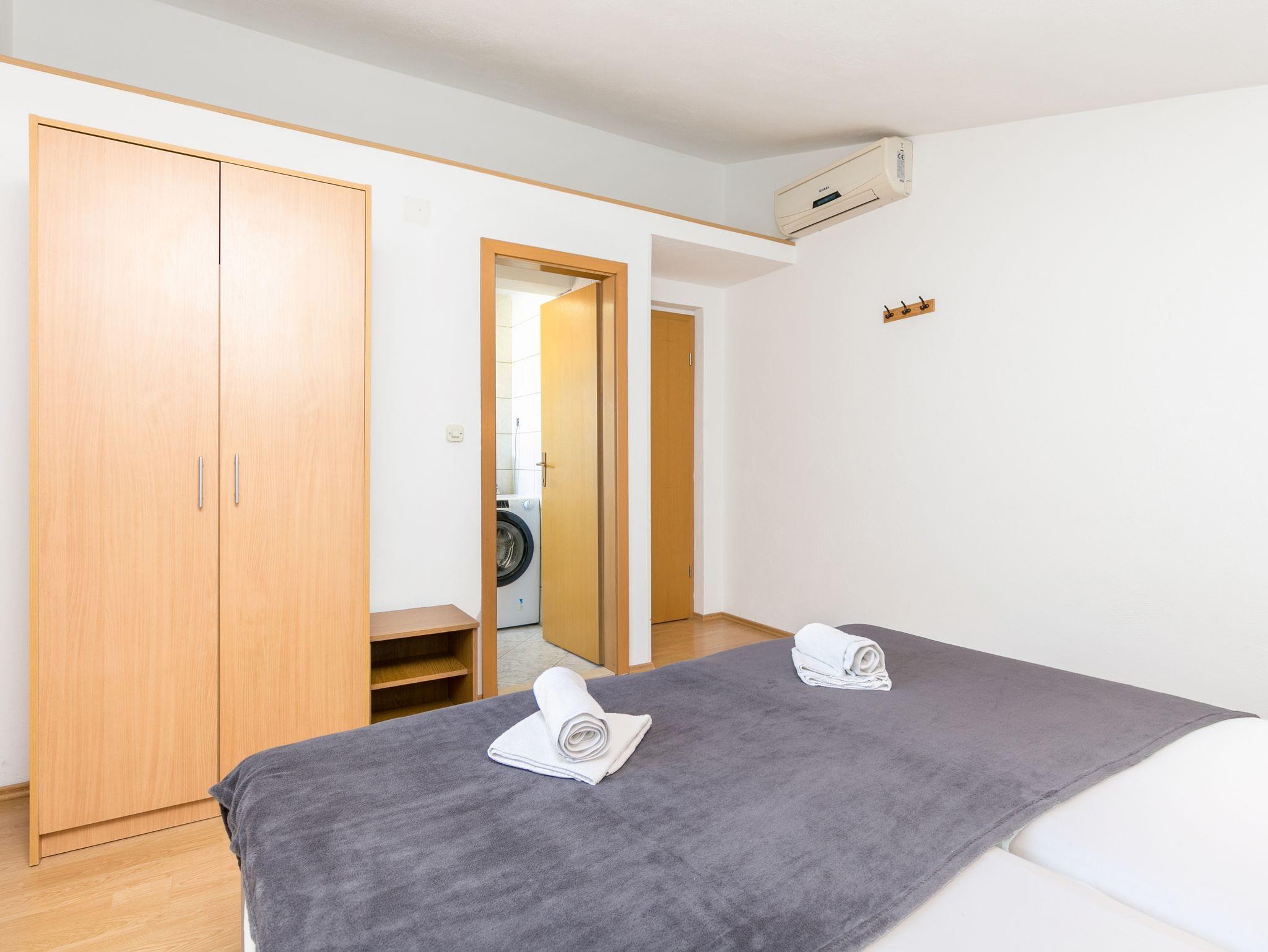 Ferienwohnung bietet Platz für 8 Gäste. Die Betten sind in Schlafzimmern, die es 4 gibt, innerhalb einer Gesamtfläche von 107m2, angeordnet. Die Gäste haben eine eigene Terrasse zur Verfügung, auf der sie in warmen Sommernächten genießen können. Das Apartment bietet Meerblick. Es ist erlaubt, Speisen auf dem Gemeinschafts-Grill vorzubereiten. IM PREIS INBEGRIFFEN: Kurtaxe, Endreinigung, Klimatisierung, Parkplatz, Internet, Kinderbett, Föhn. VERBINDLICHE ZUSÄTZLICHE KOSTEN: Aufzahlung für Kurzaufenthalte (prozentualer Zuschlag pro Nächtigungsanzahl: 30% - 1, 20% - 2, 10% - 3). Die Verfügbarkeit zusätzlicher Dienstleistungen in Ihrem reservierten Termin und die Preise derselben (falls nicht aufgeführt) müssen im Voraus überprüft werden. Zusätzliche Dienstleistungen die in der Zahlungsaufforderung nicht aufgeführt sind werden direkt beim Vermieter bezahlt, angenommen der Gast nutzt auch diese. Ermäßigung auf den Grundpreis: Gratistag 14=13 (bei einem Aufenthalt von 14 Tagen oder mehr erhalten Sie einen Gratistag für den Aufenthalt bis 31.12.26).
