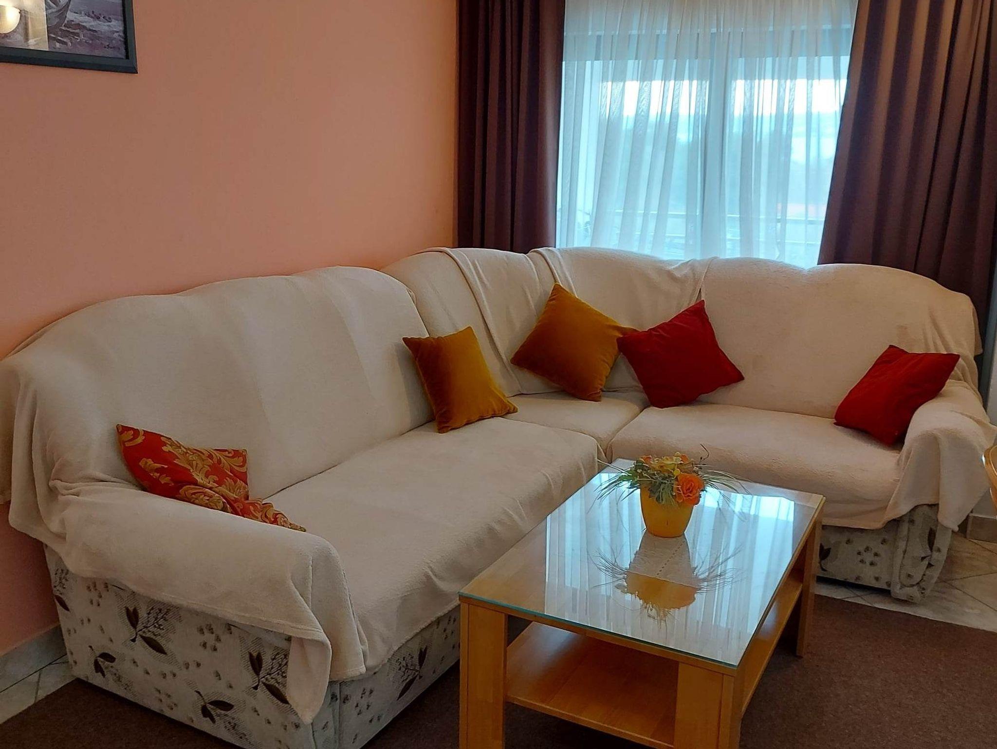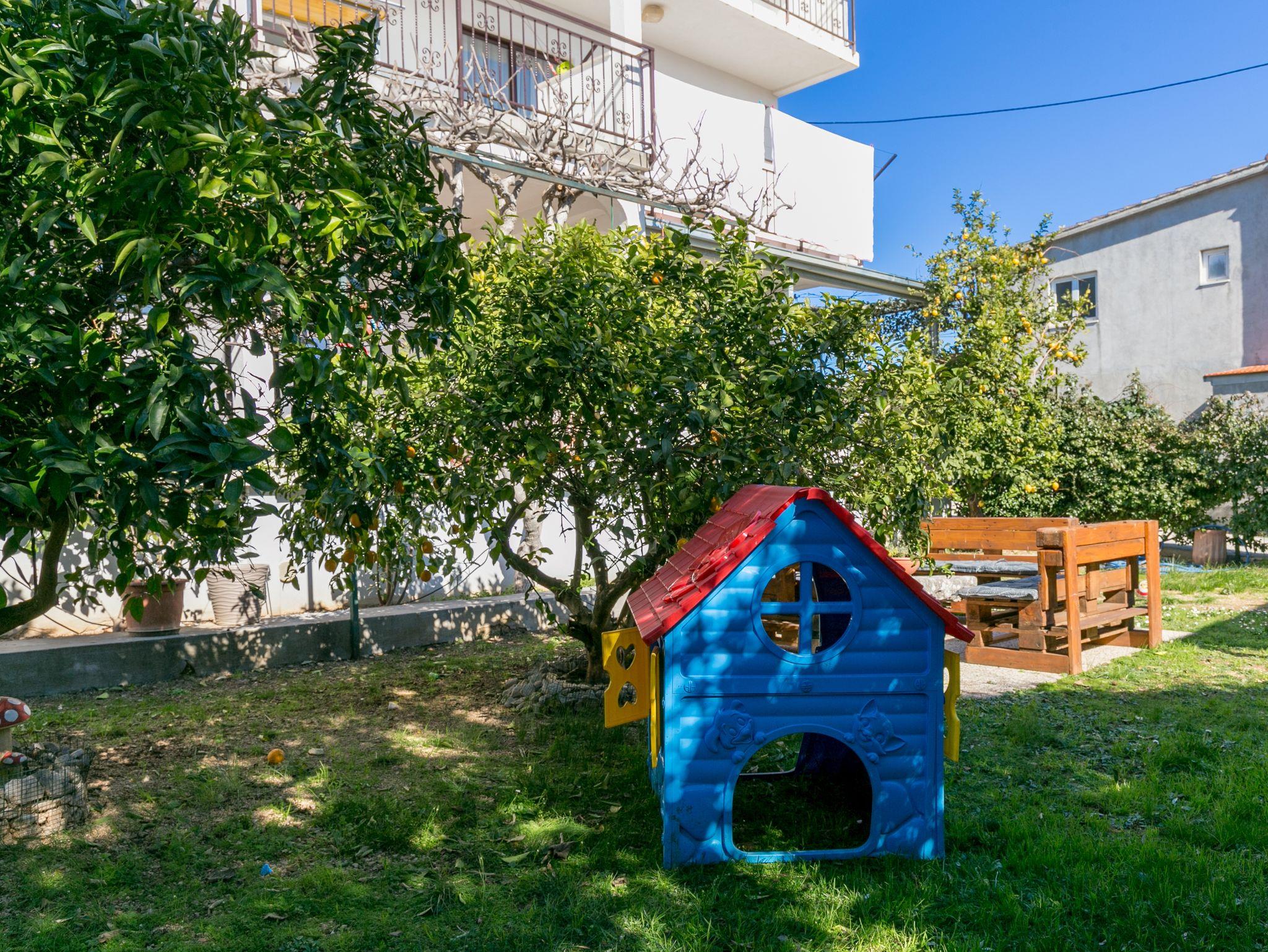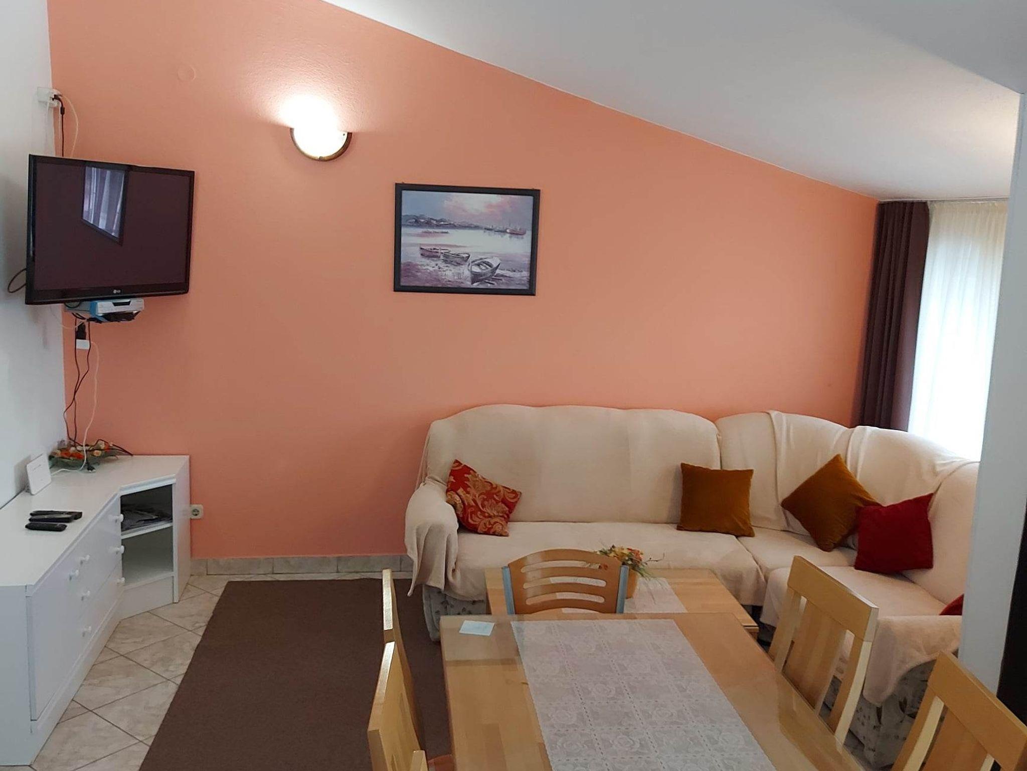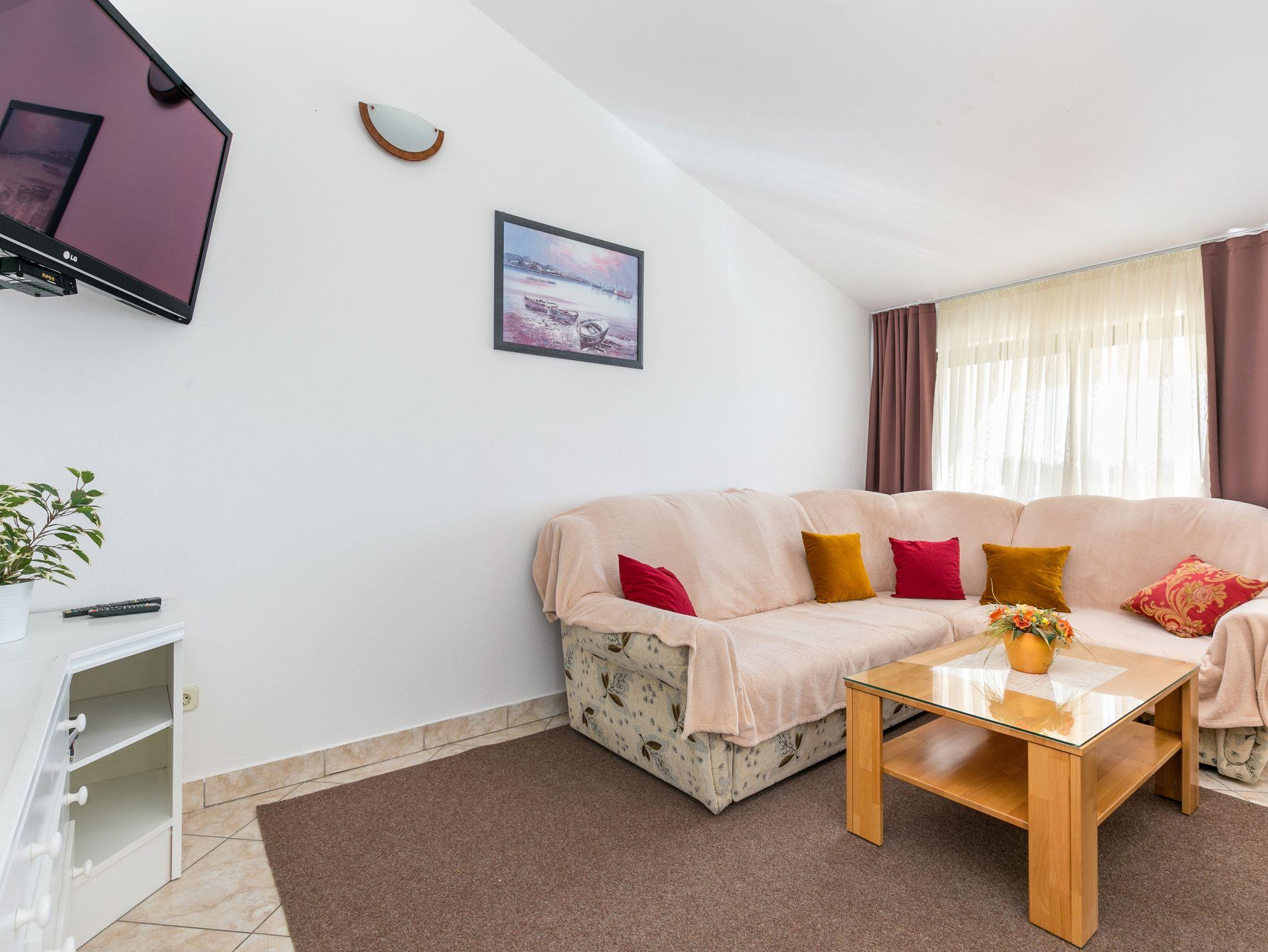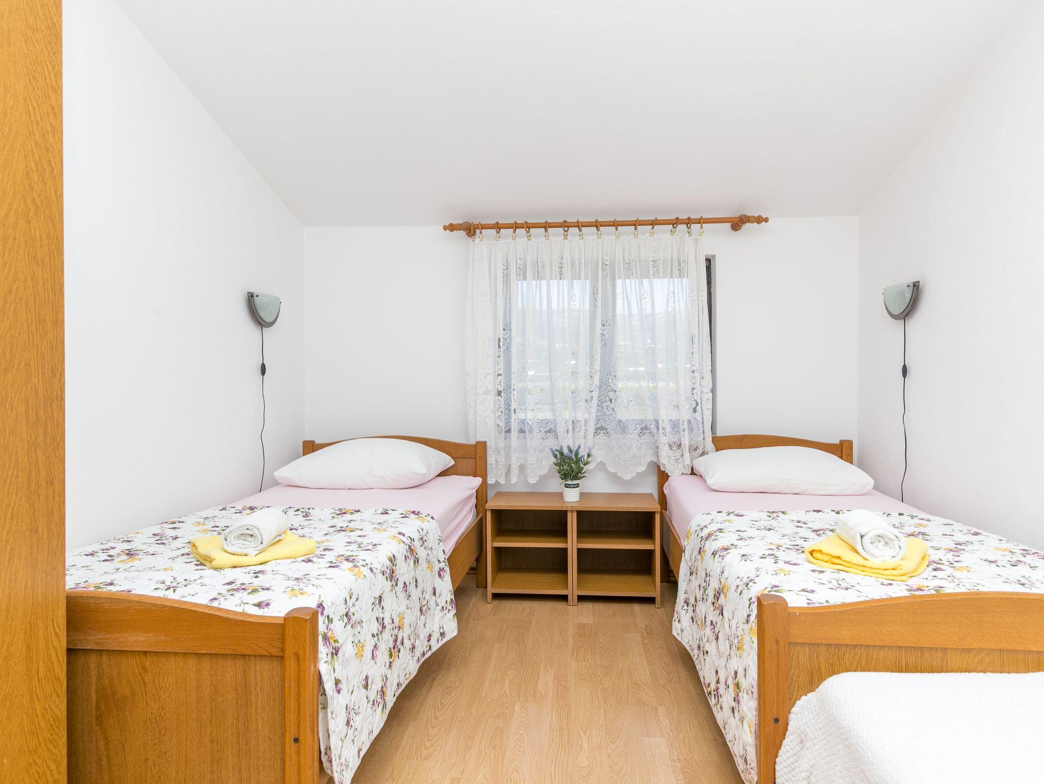 Ferienwohnung bietet Platz für 8 Gäste. Die Betten sind in Schlafzimmern, die es 4 gibt, innerhalb einer Gesamtfläche von 107m2, angeordnet. Die Gäste haben eine eigene Terrasse zur Verfügung, auf der sie in warmen Sommernächten genießen können. Das Apartment bietet Meerblick. Es ist erlaubt, Speisen auf dem Gemeinschafts-Grill vorzubereiten. IM PREIS INBEGRIFFEN: Kurtaxe, Endreinigung, Klimatisierung, Parkplatz, Internet, Kinderbett, Föhn. VERBINDLICHE ZUSÄTZLICHE KOSTEN: Aufzahlung für Kurzaufenthalte (prozentualer Zuschlag pro Nächtigungsanzahl: 30% - 1, 20% - 2, 10% - 3). Die Verfügbarkeit zusätzlicher Dienstleistungen in Ihrem reservierten Termin und die Preise derselben (falls nicht aufgeführt) müssen im Voraus überprüft werden. Zusätzliche Dienstleistungen die in der Zahlungsaufforderung nicht aufgeführt sind werden direkt beim Vermieter bezahlt, angenommen der Gast nutzt auch diese. Ermäßigung auf den Grundpreis: Gratistag 14=13 (bei einem Aufenthalt von 14 Tagen oder mehr erhalten Sie einen Gratistag für den Aufenthalt bis 31.12.26).