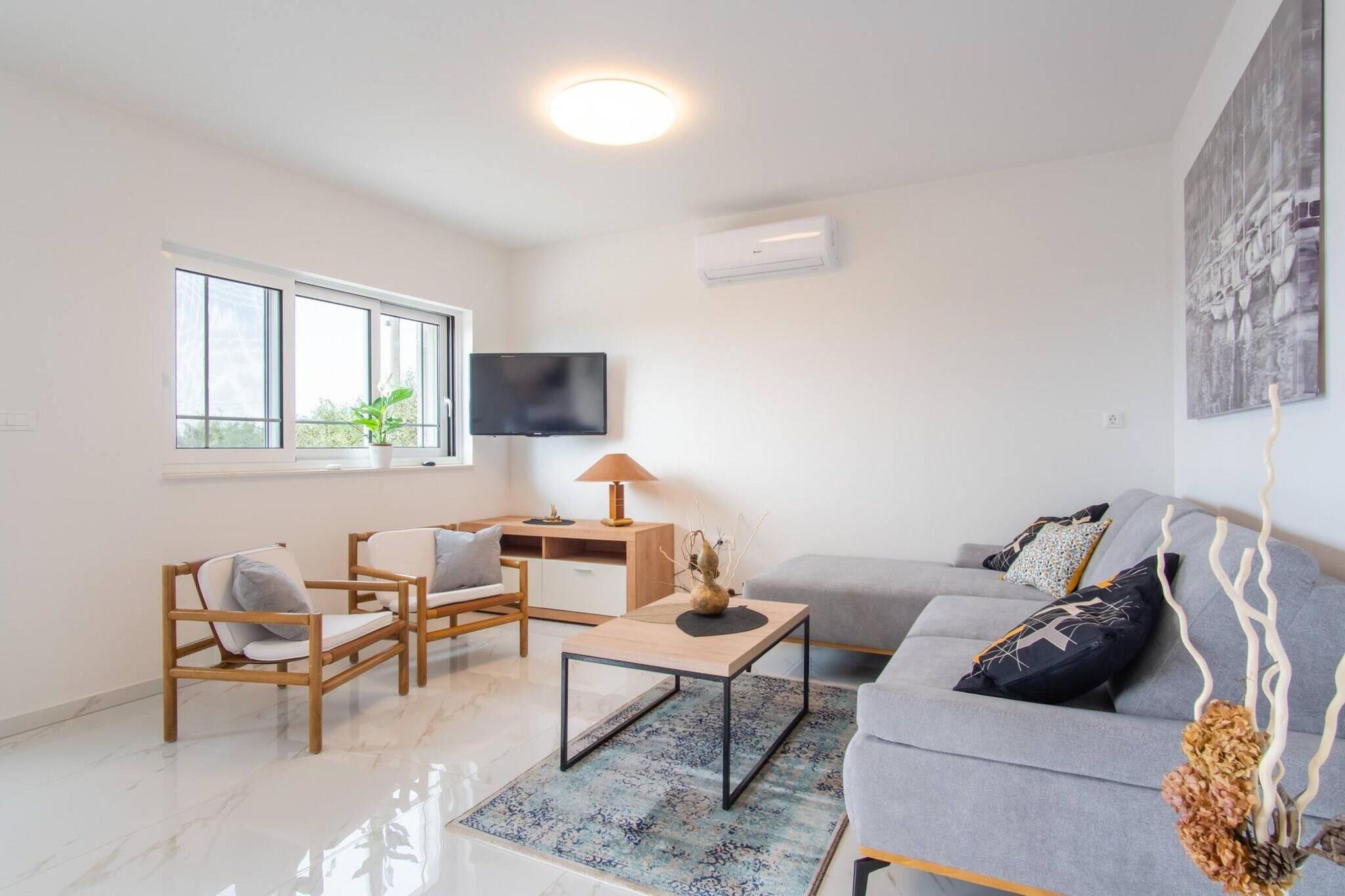 Dette charmerende feriehus ved havet tilbyder perfekte betingelser for en afslappende ferie kun få skridt fra stranden. Beliggende i den rolige kystby Kosljun på øen Pag, kan ejendommen rumme op til 6 personer, hvilket gør den til et perfekt valg for familier eller små grupper, der søger ro ved havet. Med sin store terrasse, udendørs jacuzzi og direkte adgang til stranden tilbyder den alt, hvad du behøver for en uforglemmelig ferie ved havet. Interiøret er lyst og smagfuldt renoveret. Der er en rummelig stue med spiseplads og udgang til terrassen, et fuldt udstyret åbent køkken, to moderne badeværelser og et ekstra toilet. De to airconditionerede soveværelser har det ene med en queensize-seng og det andet med to enkeltsenge samt ekstra sovepladser til større grupper. Udenfor kan gæsterne benytte sig af en 64 m² stor terrasse med liggestole, spisebord, udendørs køkken med stengrill og solbruser – perfekt til lange sommeraftener ved havet. Kosljun ligger i den sydlige del af øen Pag og byder på en fredelig atmosfære og en kyst med sand- og stenstrande, der er perfekte til svømning og solbadning. Området er perfekt til cykling og sightseeing, og en malerisk grusvej forbinder landsbyen med byen Pag, der ligger kun 11 km væk. I nærheden finder gæsterne restauranter, butikker og andre faciliteter, og naturelskere kan udforske øens rå skønhed og rolige omgivelser. Dette charmerende sted ved havet kombinerer komfort, bekvemmelighed og den kroatiske kysts naturlige charme.