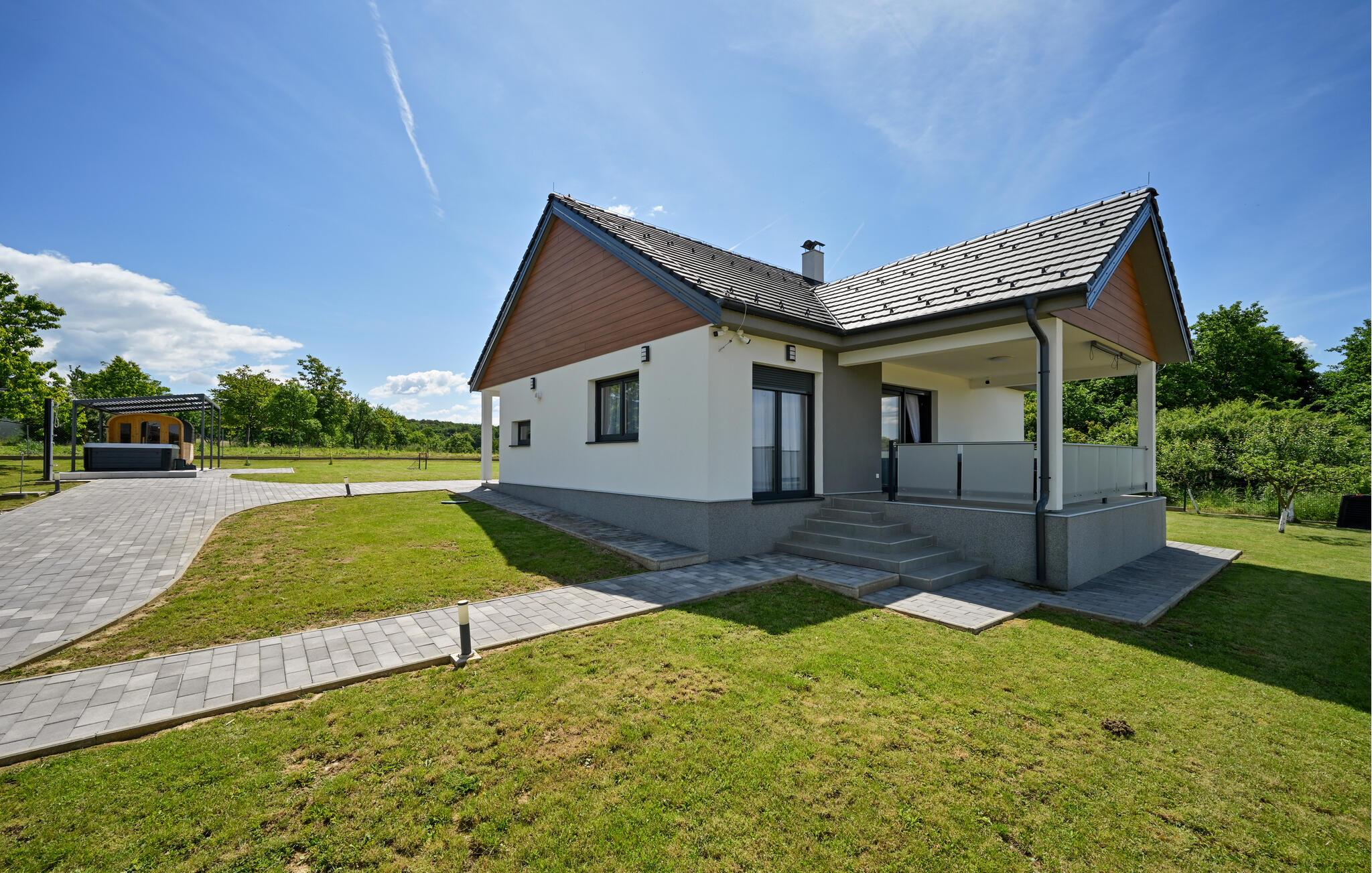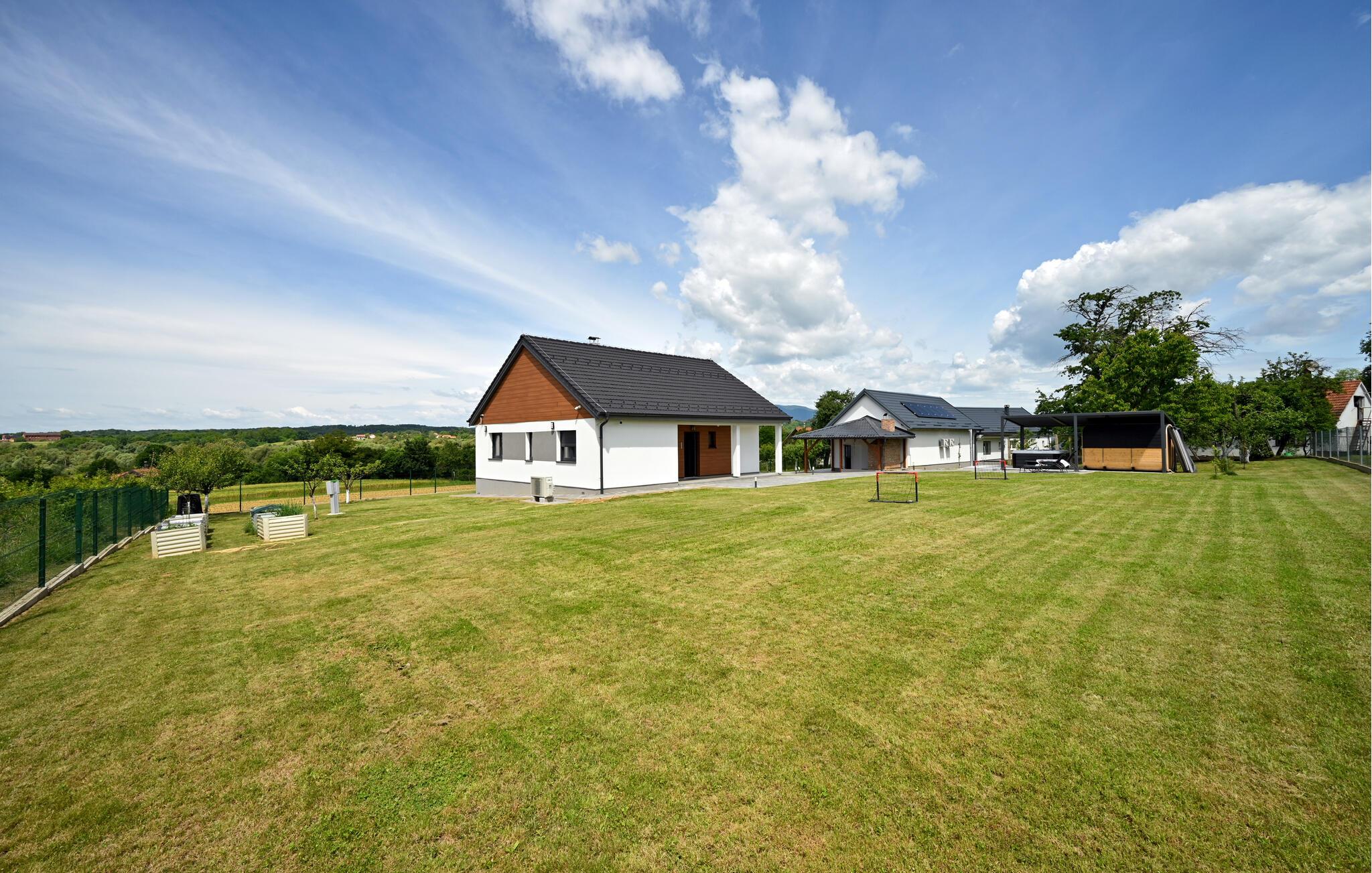 børnene vil især nyde den rummelige græsplæne. Lad dem spille fodbold, volleyball eller badminton, mens I slapper af i spabadet eller på liggestolen.