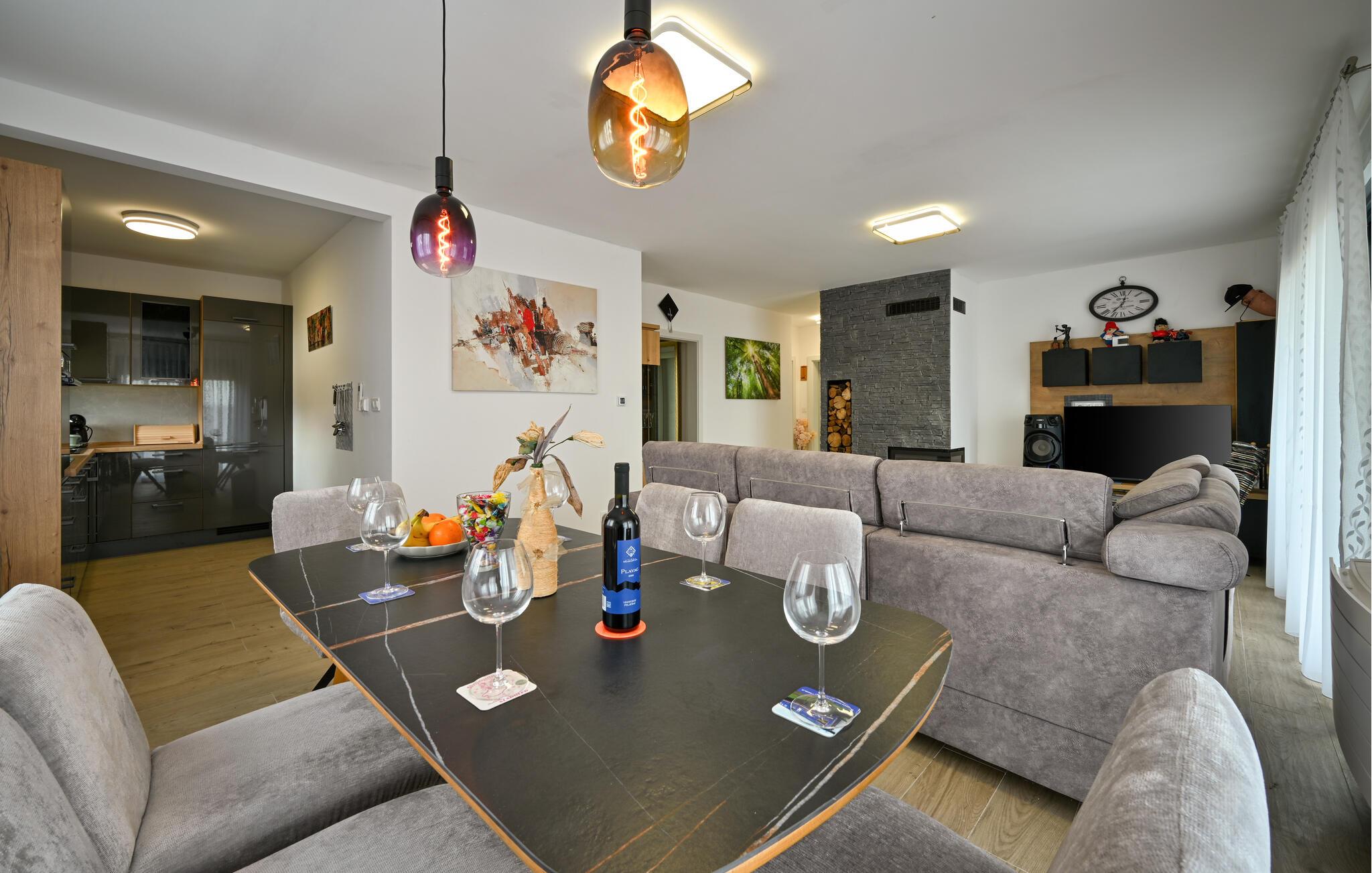 Dette rummelige og moderne feriehus byder på talrige ekstraudstyr, som gæster i alle aldre vil nyde. Lav lækre måltider i det elegante køkken og nyd dem sammen ved det indbydende spisebord. Afslut dagen med en spilleaften eller læn jer tilbage på sofaen for at streame en god film, mens brændeovnen sørger for hygge. Forkæl jer selv med behagelige stunder i saunaen eller træn i fitnessrummet.