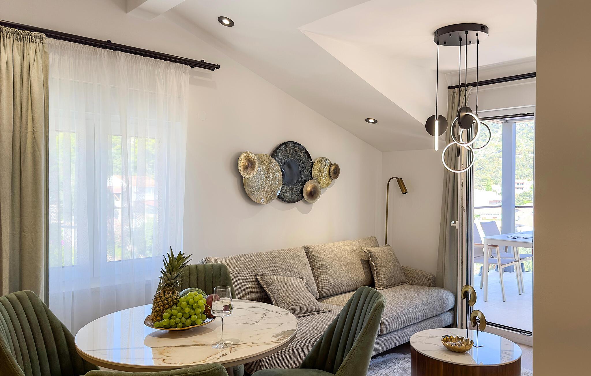 Denne elegante ferielejlighed tilbyder jer den ideelle kombination af komfort, design og aktiviteter. Nyd jeres tid med udsigt over Adriaterhavets dybblå vand. Det kompakte opholdsområde er noget særligt med stilfulde møbler, moderne farver og materialer af høj kvalitet. Gør det behageligt i sofaen, eller lav en let frokost i det åbne køkken.