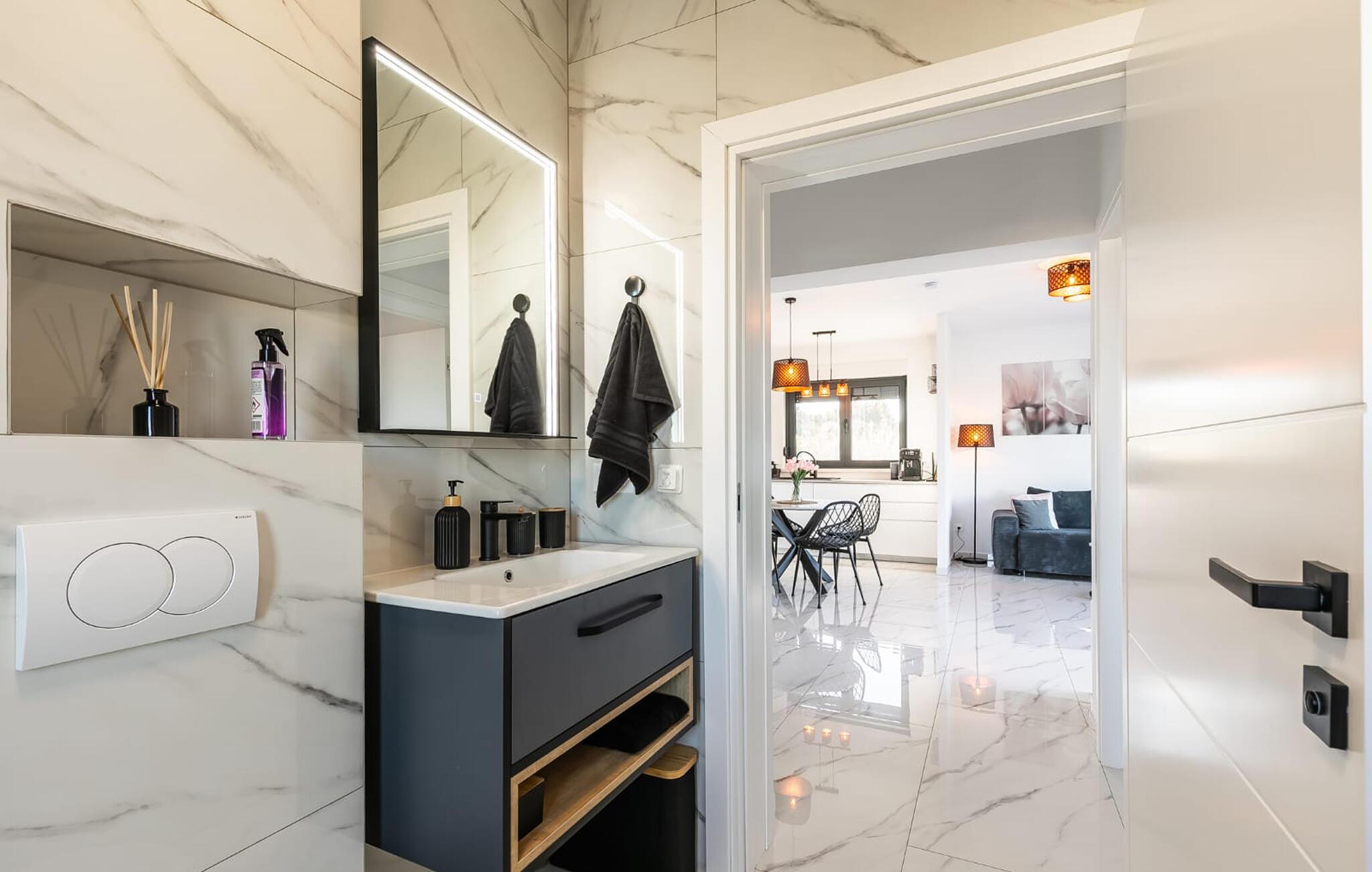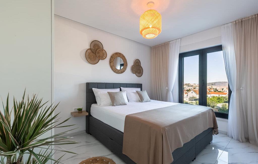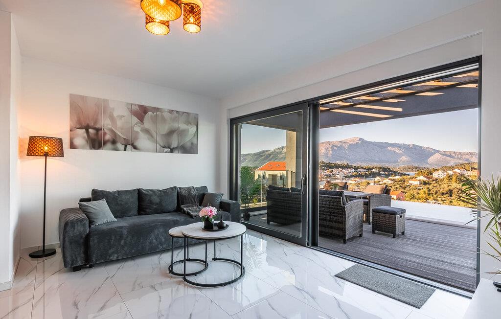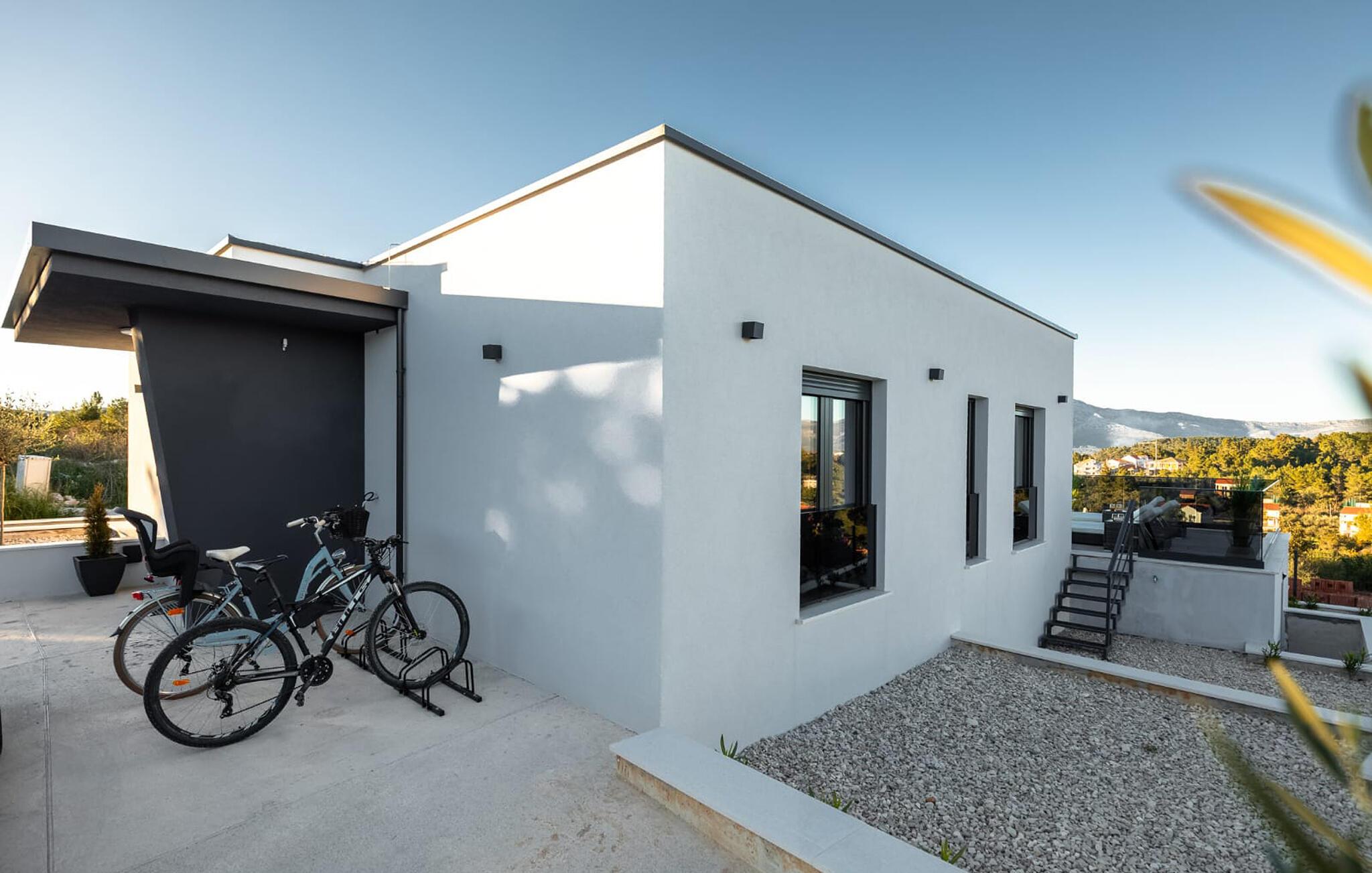 Dette komfortable feriehus vil forkæle jer med et stilfuldt designet interiør, moderne faciliteter og smuk panoramaudsigt over landskabet og havet. Fremtryll kulinariske lækkerier i det åbne køkken, lad den behagelige brise strømme gennem værelserne, mens I nyder middelhavsretter, og sæt jer til rette til en filmaften i den behagelige sofa.