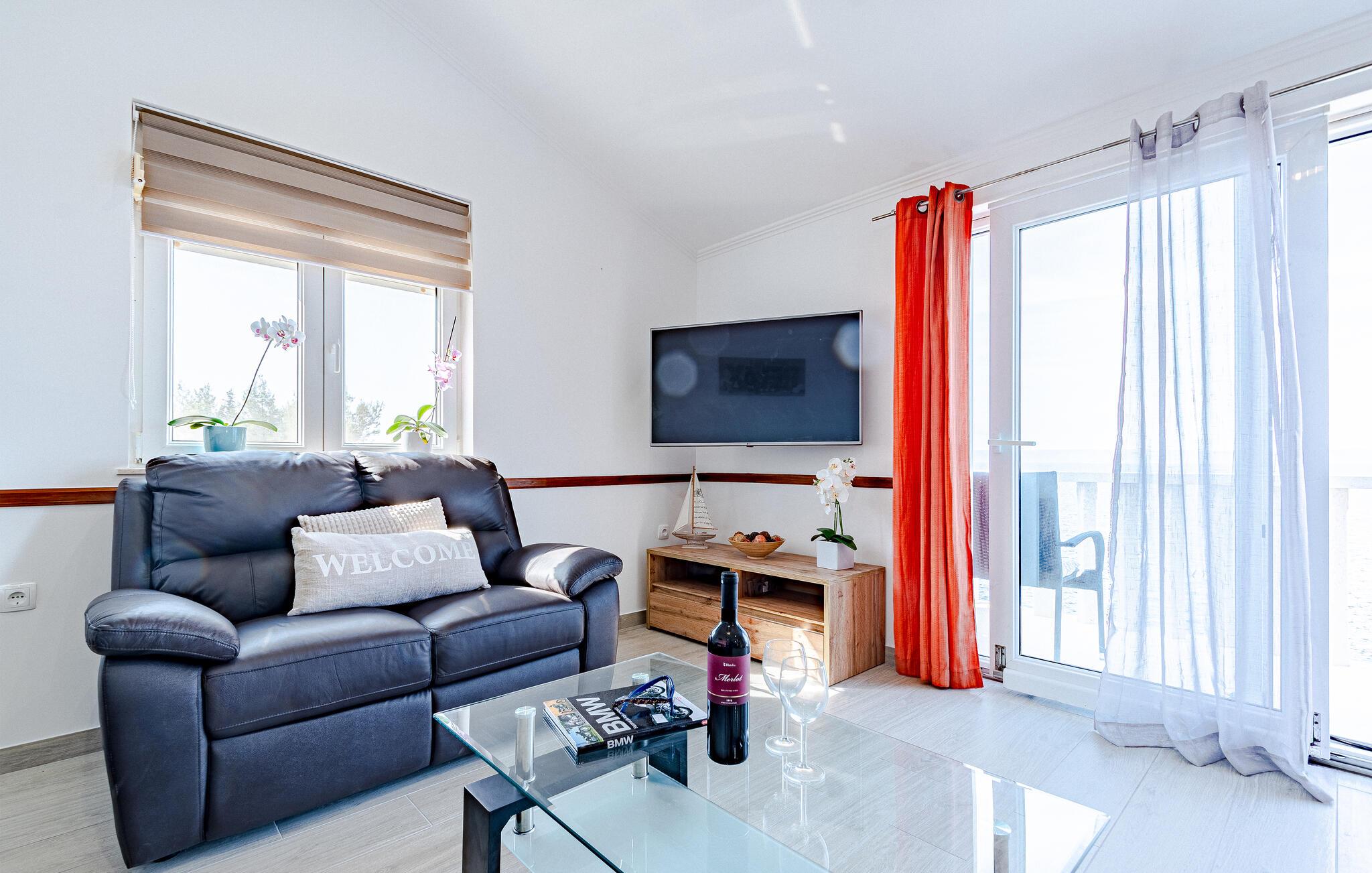 Denne stilfulde ferielejlighed i Prigradica er noget særligt med sin betagende beliggenhed med panoramaudsigt over det glitrende hav og de omkringliggende øer samt en fortryllende privat pool. Lad hverdagen bag jer og nyd jeres frie ferie her i fulde drag. Det lyse og åbne interiør er noget særligt med indretning af høj kvalitet og store vinduesfronter, der skaber en følelse af rum og lys. Lav mad i det moderne køkken og nyd en lækker morgenmad ved den praktiske køkkenbord om morgenen.