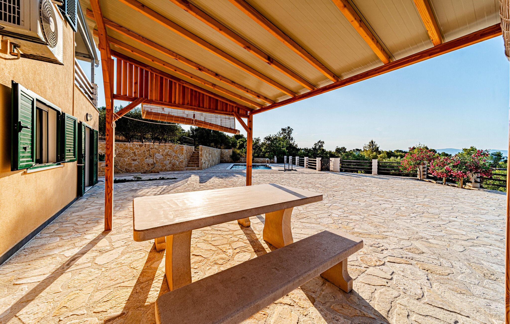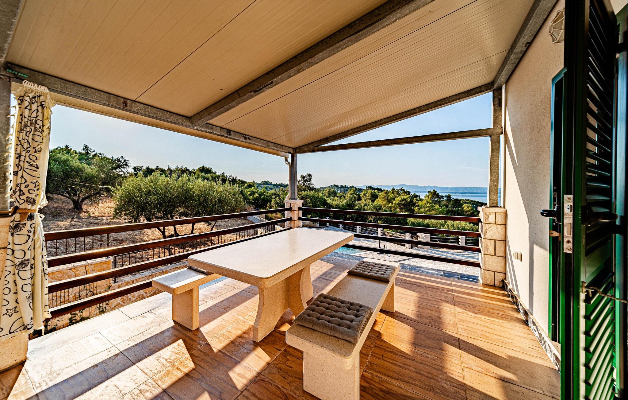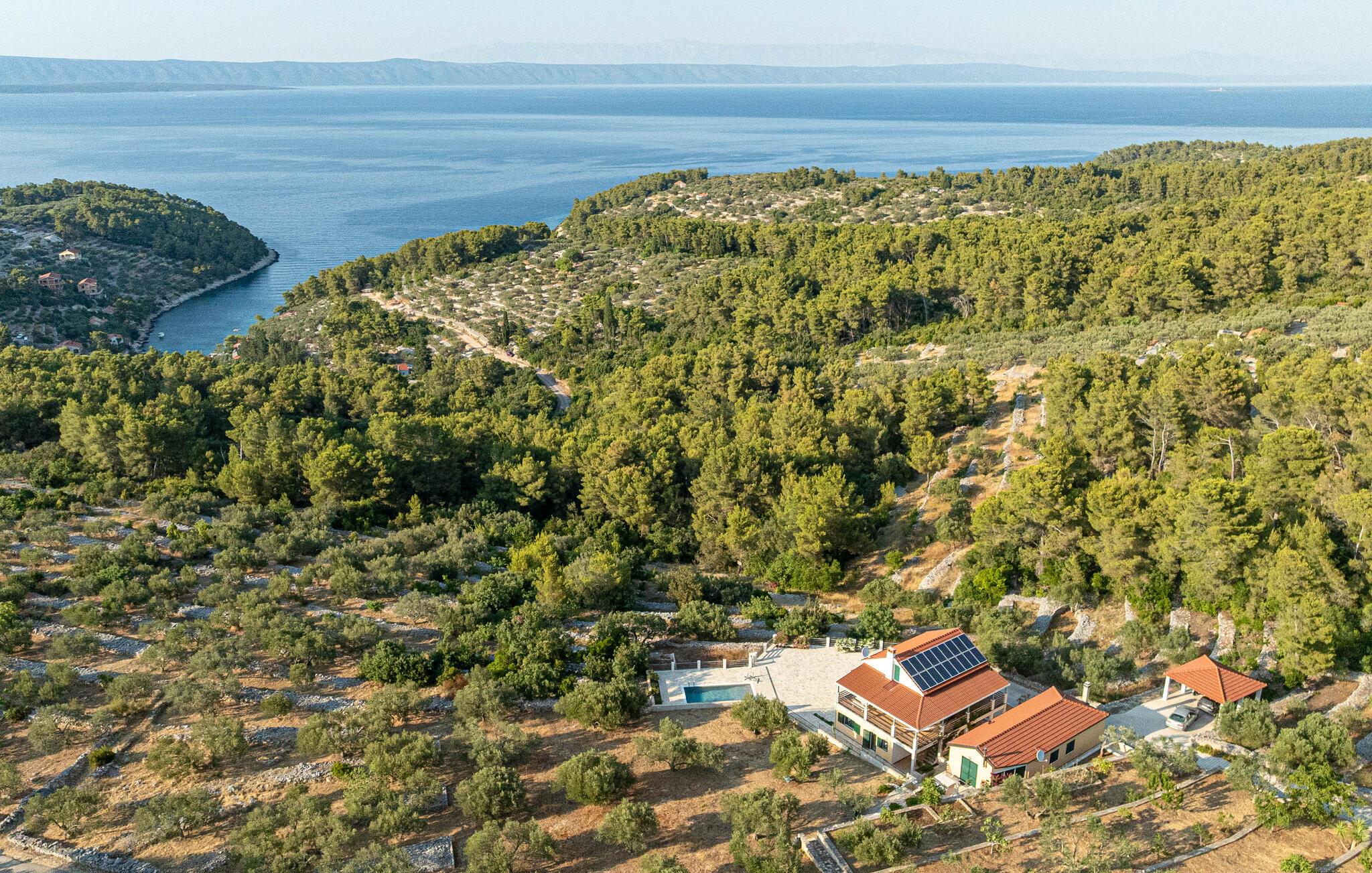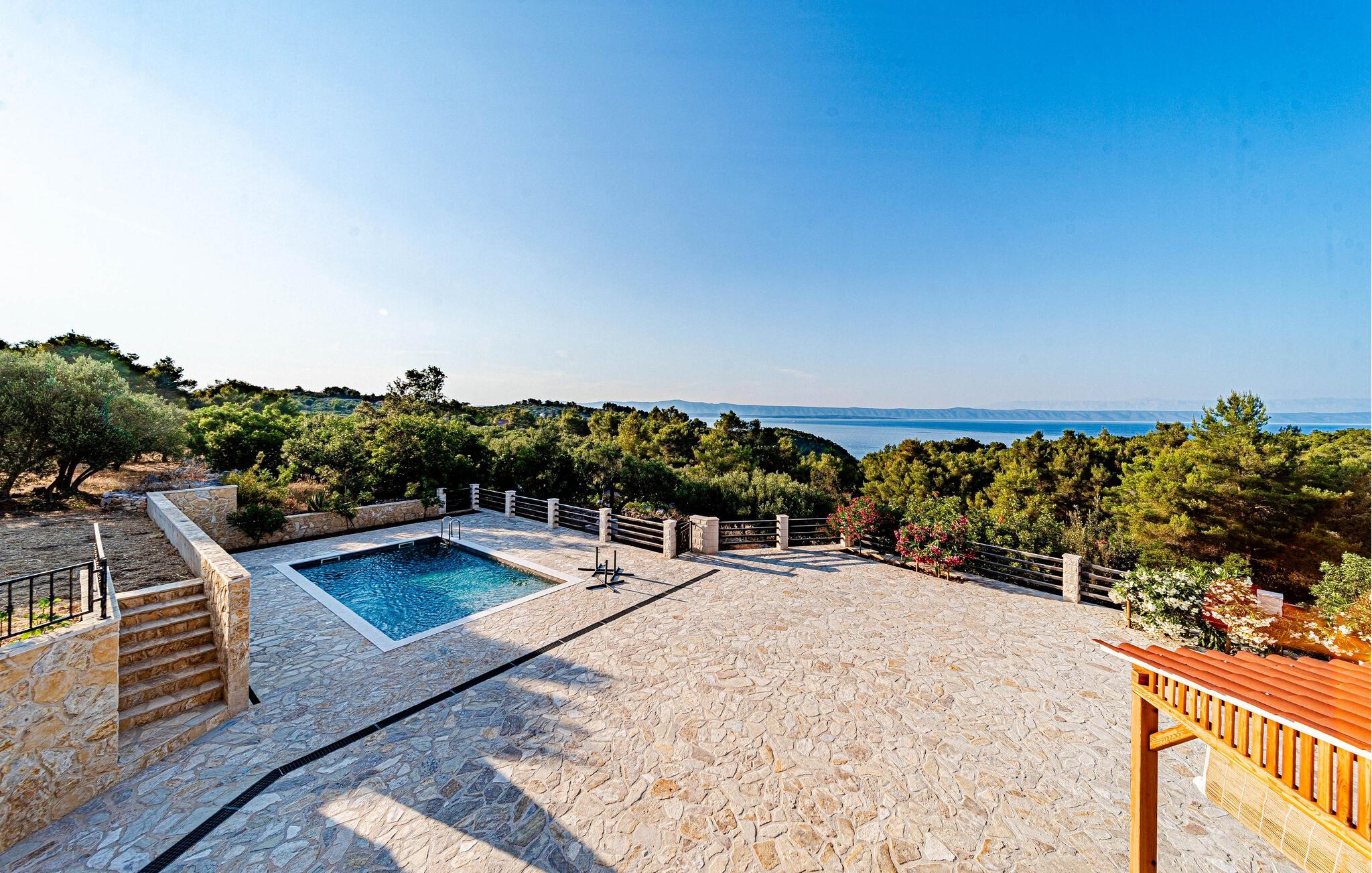 Nyd et vidunderligt ophold i dette idyllisk beliggende feriehus med pool og havudsigt.