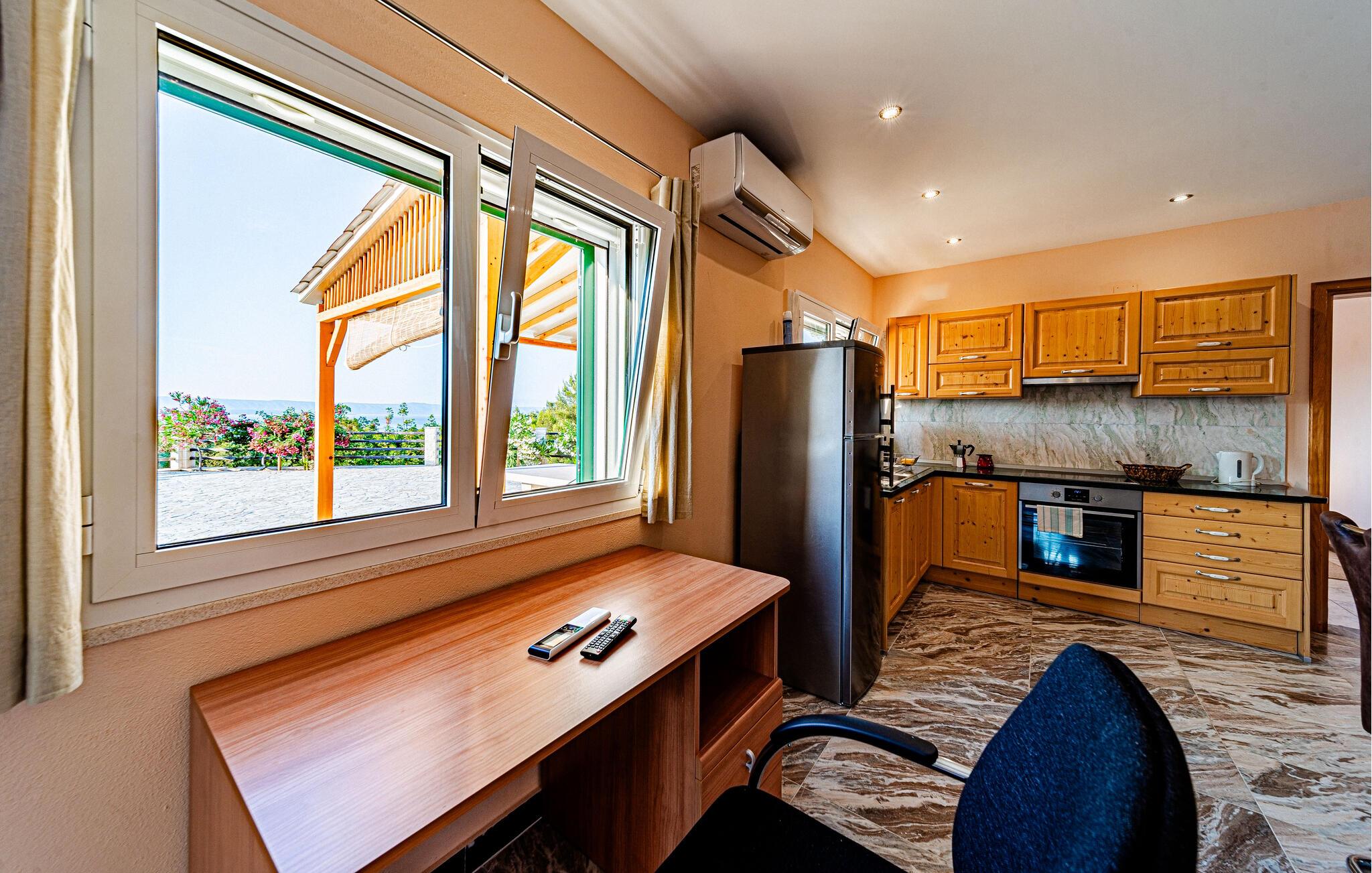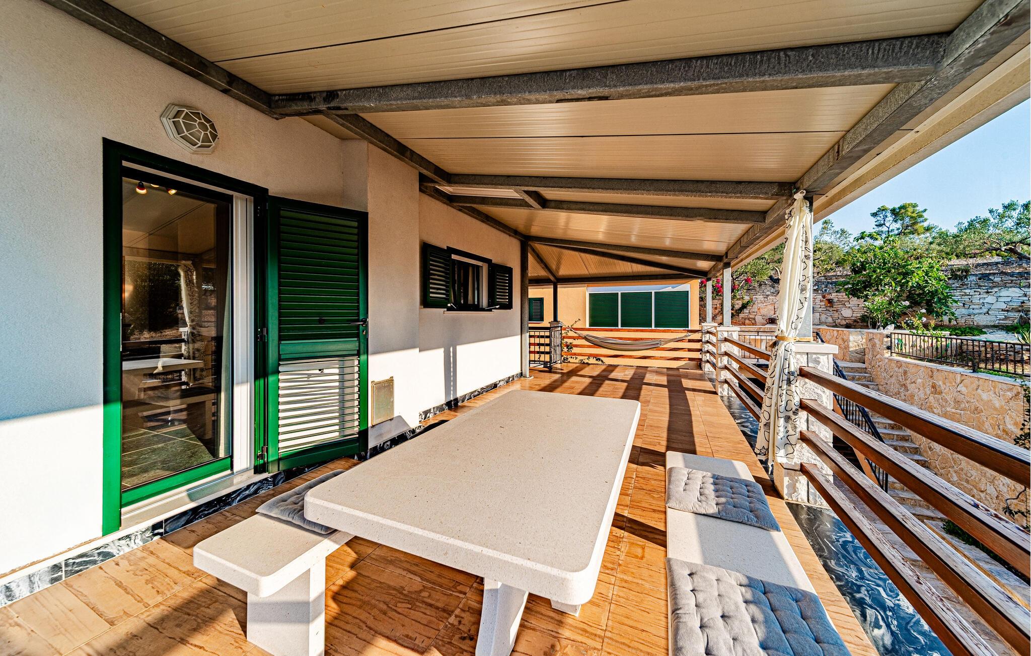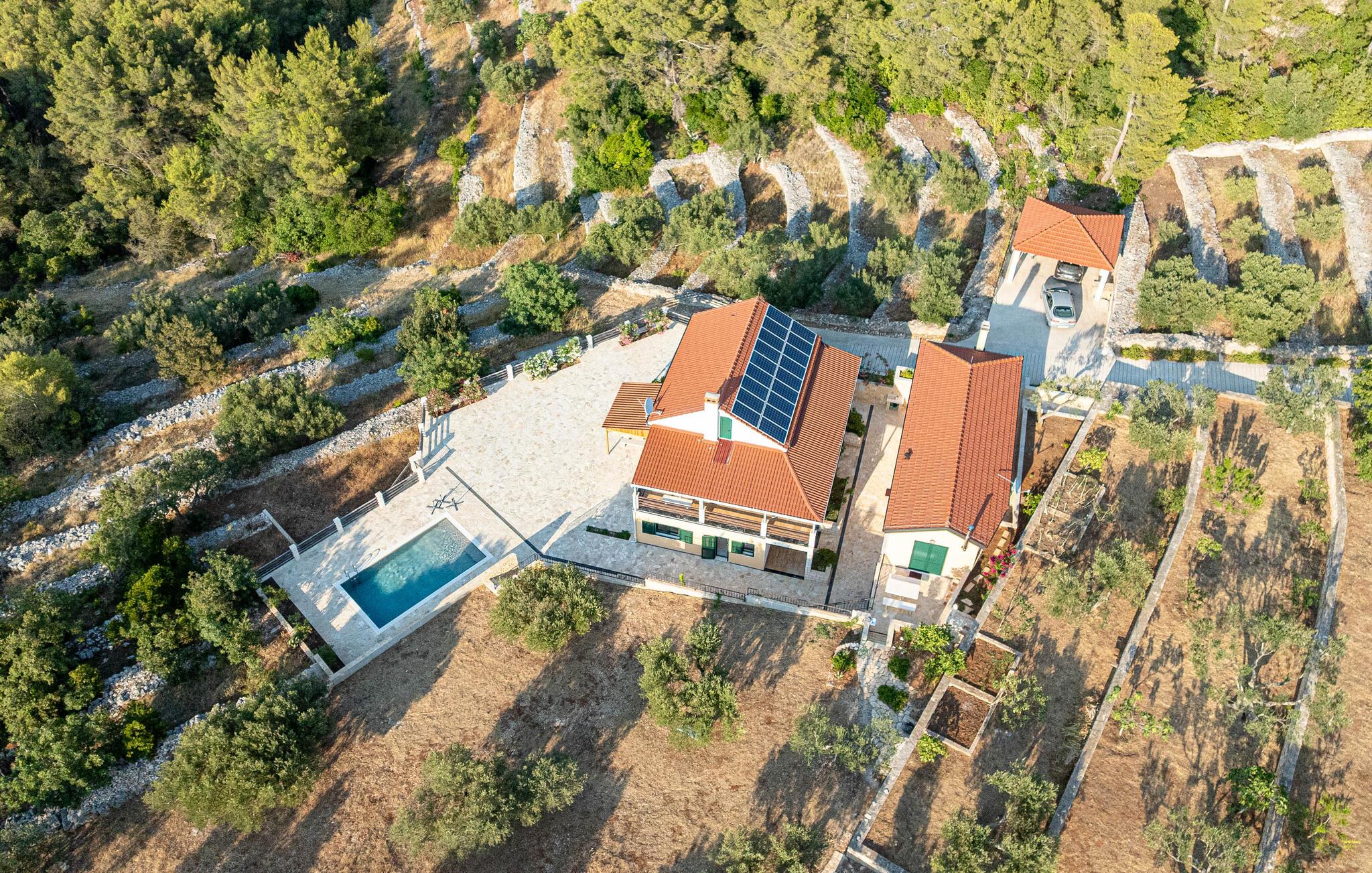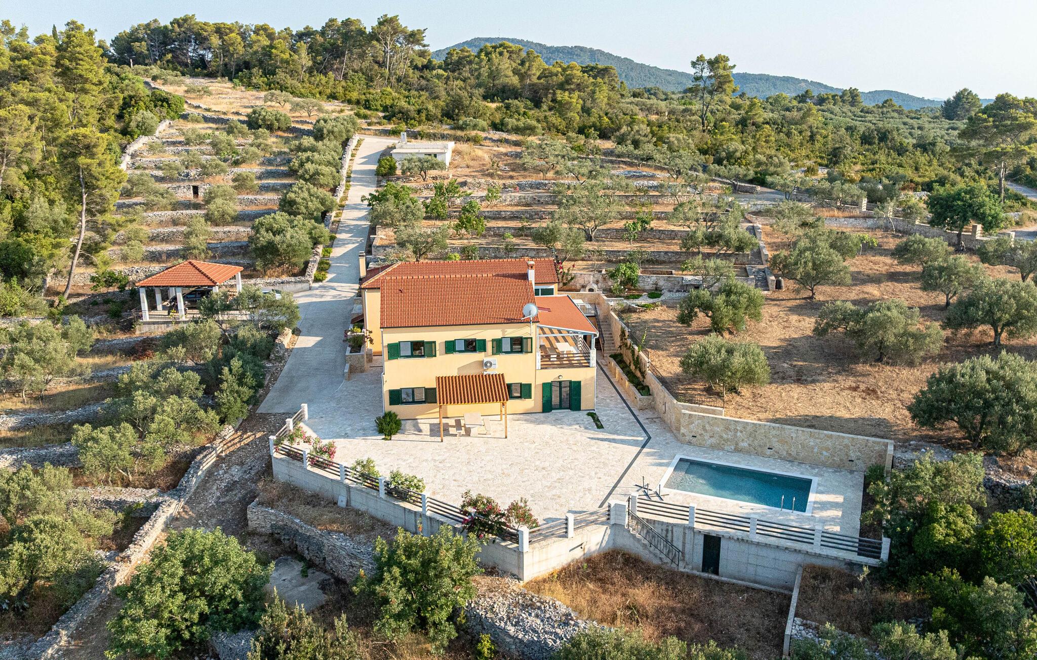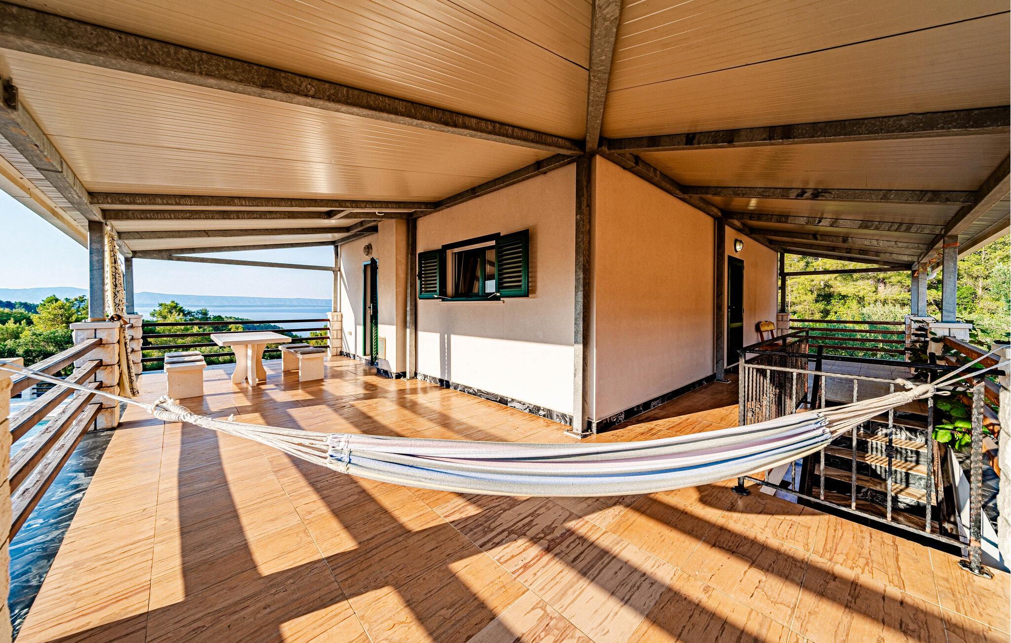Nyd et vidunderligt ophold i dette idyllisk beliggende feriehus med pool og havudsigt.