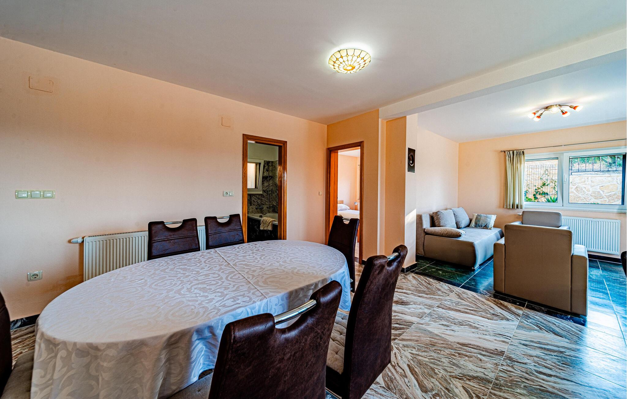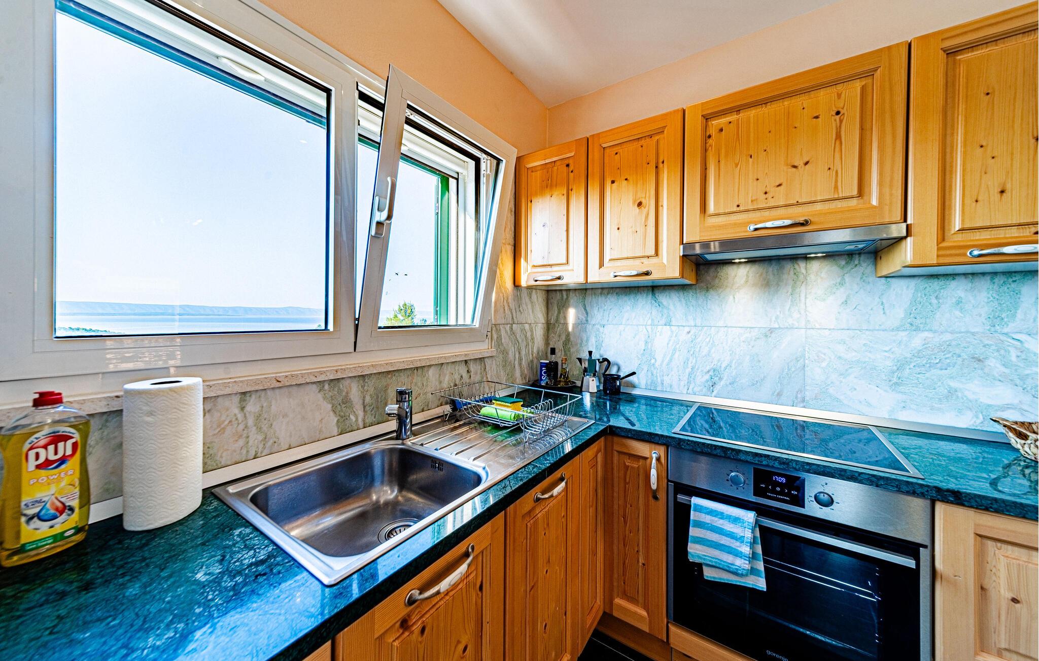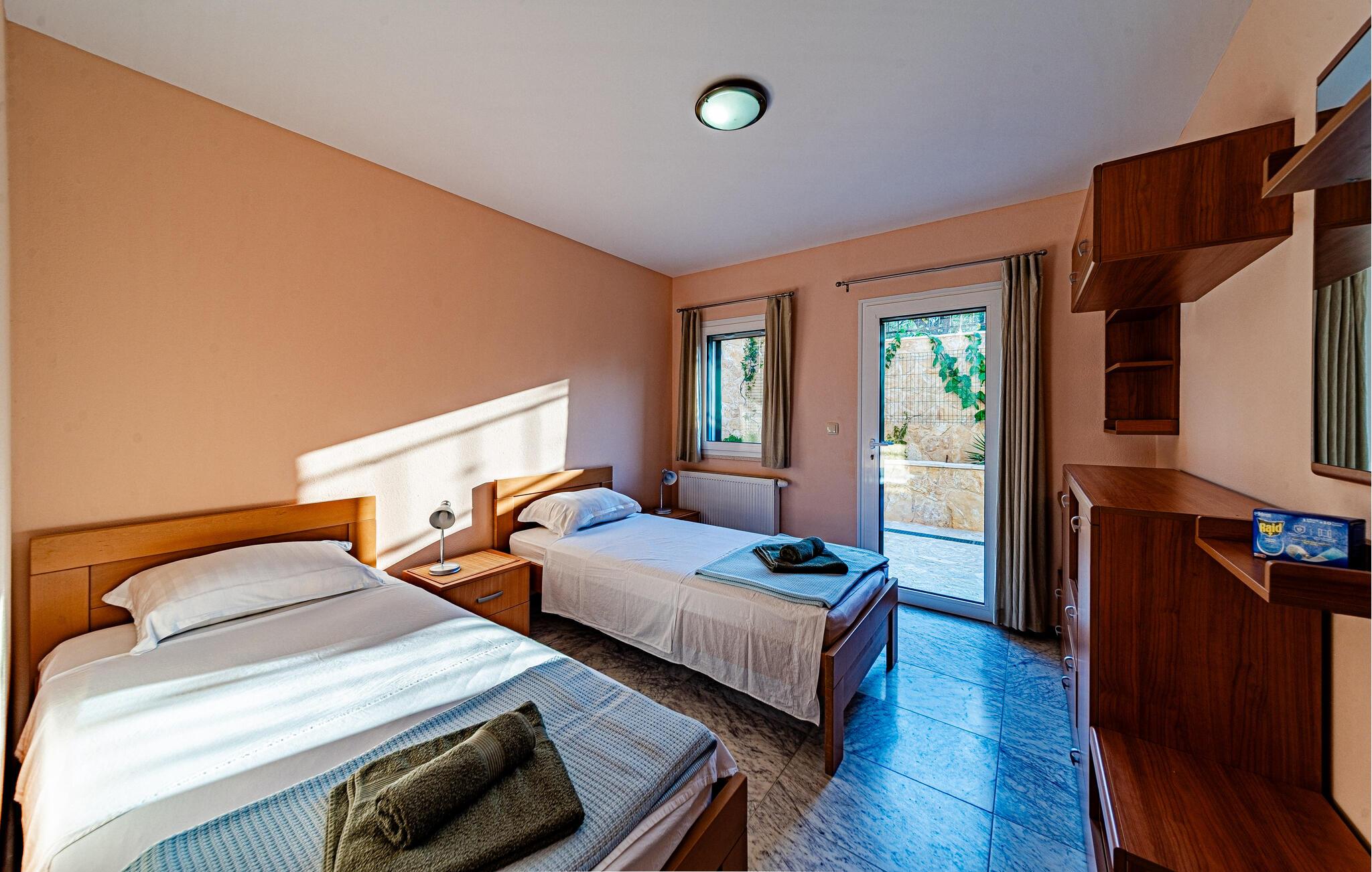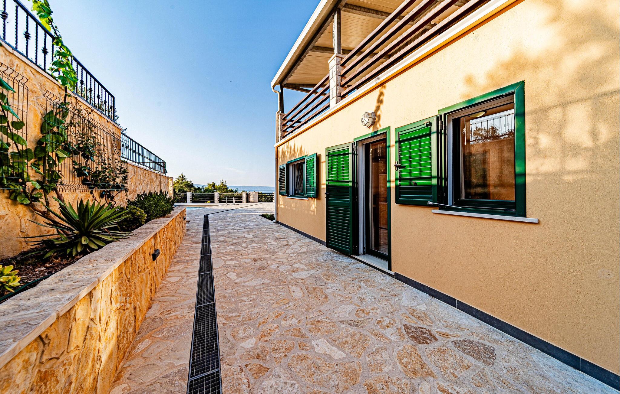 Nyd et vidunderligt ophold i dette idyllisk beliggende feriehus med pool og havudsigt.