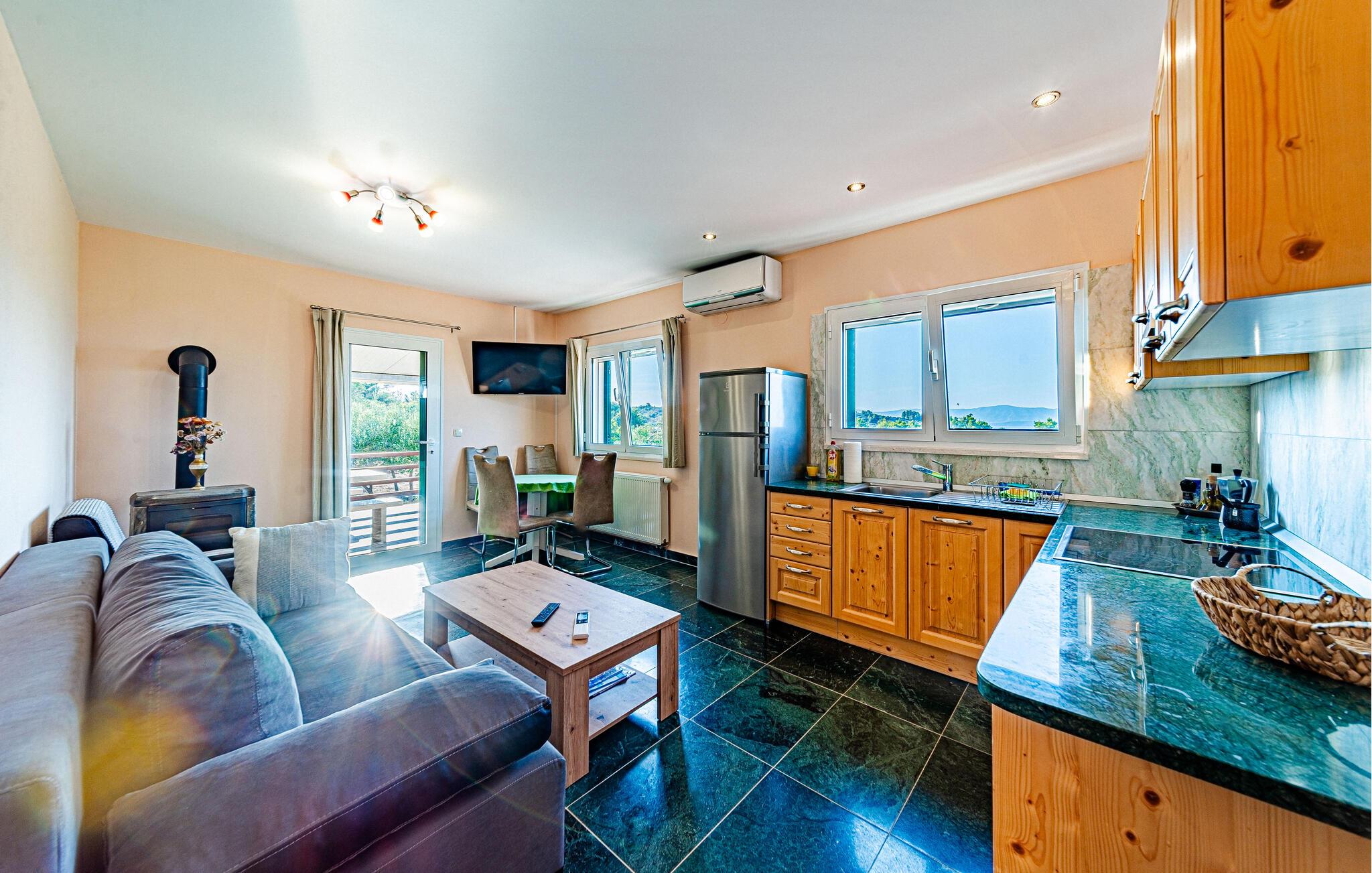 I dette hyggelige hus forenes rustik charme og komfort på en meget behagelig måde. Glade farver og blødt dagslys liver indendørsarealerne op, mens en komfortabel sofagruppe indbyder til mange timers hyggelig afslapning. Uanset om I læser, lytter til musik eller streamer jeres yndlingsserie – her finder I hurtigt ro og genvinder ny energi.