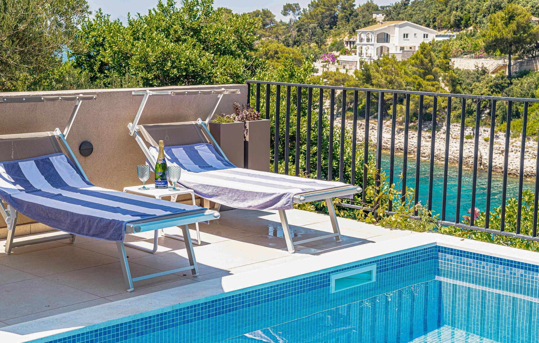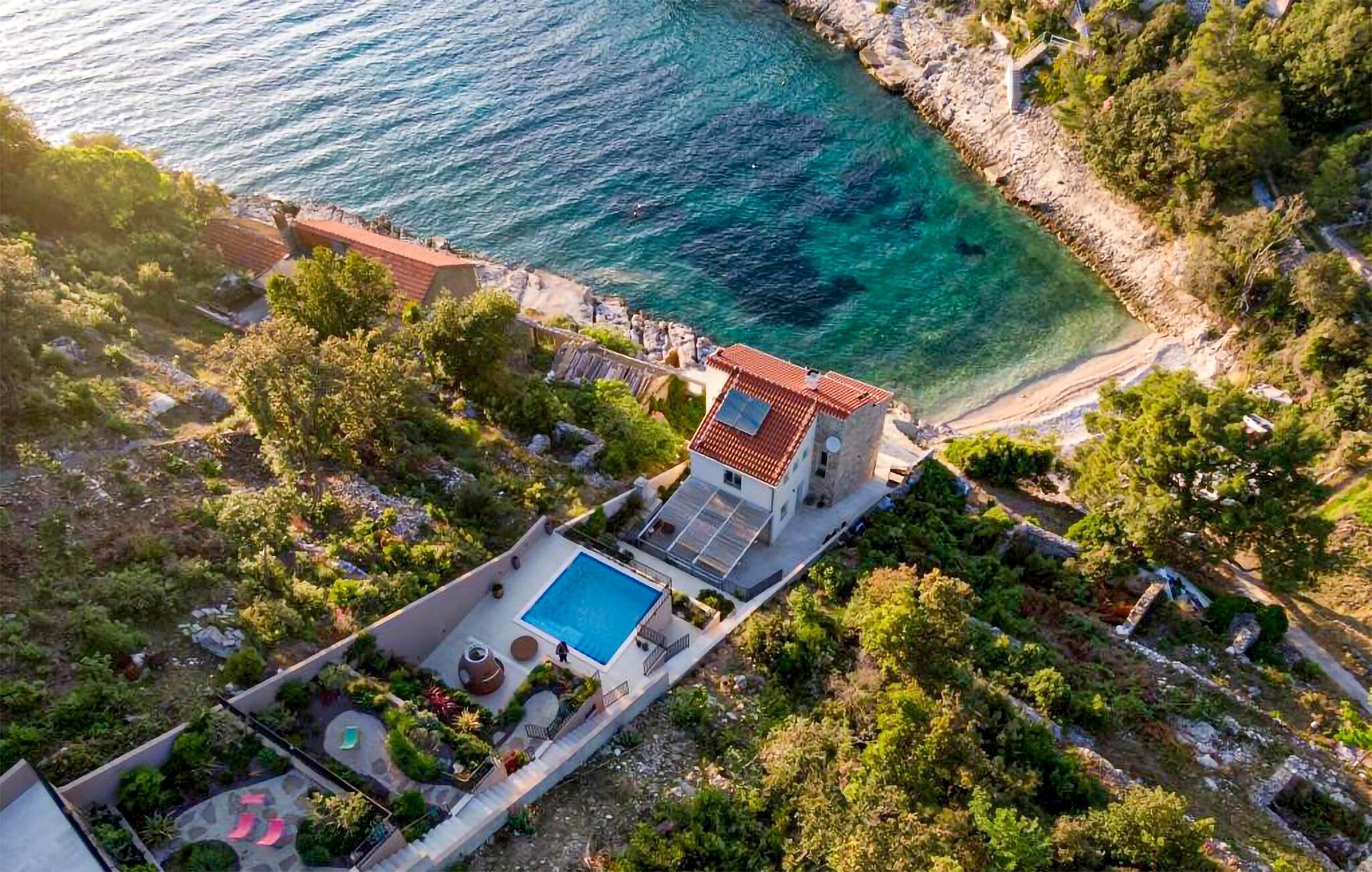 Hvis I kan løsrive jer fra den vidunderlige bolig, kan I udforske de mange smukke steder på øen Korcula. Den sjettestørste kroatiske ø er ret smal og kendt for sine tætte skove. Besøg byen Korcula for imponerende sværddansere, dekorerede paladser og elegante huse, der ser særligt smukke ud om aftenen. Eller udforsk de mindre landsbyer, hvis I leder efter mindre travlhed. I kan tage en færge til fastlandet til de smukke byer Split eller Dubrovnik.