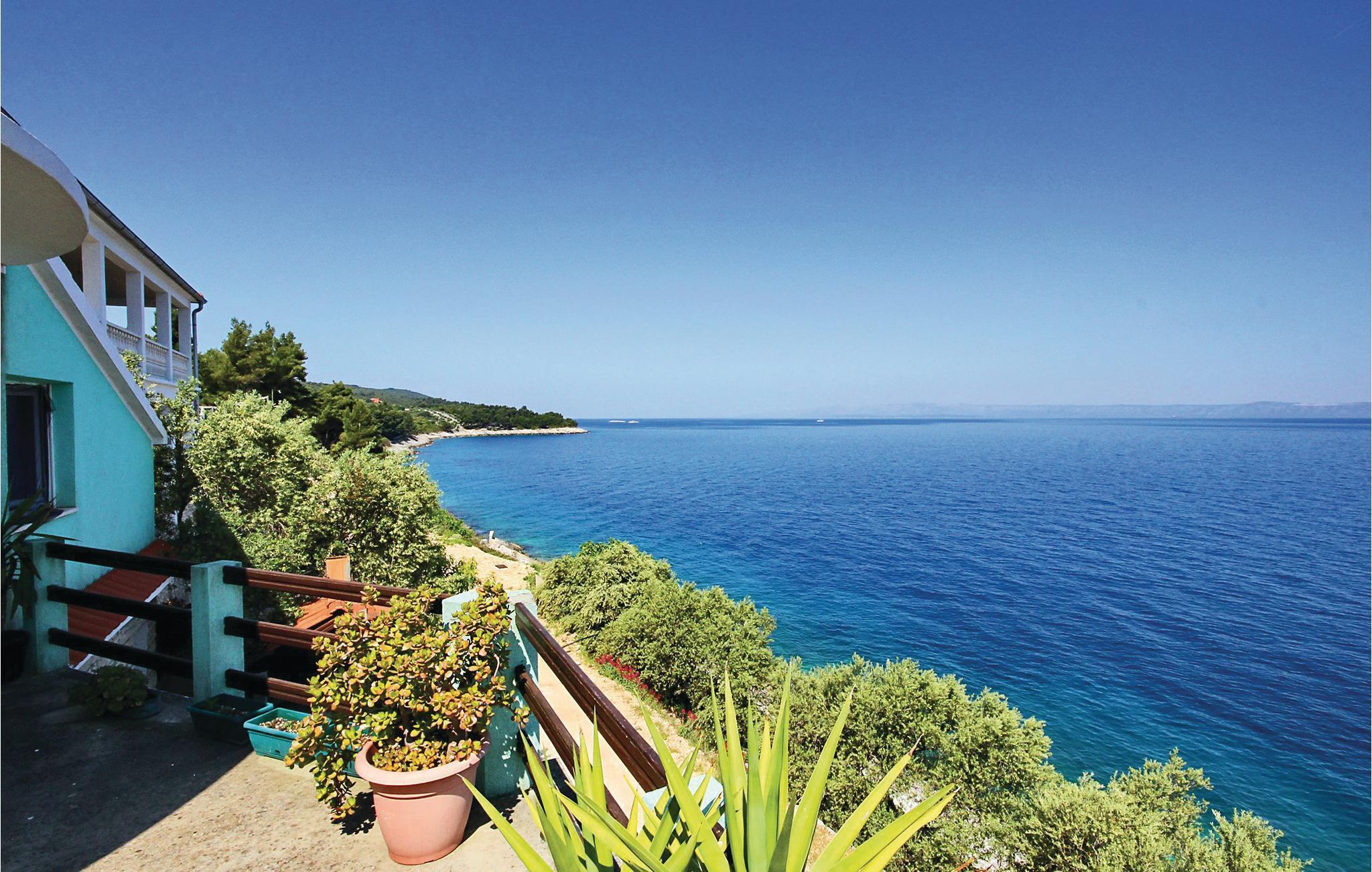 Dette praktiskt indrettede feriehus ligger i idylliske og rolige omgivelser, langt fra trafikstøj. Fra den store terrasse er der betagende udsigt over havet til øen Hvar og de imponerende Biokovo-bjerge på fastlandet. Her er det skønt bare at slappe af med en god bog, eller nyde alle dagens måltider.