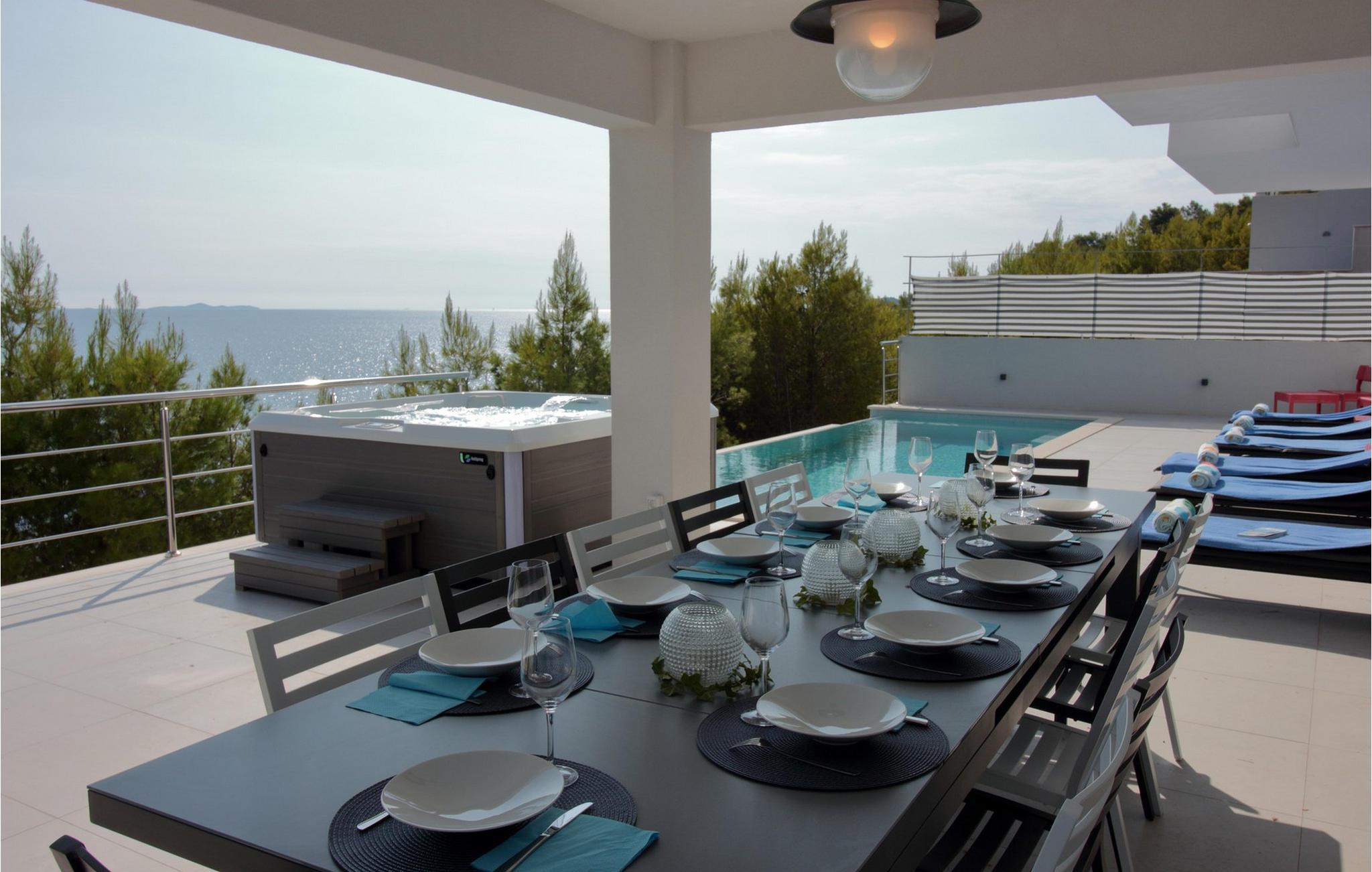 Forkæl jer selv med en drømmeferie i denne luksuriøse villa med havudsigt. Villa Carpe Korcula på den idylliske ø Korcula ligger direkte ud til havet og kun få meter fra vandet og lægger op til en uforglemmelig ferie. Den rummelige stueetage tilbyder et moderne, fuldt udstyret køkken, en rummelig spisestue og en lys stue med poolbord - perfekt til underholdning med familien. Komfortable, solrige soveværelser og attraktive badeværelser venter jer på de øverste etager. Haven har som noget særligt en fantastisk infinity-pool med panoramaudsigt over havet og imponerende solnedgange samt et spabad og hyggelige områder til afslapning. Udnyt mulighederne for at spille boccia eller gå et par trin ned til solbadnings- og svømmeområdet lige ved havet. Øen Korcula har som noget særligt maleriske strande som sandstranden Pržina i Lumbarda og skjulte bugter som Pupnat. Udforsk den charmerende gamle bydel i Korcula med Markuskirken og bymuseet eller nyd direkte adgang til havet og en fortøjningsplads til jeres båd. Villa Carpe Korcula kombinerer komfort, elegance og en perfekt beliggenhed til en uforglemmelig ferie.