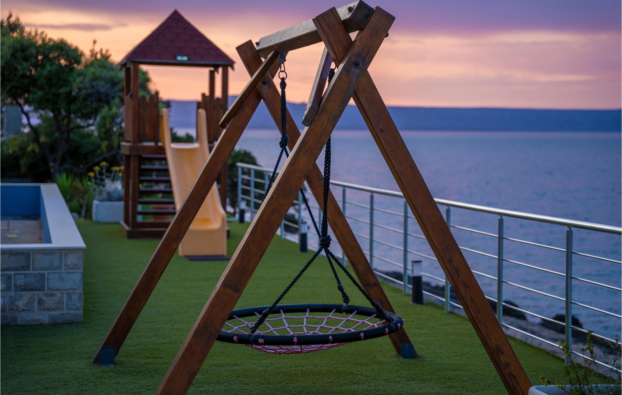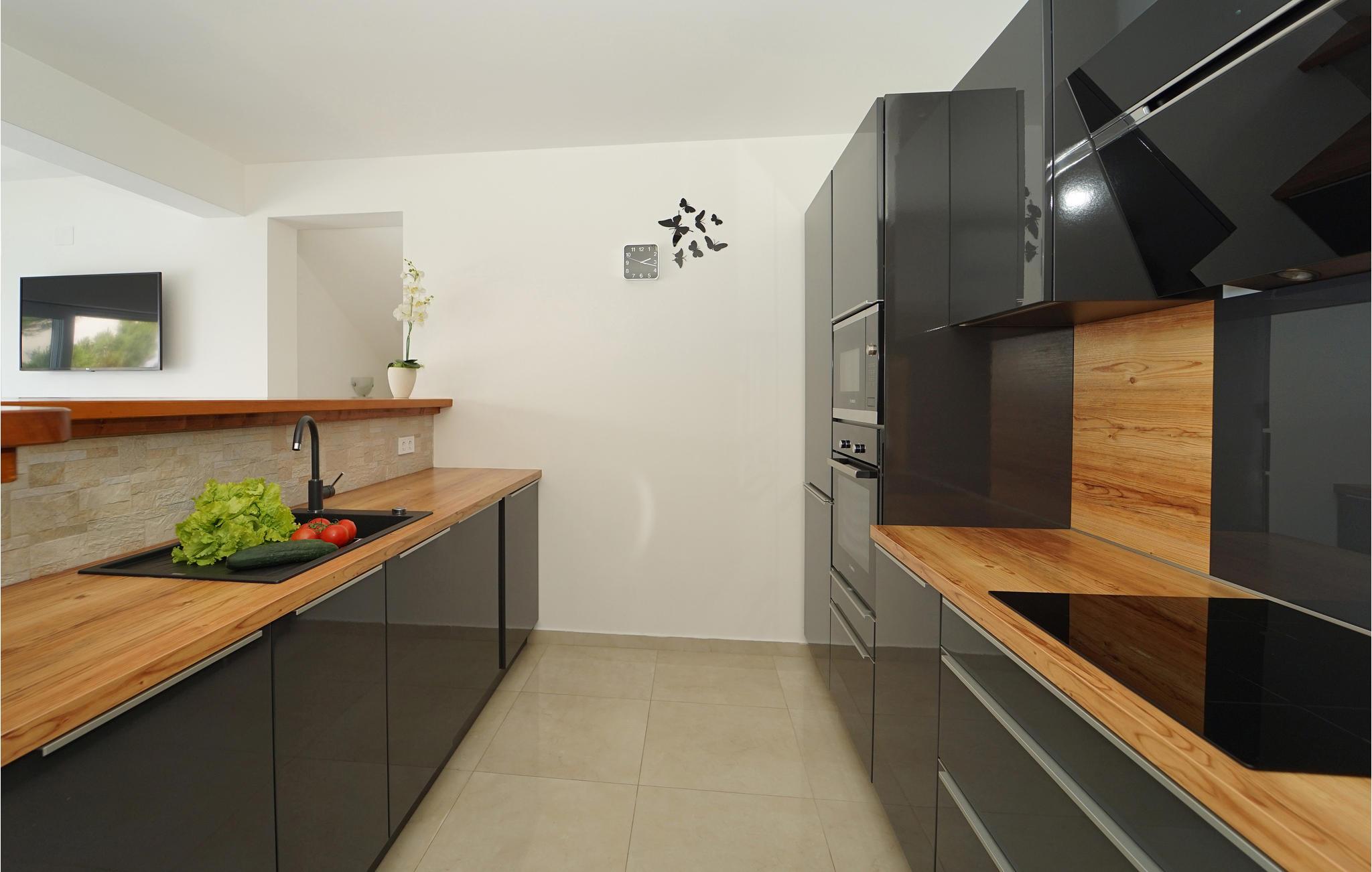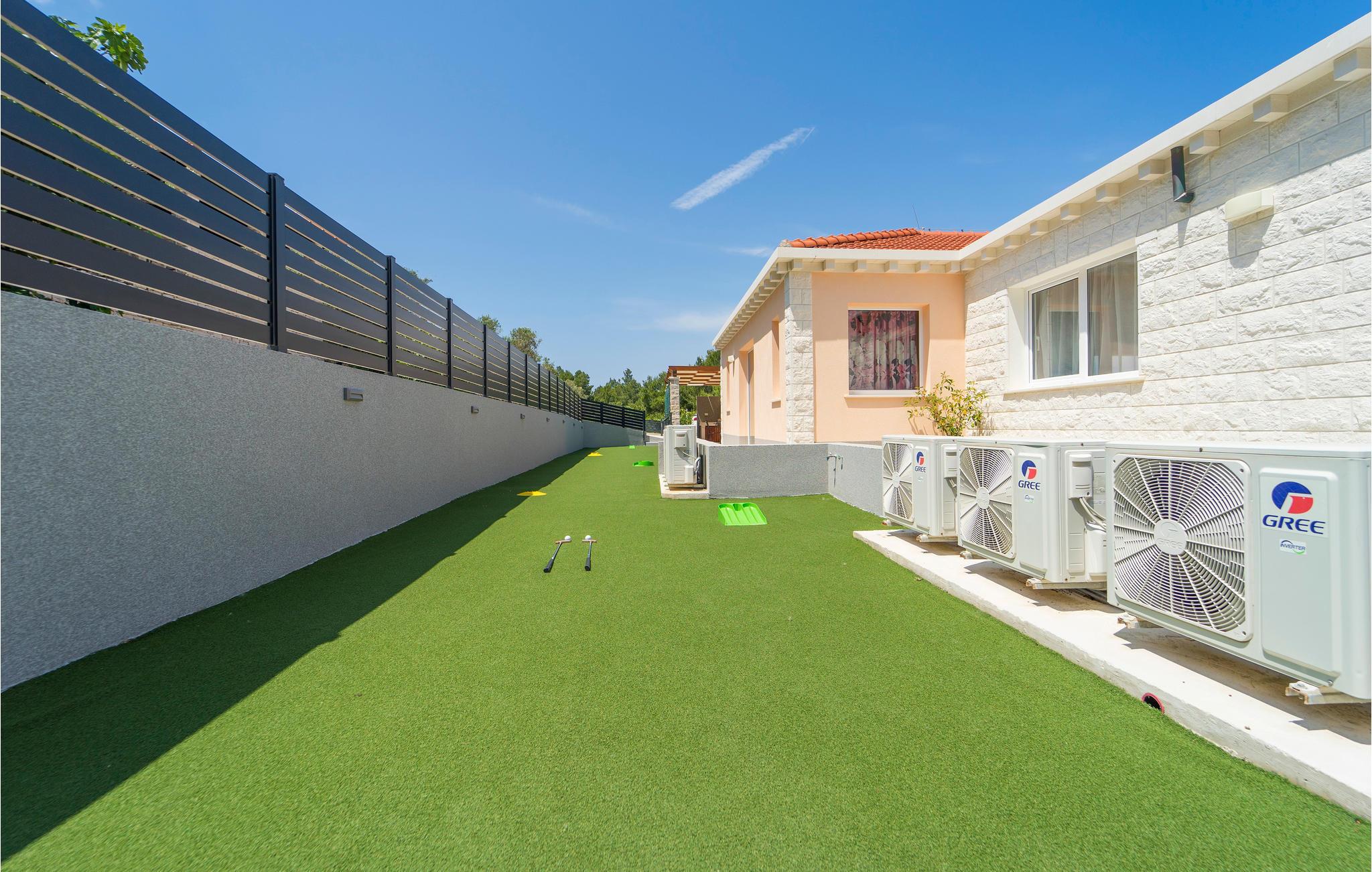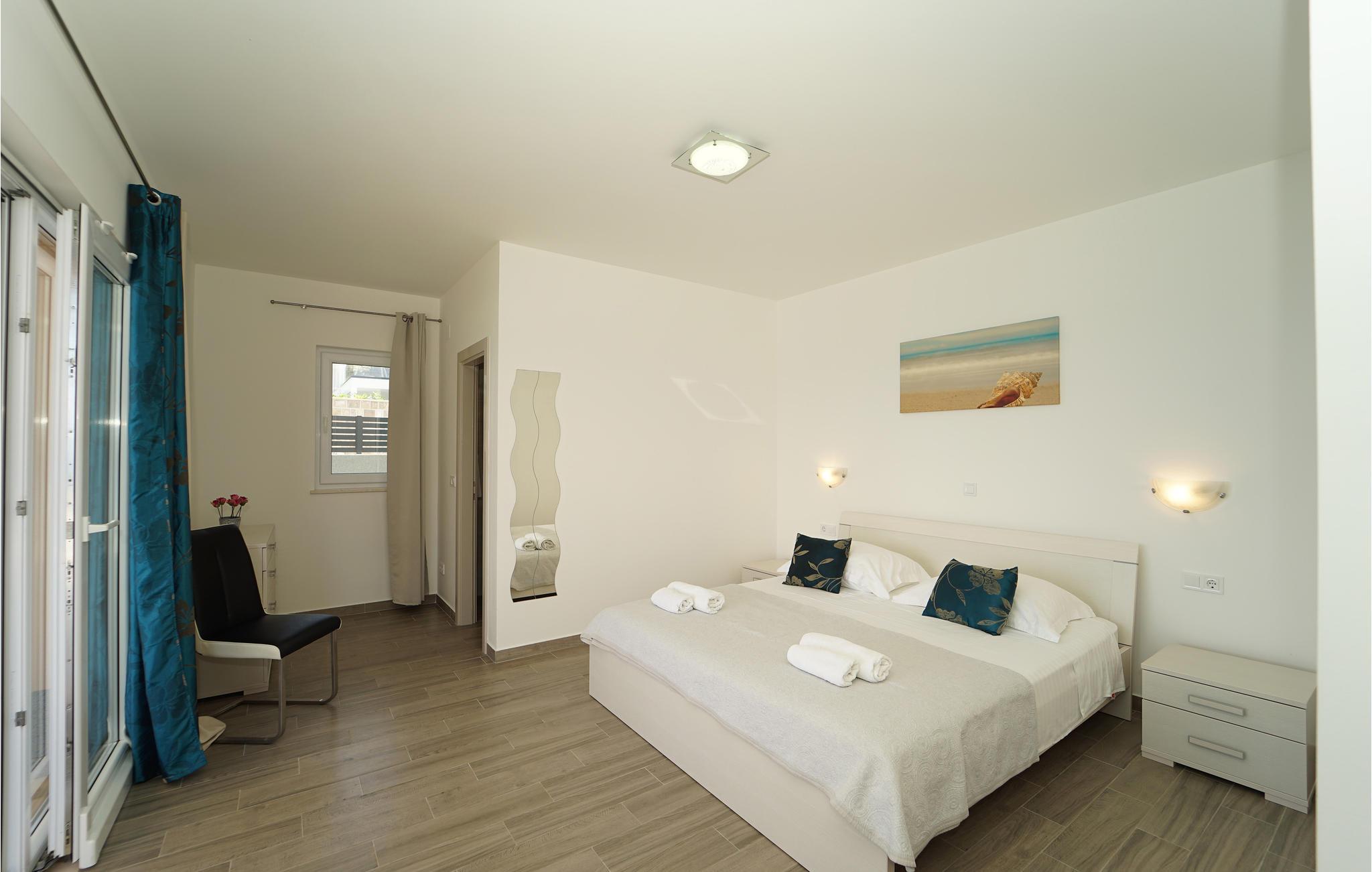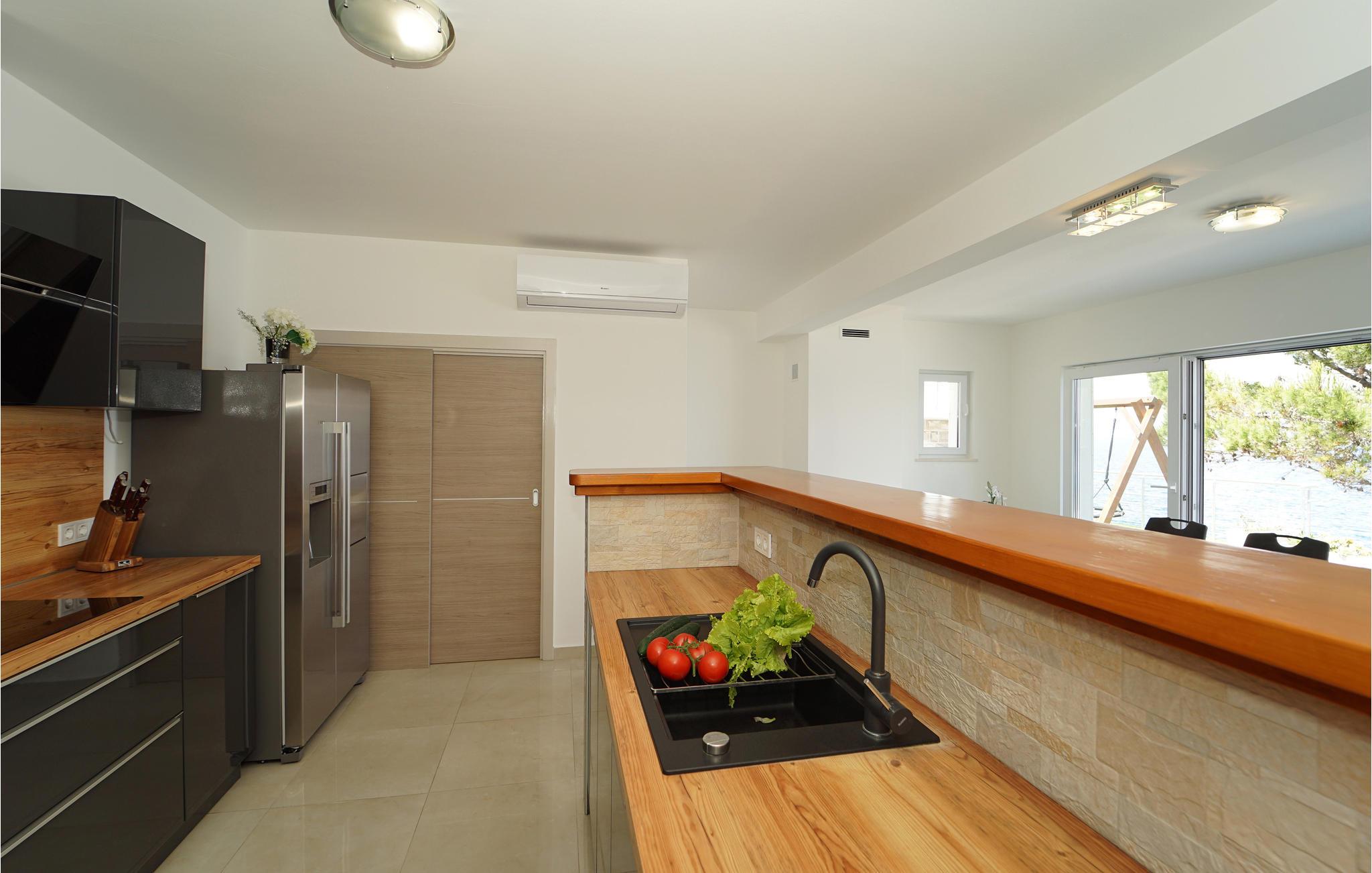 Tilbring jeres ferie i Middeldalmatien, på den fabelagtige ø Korcula, som I kan nå fra fastlandet fra færgehavnene i f.eks. Split eller Dubrovnik. Dette moderne feriehus med fantastisk beliggenhed ved havet, er jeres chance for en helt unik oplevelse. De rummelige værelser er stilfuldt indrettet og med al udstyr for en hyggelig ferie. Huset byder komfort med 4 soveværelser, en åben opholdsstue og 4 badeværelser. Der er et rum med videospil og der er også et fitnessrum til rådighed. Nud den dejlige panoramaudsigt, mens I bader i poolen, eller forbereder en romantisk middag på terassen med grill. Feriehuset er børnevenligt og perfekt egnet til en ferie med hele familien. Til de mindste er der en stor sandkasse, en rutsjebane og en gynge. Vi er sikker på, at I vil tage mange dejlige billeder med hjem herfra, af selskaber ved poolen eller ved grillen, dage ved havet, konkurrencerne i bordtennis eller billard og måske frisk fanget fisk. Udenfor denne oase er øen Korcula det perfekte sted for at gå på opdagelse i naturen, restauranterne og nattelivet. Betagende landskab med skøn natur og det behagelige mediterrane klima venter jer her og gør, at I virkelig kan slappe af. Oplev duften af pinjeskoven og nyd den mediterrane atmosfære. Besøg også de andre byer på øen, såsom Blato, Vela Luka eller den lille by Prigradica. Byen Korpula er den verdenskendte opdagelsesrejsende og sømand Marco Polos fødested, derfor er der et Marco Polo museum i byen. 300 m grusvej fører til huset.