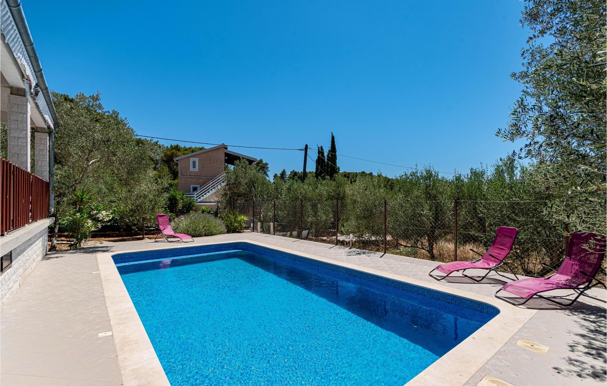Dette lille hus er omgivet af oliventræer og har en stor, overdækket terrasse med grillplads. Huset er indrettet med komfortable møbler, har to soveværelser og en stue der er kombineret med køkkenet og med udgang til terrassen hvor den store pool ligger. På varme sommerdage kan I tage en dukkert i det klare havvand i bugten Gradina eller gå lange spadsereture. I bugten er der gode fiskerestauranter med mange lækre specialiteter. Tag på udflugter på øen, der er kendt som Marco Polos fødeø.