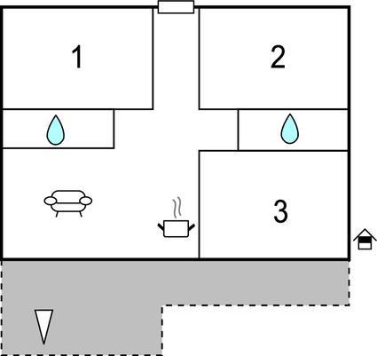 Badeværelse 6m2 (nr. 1) - WC. Varmt og koldt vand. Bruser