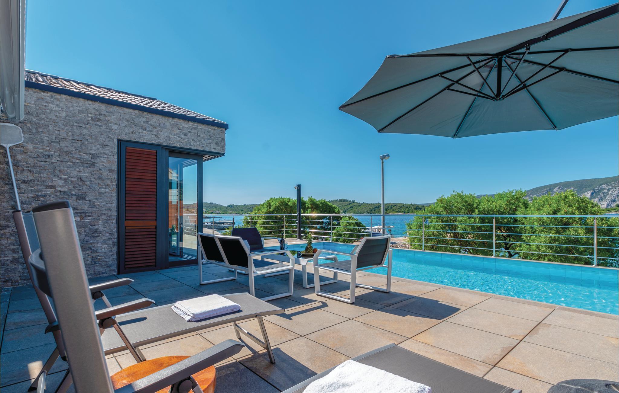 Dette skønne feriehus med pool ligger næsten lige ud til en stenstrand og er en drøm for alle, der vil holde ferie ved Middelhavet.