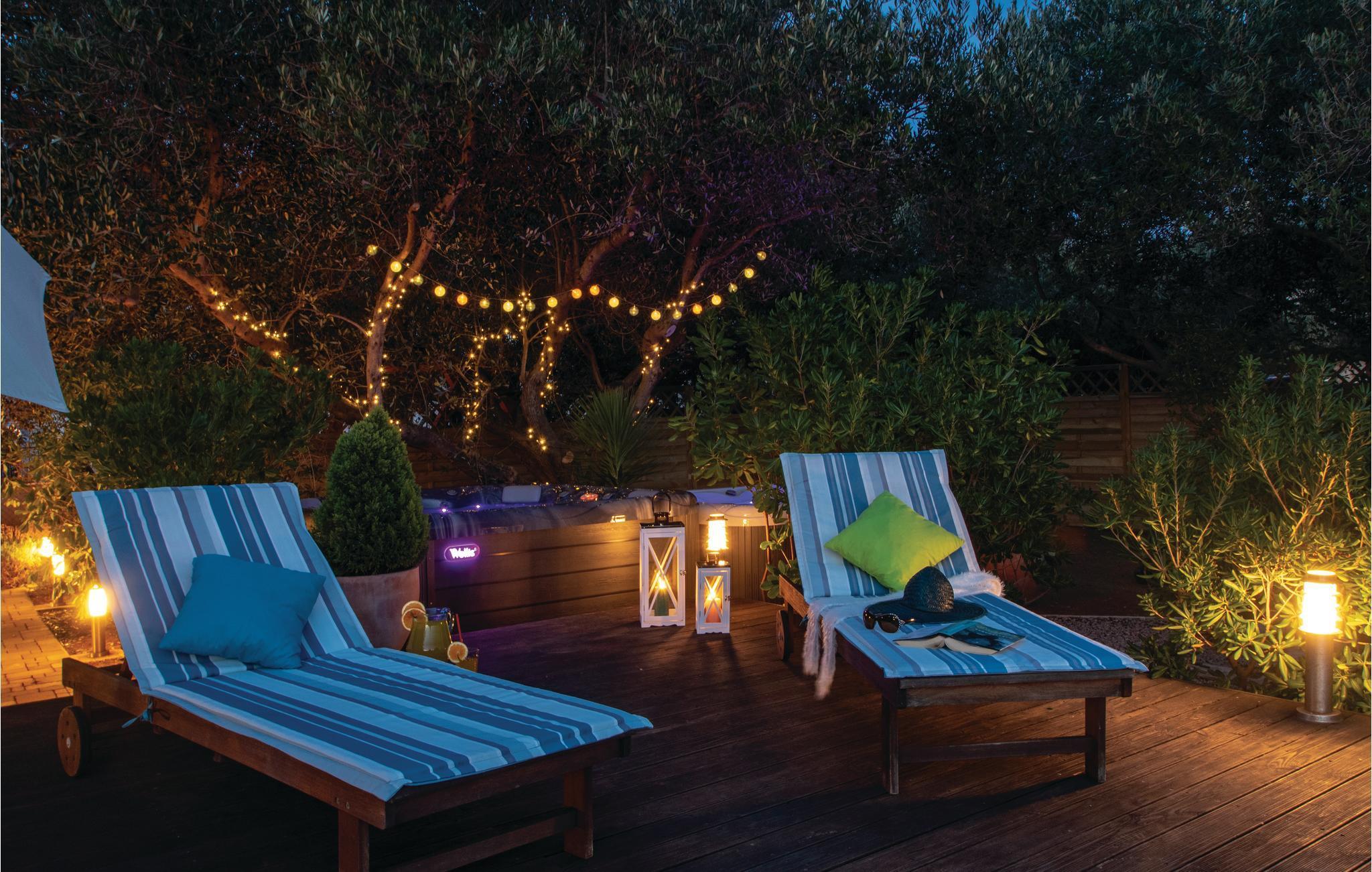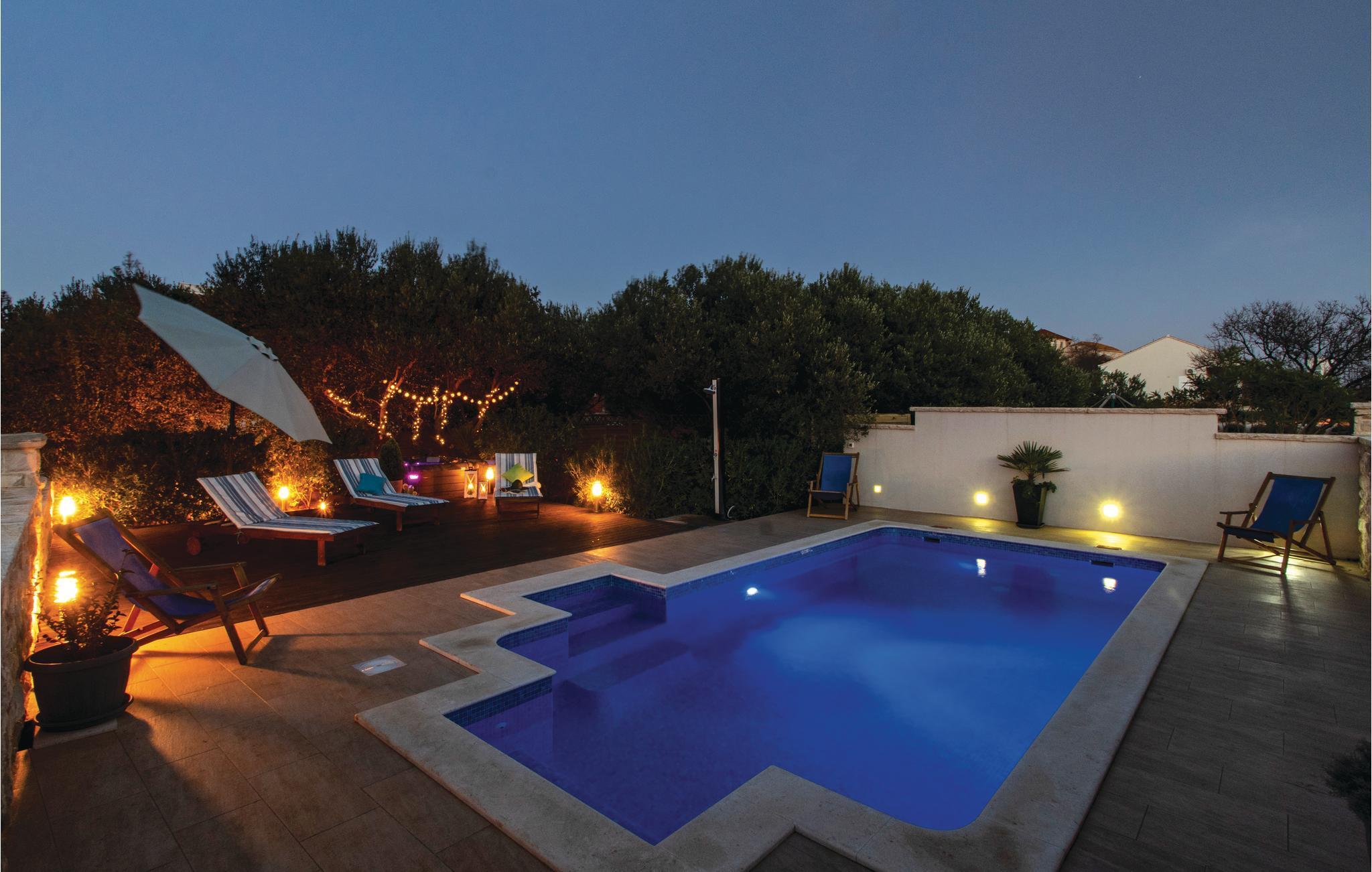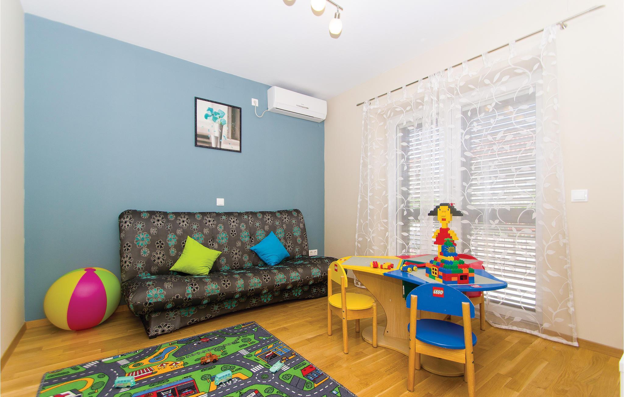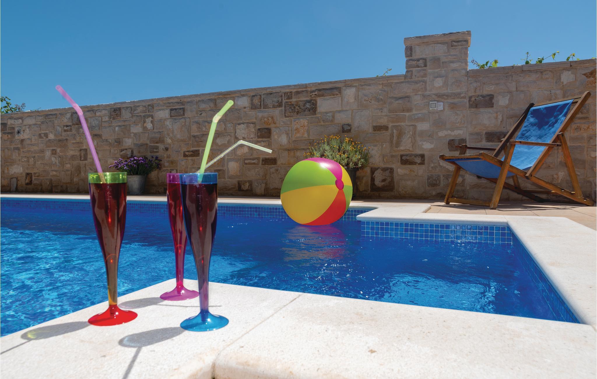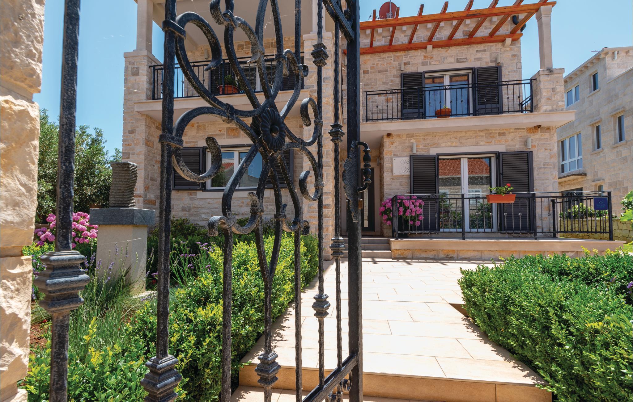 Ved det sydlige Adriaterhav, på den idylliske ø Korcula ligget dette funktionelt indrettede feriehus. I den indhegnede have, der er på hele 1000 m², ligger en pool og forskellige legeredskaber til familiens børn. Her venter jer desuden et velgørende boblebad i whirlpoolen hvor der er plads til tre personer. Huset fordeler sig på flere etager: souterrain, stueetage, første sal og tagetage. Tagetagen med to soveværelser har en laveste loftshøjde på 40 cm. Ud over ialt 6 soveværelser er her også køkken, stue, spisestue, badeværelse og fællesrum, mens I finder et poolbord og en dartskive i souterrain. Et perfekt valg til en ferie med hele gruppen af venner eller storfamilien, her kan I slappe af, tage et venskabeligt spil pool eller samles på terrassen mens de friske fisk sender lokkende dufte fra grillen hvor de hurtigt bliver færdig til servering. Øen Korcula er et elsket rejsemål pga sine klippekyster med mange romantiske ensomme bugter og det krystalblå hav. I skal I hvert fald sætte en del af ferien af til at udforske øen der gør meget for at bevare sine smukke bygninger og vie eksempler på en lang og spændende historie. Især er ridderturneringerne i Morska populære, pga sin professionelle og historisk korrekte udførelse. Besøg øen, nyd den rene og betagende natur og det milde klima og smag på de mange gastronomiske specialiteter. På øens nordside ligger byen med samme navn som øen: Korcula. Den er berømt for sin gamle bydel der er bygget i form af et fiskeben. Her er der meget at se og deltage i hele sommeren.
