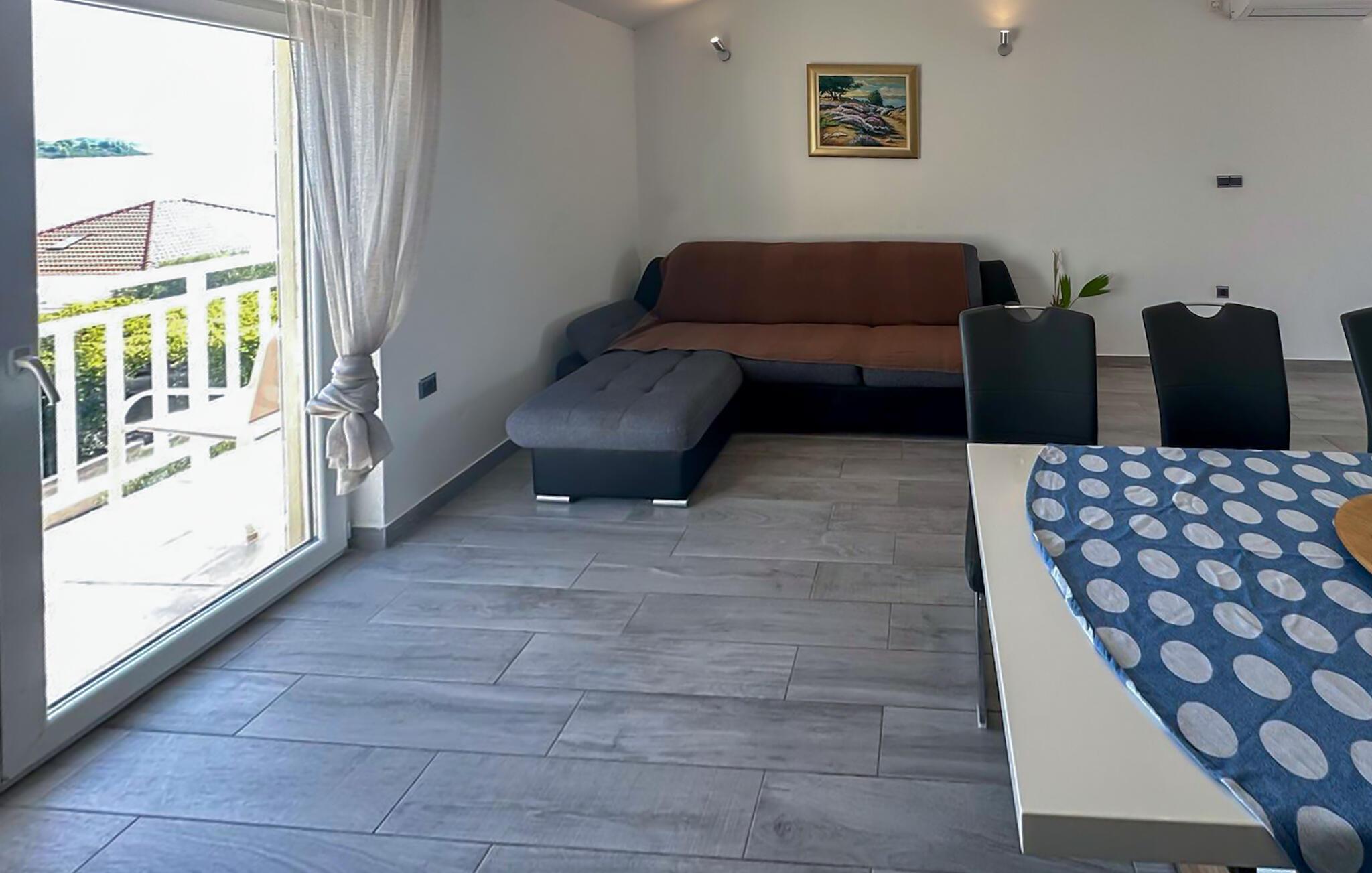 Nyd et vidunderligt ophold i denne ferielejlighed med panoramaudsigt over havet. Denne lejlighed byder jer velkommen med en lys og indbydende atmosfære. Masser af naturligt lys strømmer ind gennem altandøren og tilbyder en smuk udsigt. Hyg jer til en afslappende filmaften, eller lav mad sammen i det moderne, fuldt udstyrede køkken. Et særligt træk ved denne lejlighed er brændeovnen, perfekt til oplysning på kølige aftener. Gå ud på altanen som det første om morgenen med en duftende kop kaffe og nyd den fantastiske udsigt over havet og de bølgende grønne bakker. Nyd en afslappet morgenmad på terrassen, omgivet af oliventræer. Nyd den særlige atmosfære i middelhavslandskabet og den milde havbrise. Fordyb jer i jeres ferielæsning, eller slap blot af. Tag en kort gåtur til stranden og svøm i det krystalklare vand. Udforsk den charmerende landsby, der er kendt for sin hvide græske vin og sin afslappede middelhavslivsstil. Fra havnen kan I nemt nå den gamle bydel i Korcula, hvor historie, kultur og dalmatisk livsstil forenes på en smuk måde.