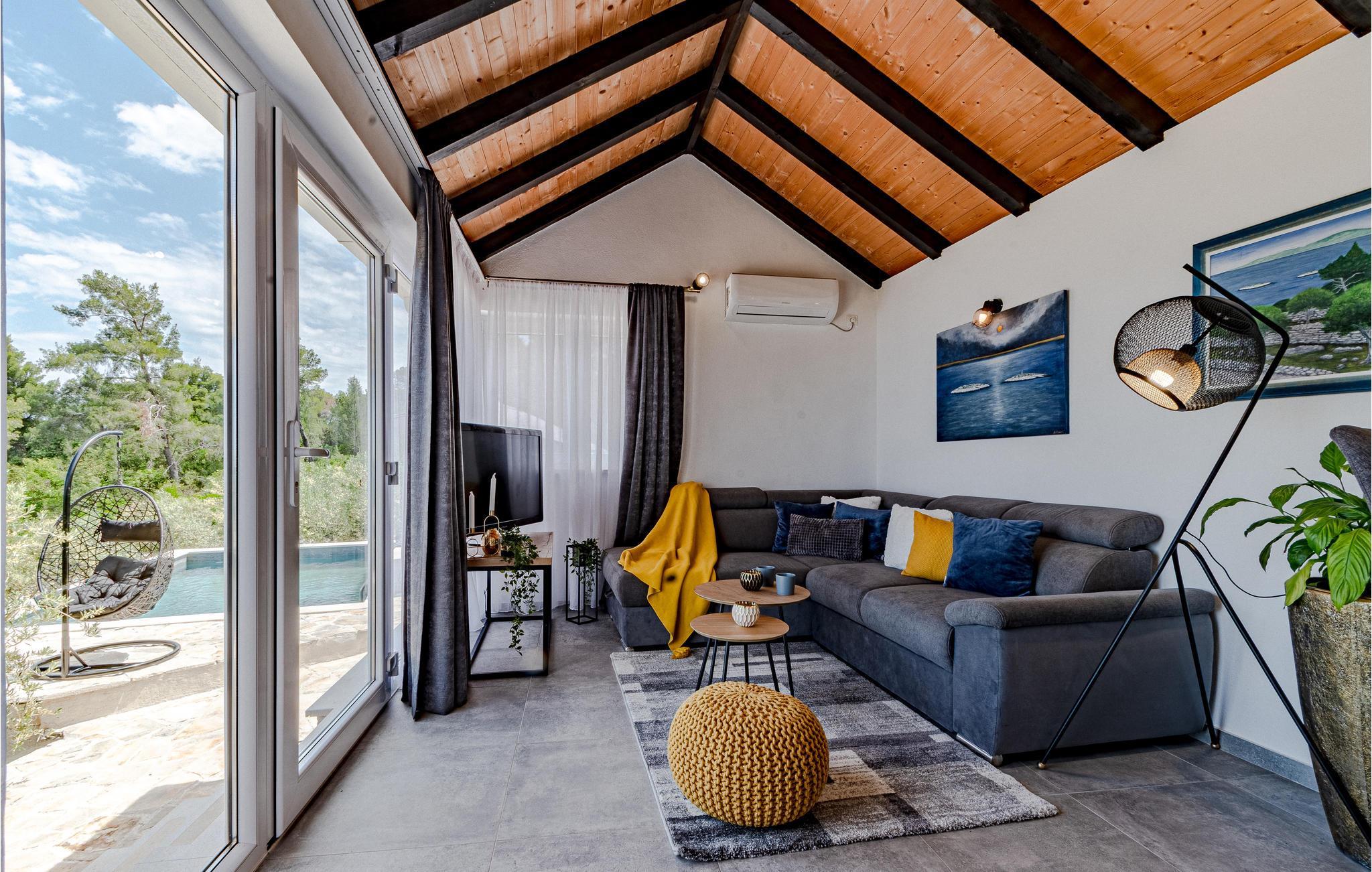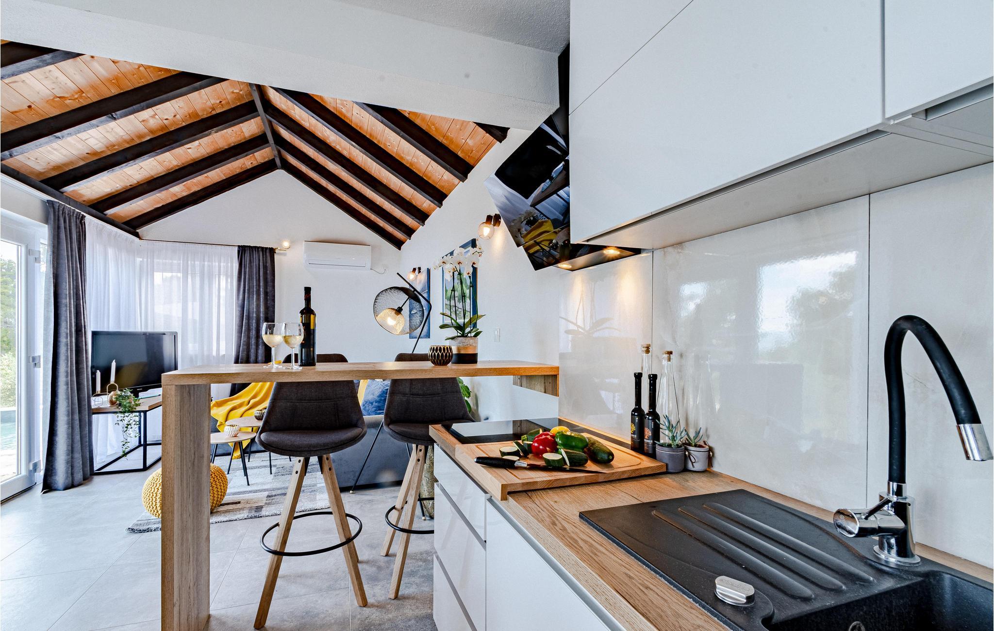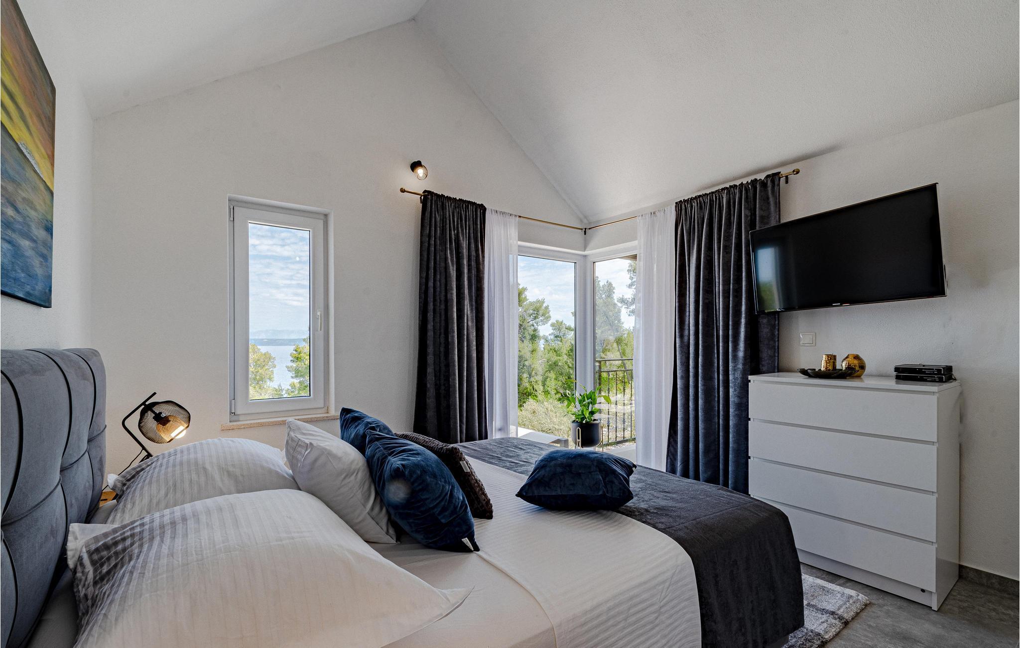 Dette fortryllende feriehus venter sine gæster i en afsides beliggenhed på en bakke, og tilbyder en vidunderlig panoramaudsigt over havet. Der er et soveværelse med en dobbeltseng og yderligere 2 senge i stuen, så i alt 4 personer kan tilbringe en afslappende ferie her.