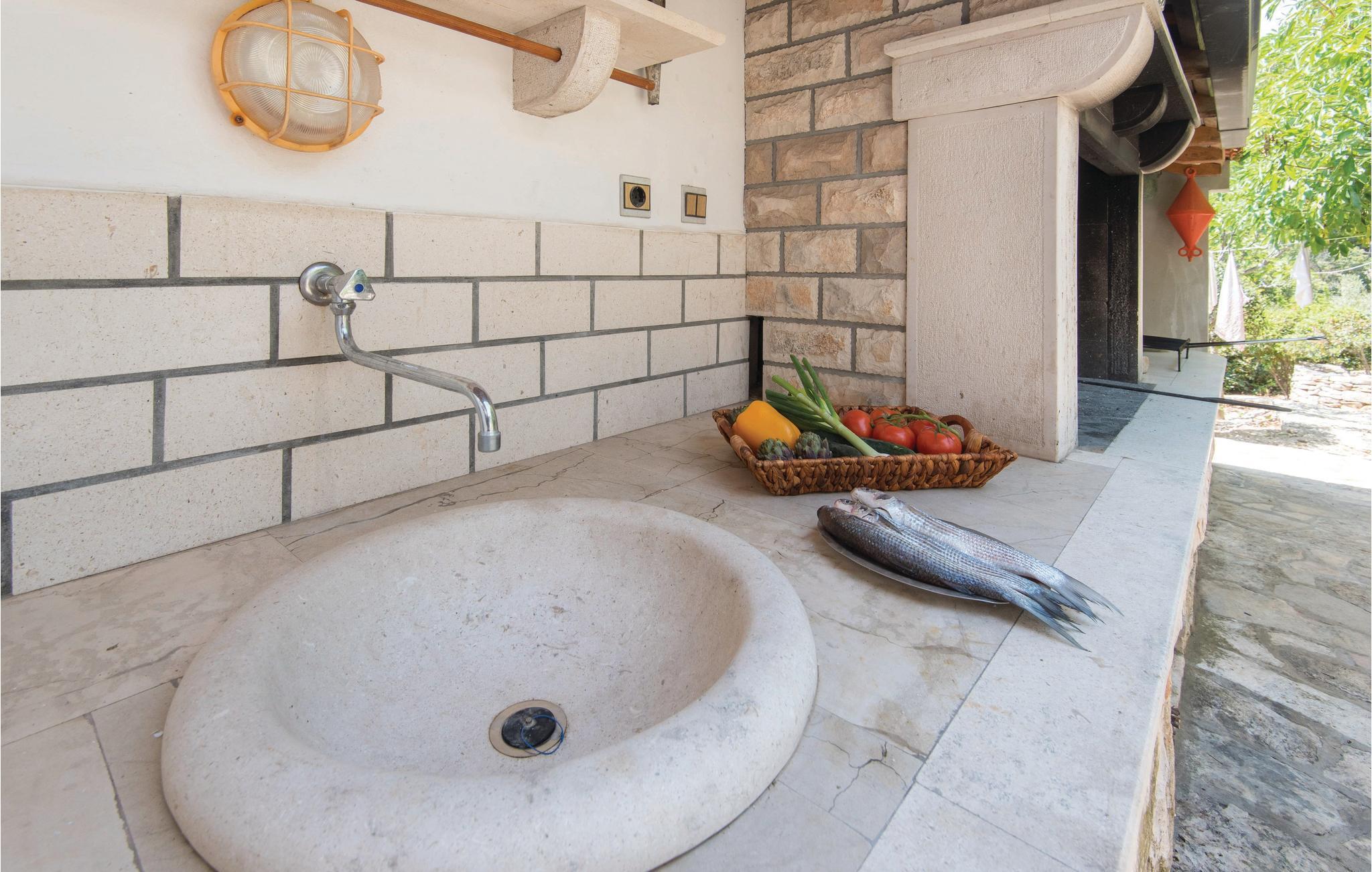Dette hyggelige feriehus ligger kun få skridt fra den smukke kiesstrand med en udendørs pool, hvor I kan slappe af.