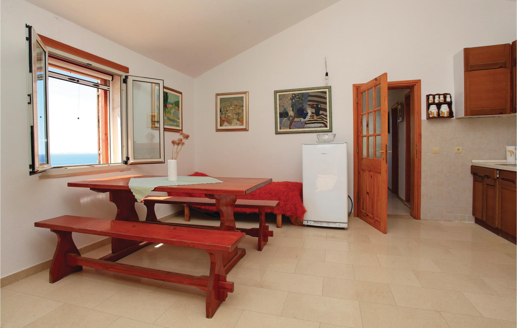 Et traditionelt, lille feriehus der venter på jer med en idyllisk beliggenhed på en skråning. Fra huset har I en enestående panoramaudsigt over havet og øerne Mljet og Lastovo, og nu kan ferien rigtig begynde. Få hundrede meter videre når I den naturlige klippestrand og noget længere væk bugten ved Orlandusa med dens krystalklare vand.