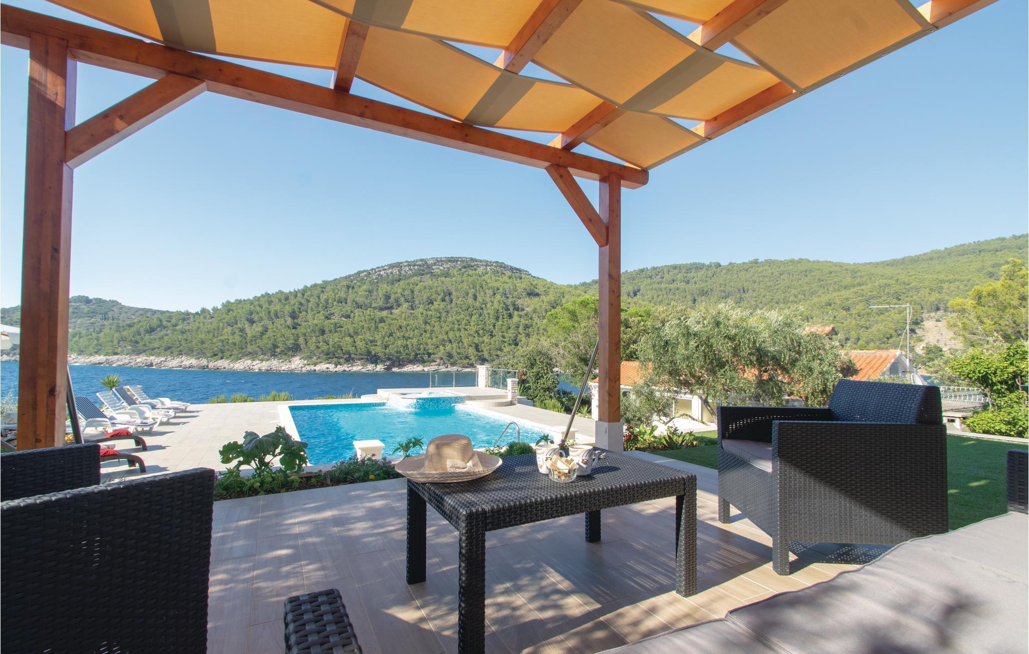 Huset ligger i Poplat-bugten, hvor I er omgivet af fuglekvidder og cikadernes sang. Nedgangen til stranden og havet er ikke særlig stejl. Nyd roen og det skønne vejr fra huset dejlige terrasse.
