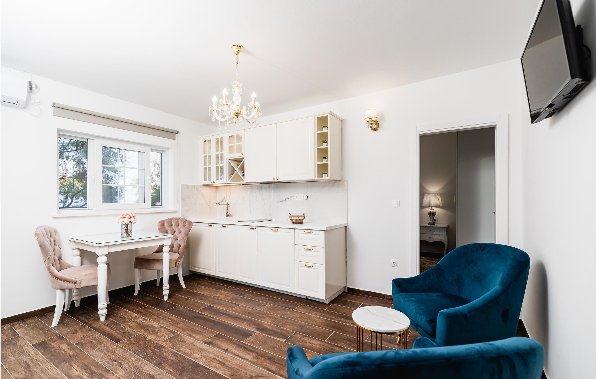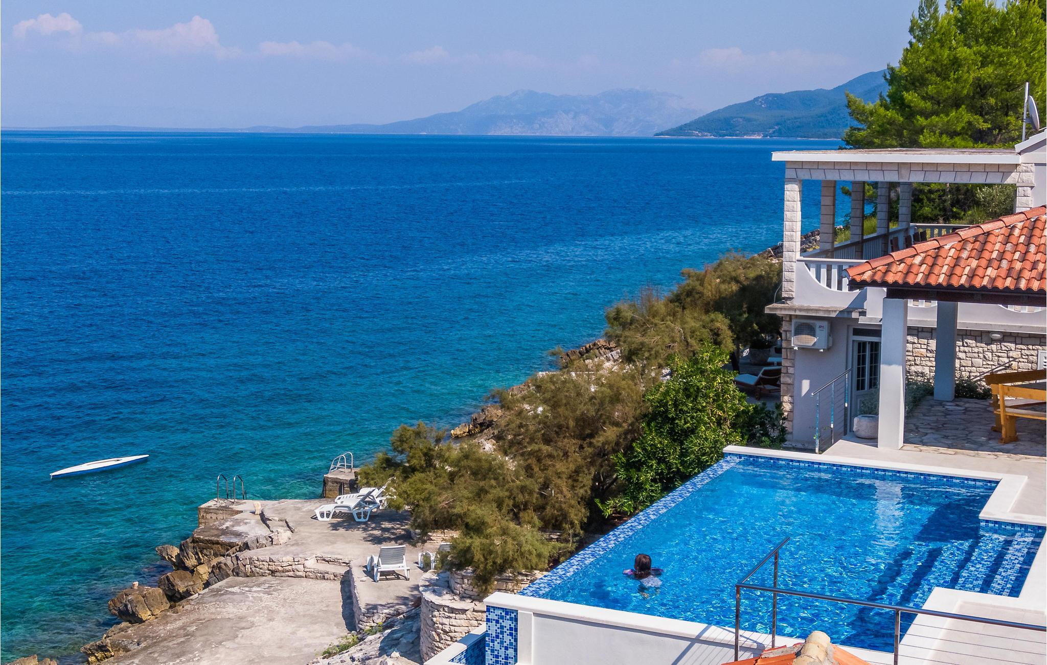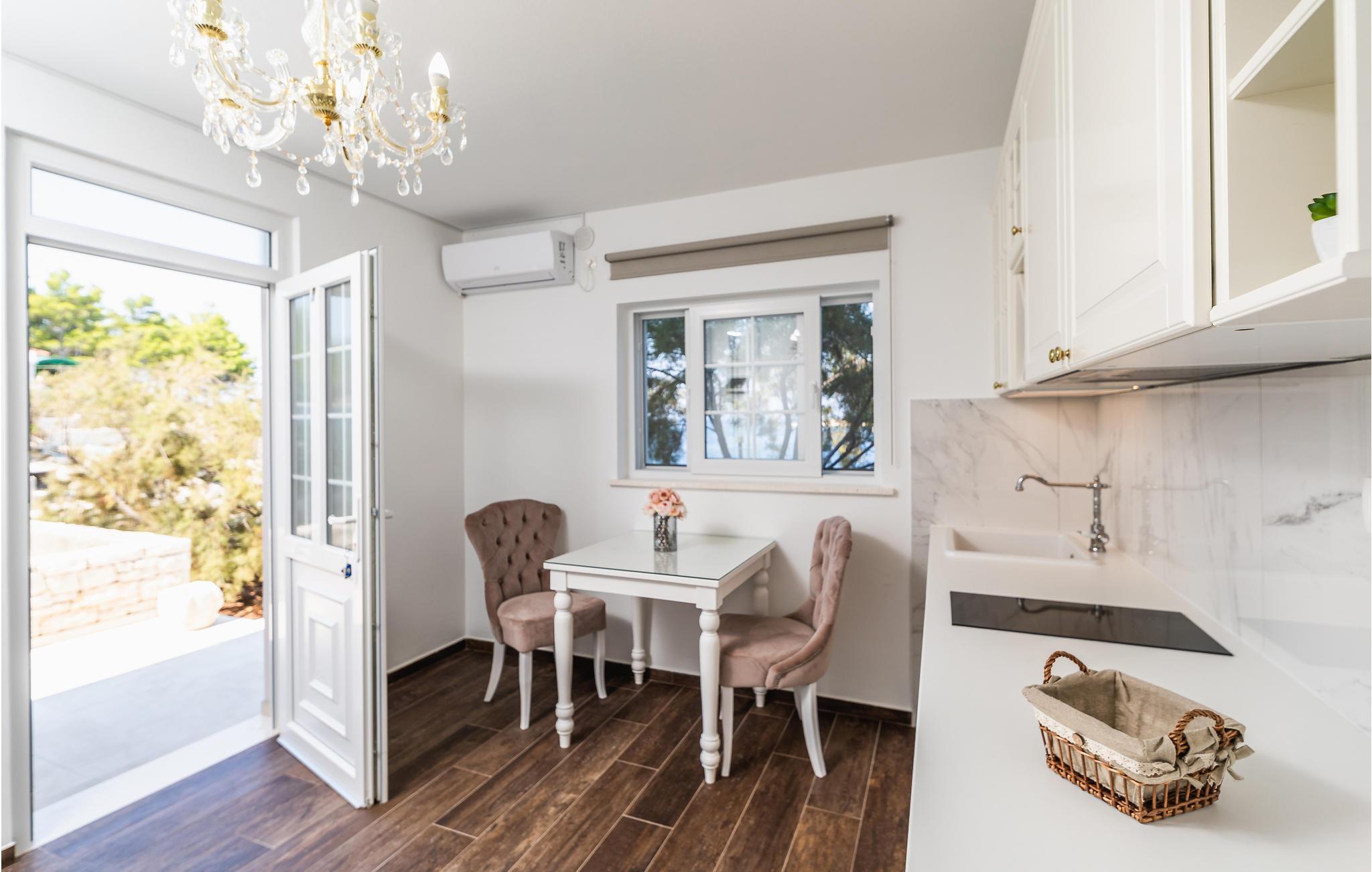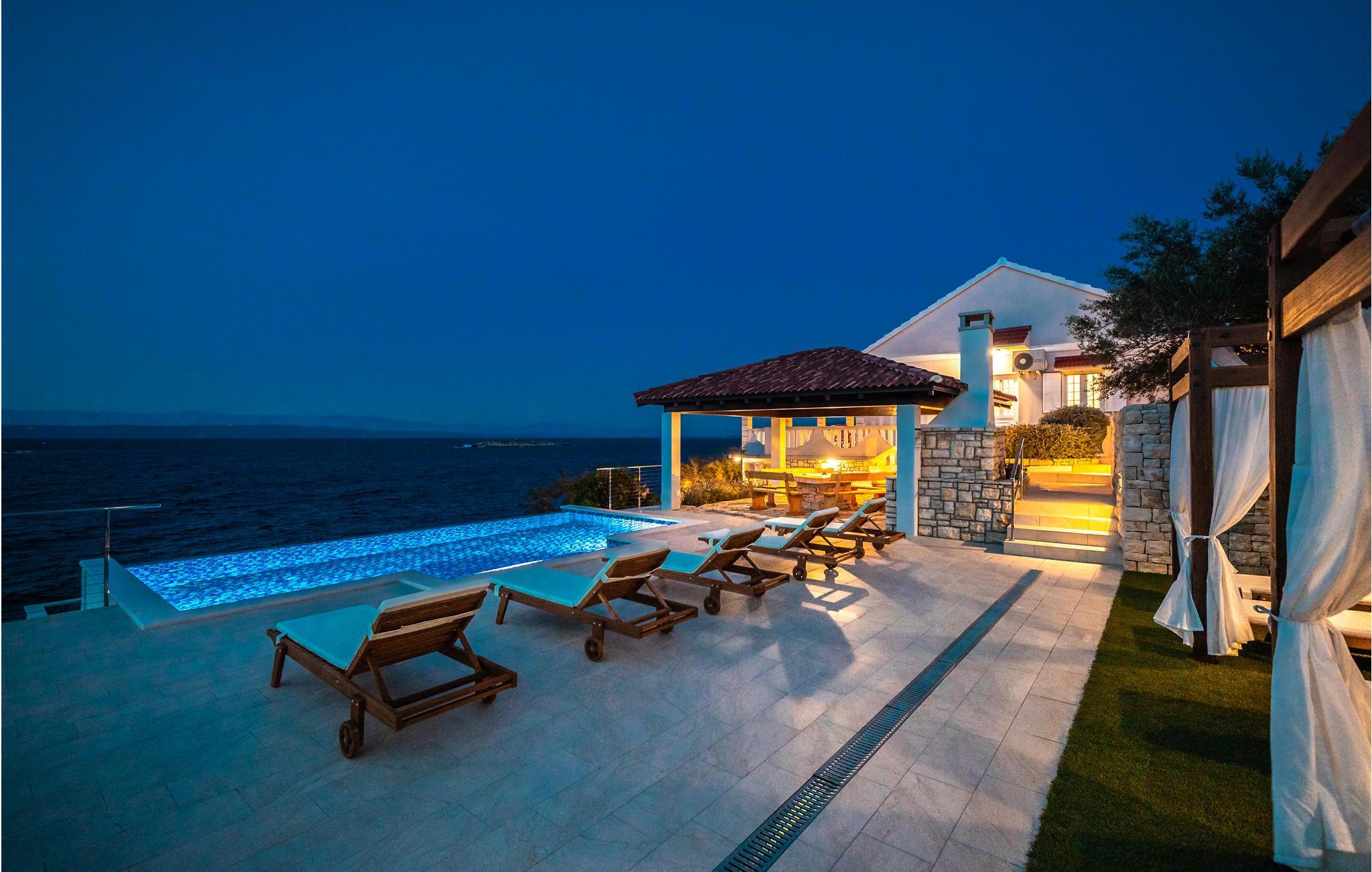 Dette smukke feriehus med pool ligger ved strandpromenaden, ikke langt fra øen Naplovci. Helt perfekt til familier med børn, der vil bo i stilfulde omgivelser, der gerne vil bo tæt ved havet, hvor der kan fiskes, surfes og dykkes. De to enheder er forbundet med udendørs indgange. To af dem er med to soveværelser og er på samme niveau som den overdækkede terrasse, mens lejligheden med et soveværelse ligger i stueetagen. På første sal er en terrasse med grill og infinity-pool med udsigt over Naplovciøerne. I stueetagen er der et motionscenter og en lounge med spillekonsol og SmartTV. Foran huset er der et betonplateau, her står grillen og her er det oplagt at tage solbad. Tal med ejer, som mod betaling kan arranger udflugter til de omkringliggende øer og massage på stedet.