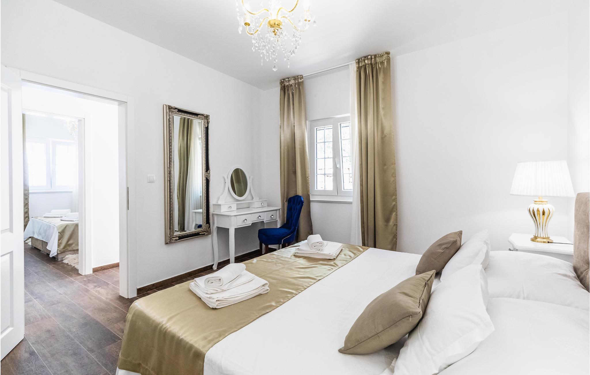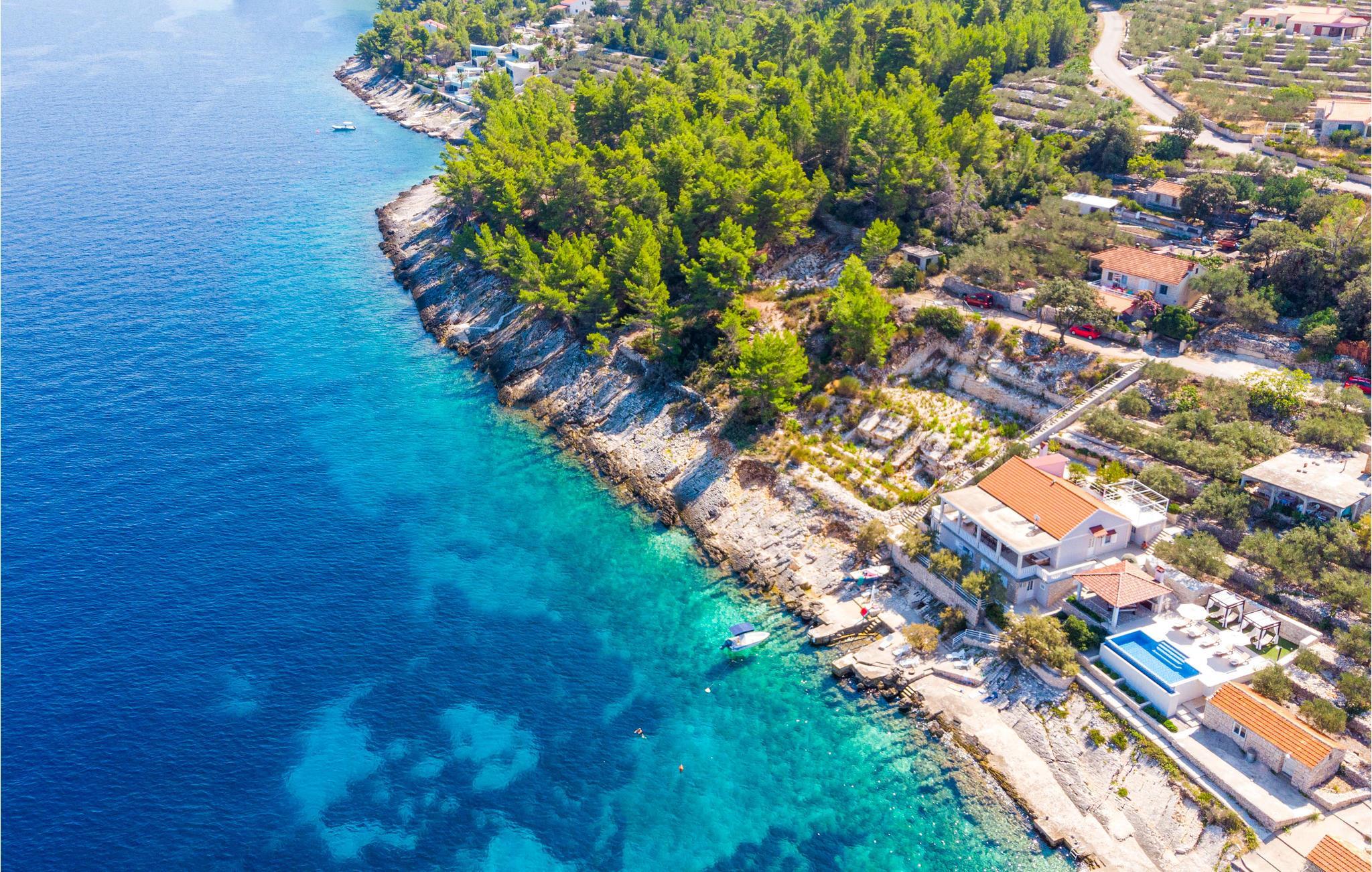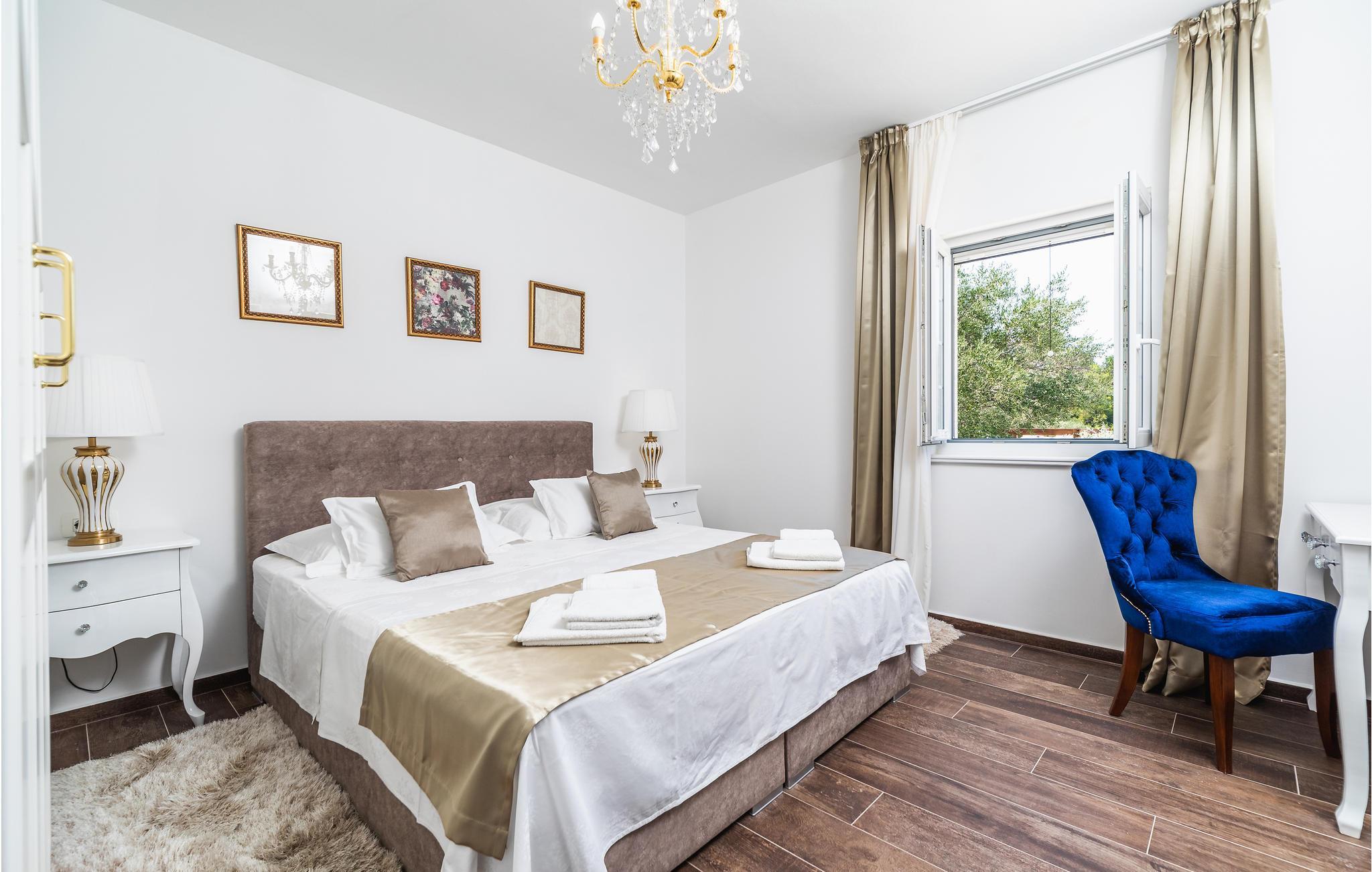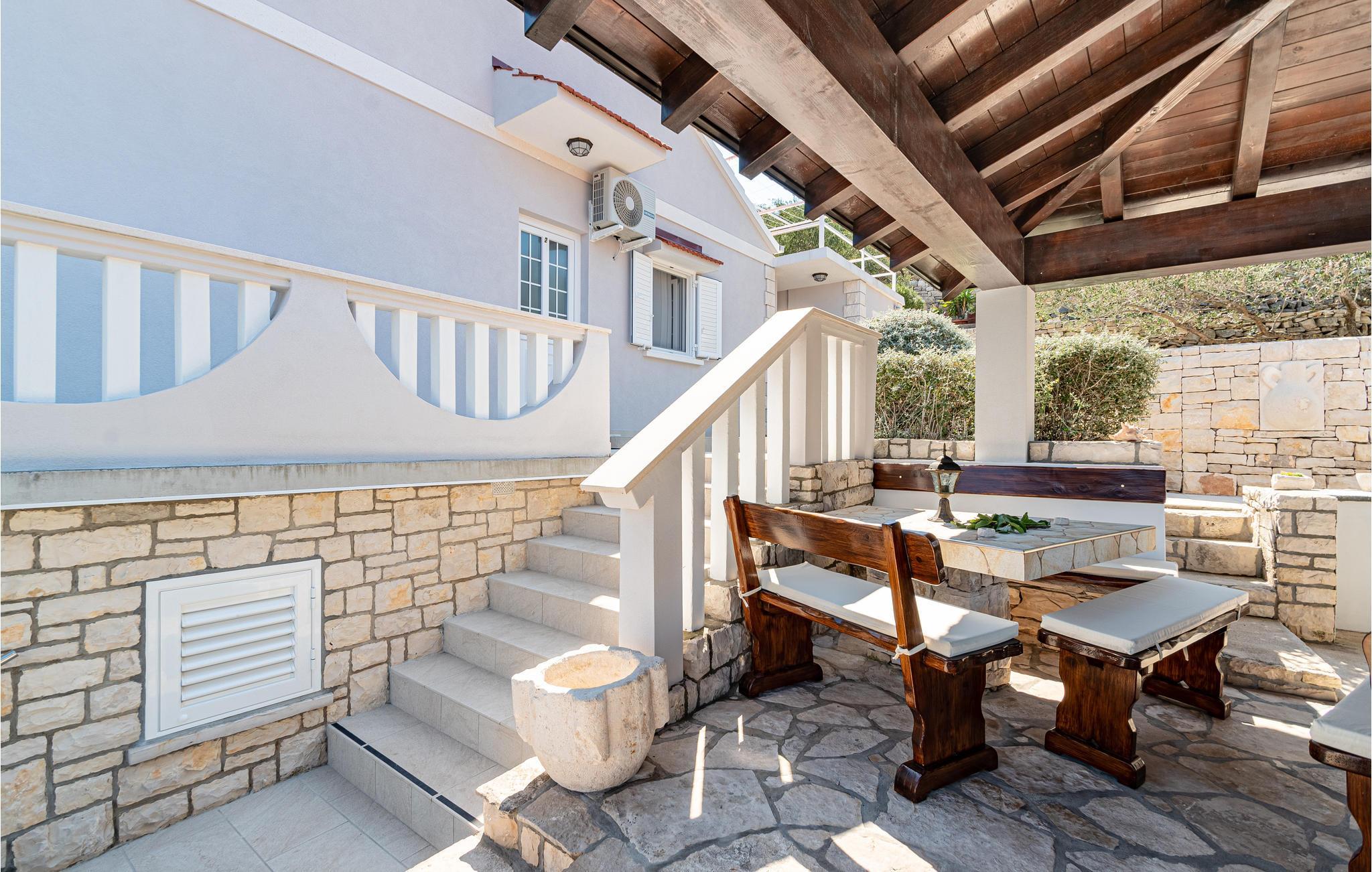 Dette smukke feriehus med pool ligger ved strandpromenaden, ikke langt fra øen Naplovci. Helt perfekt til familier med børn, der vil bo i stilfulde omgivelser, der gerne vil bo tæt ved havet, hvor der kan fiskes, surfes og dykkes. De to enheder er forbundet med udendørs indgange. To af dem er med to soveværelser og er på samme niveau som den overdækkede terrasse, mens lejligheden med et soveværelse ligger i stueetagen. På første sal er en terrasse med grill og infinity-pool med udsigt over Naplovciøerne. I stueetagen er der et motionscenter og en lounge med spillekonsol og SmartTV. Foran huset er der et betonplateau, her står grillen og her er det oplagt at tage solbad. Tal med ejer, som mod betaling kan arranger udflugter til de omkringliggende øer og massage på stedet.