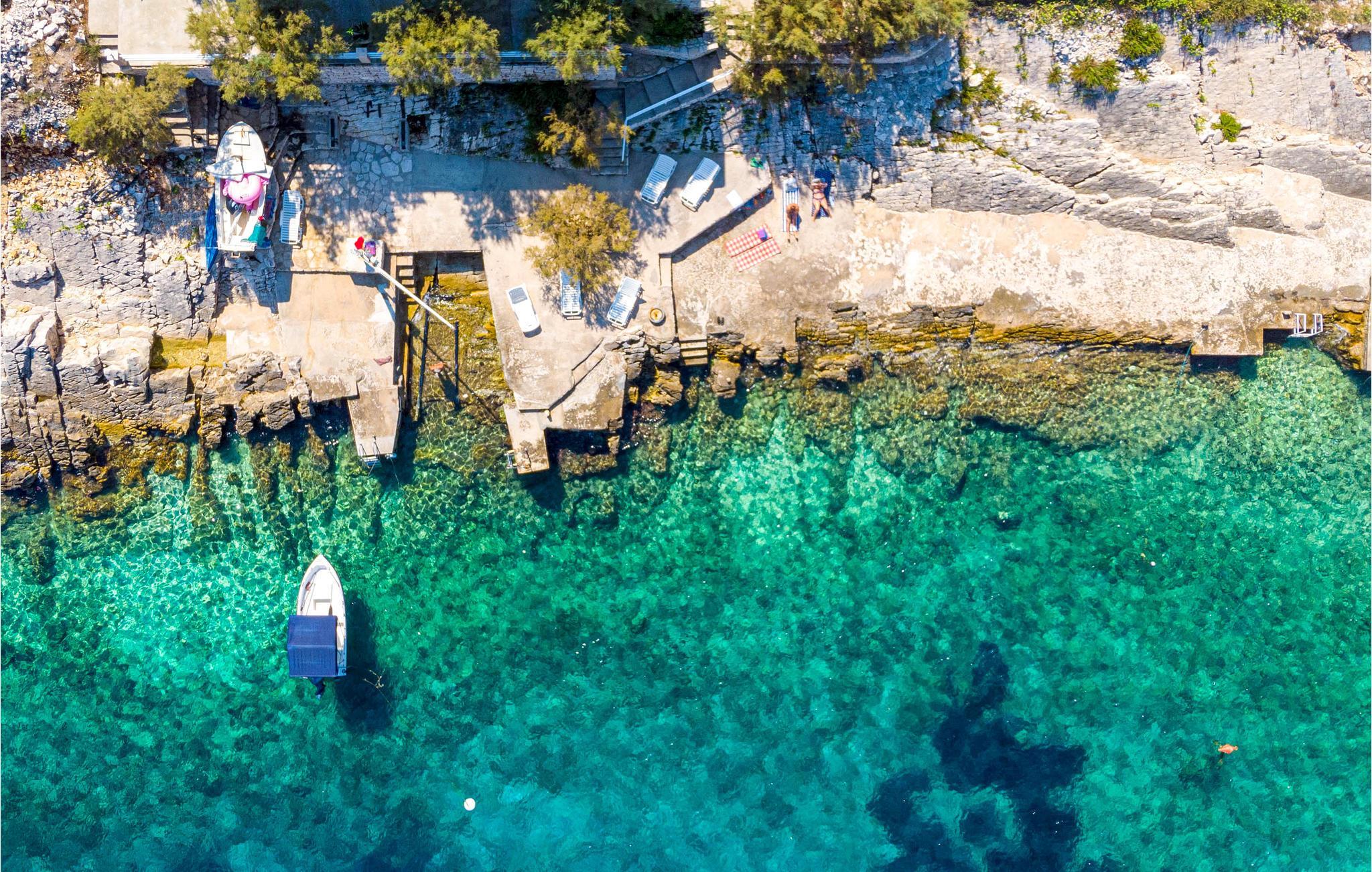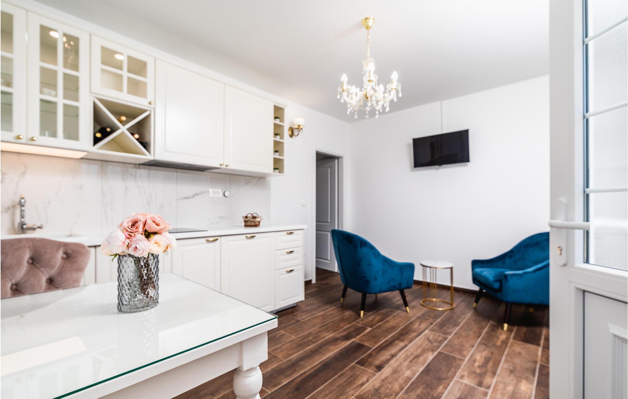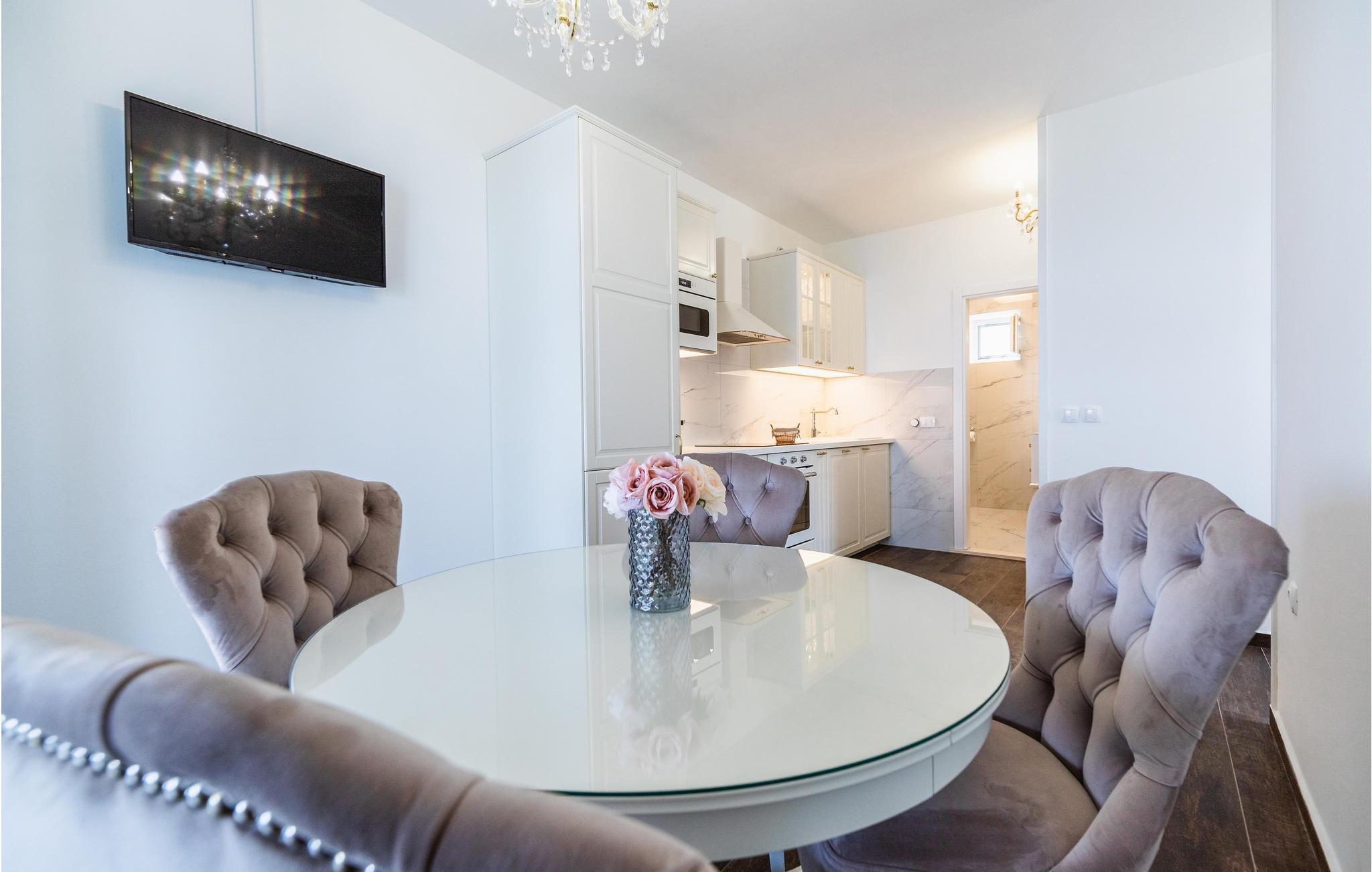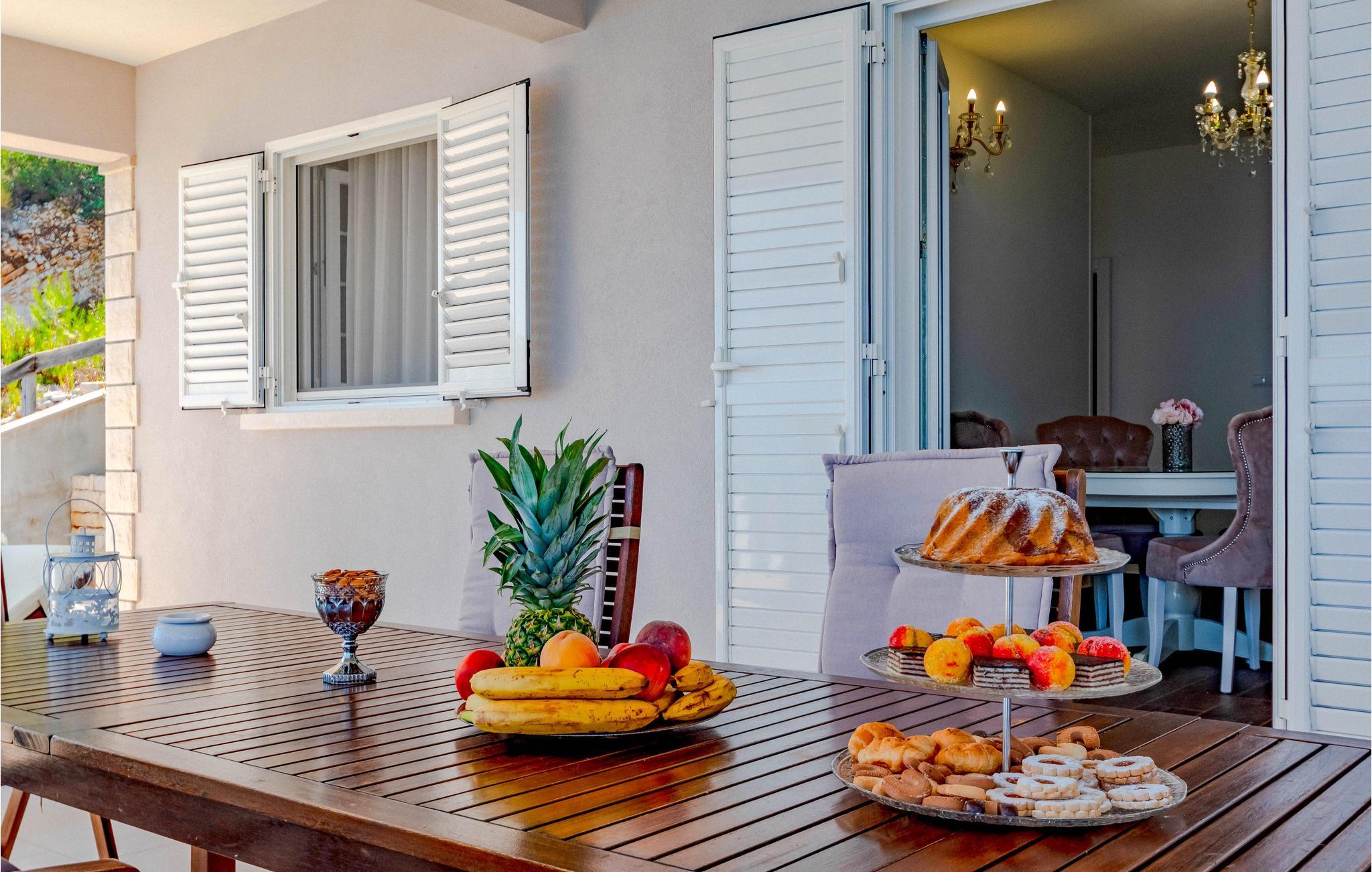 Dette smukke feriehus med pool ligger ved strandpromenaden, ikke langt fra øen Naplovci. Helt perfekt til familier med børn, der vil bo i stilfulde omgivelser, der gerne vil bo tæt ved havet, hvor der kan fiskes, surfes og dykkes. De to enheder er forbundet med udendørs indgange. To af dem er med to soveværelser og er på samme niveau som den overdækkede terrasse, mens lejligheden med et soveværelse ligger i stueetagen. På første sal er en terrasse med grill og infinity-pool med udsigt over Naplovciøerne. I stueetagen er der et motionscenter og en lounge med spillekonsol og SmartTV. Foran huset er der et betonplateau, her står grillen og her er det oplagt at tage solbad. Tal med ejer, som mod betaling kan arranger udflugter til de omkringliggende øer og massage på stedet.