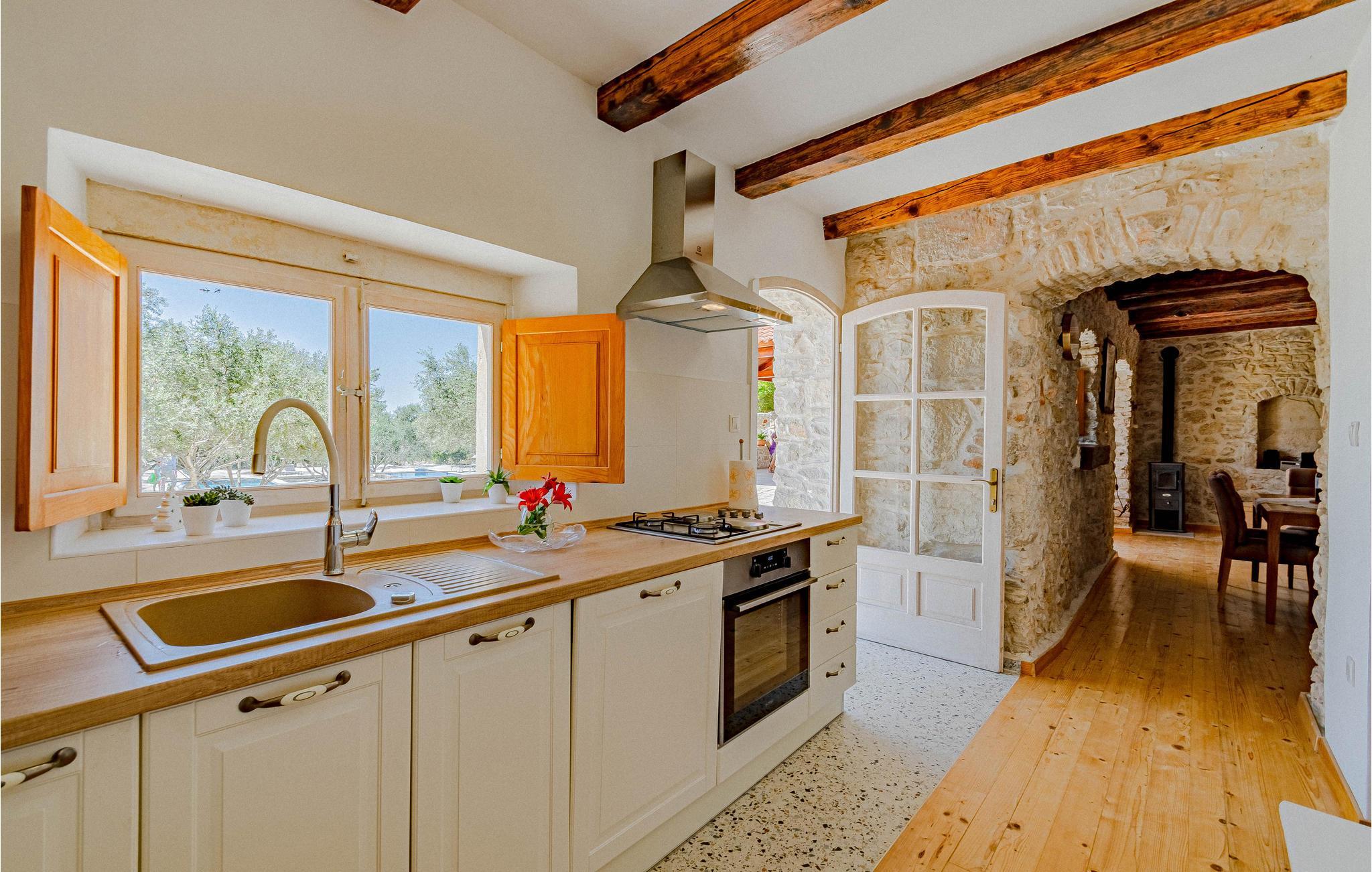 Træd ud af opholdsområdet og ud på terrassen, nyd naturens nærhed, den skønne udsigt over landskabet og start dagen med en dukkert i poolen. Tilbered et lækkert måltid herude, mens børnene leger tilfredse.