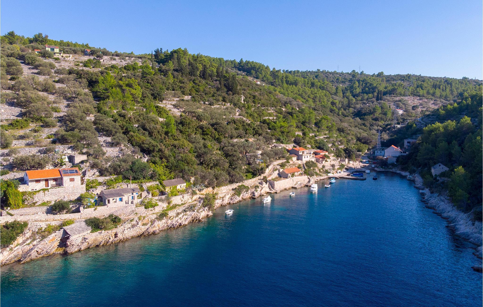 Dette feriehus befinder sig langt væk fra trafikkens larm og lige ved havet i Prapatna-bugten. Fra terrassen er der en uforglemmelig udsigt over øen Hvar og Korcula-Kanalen. Huset består af to dele, der er forbundet med en udendørs trappe. I stueetagen er der et værelse med køkken og bad. Bilen kan parkeres 150 m fra huset. Huset forsynes udelukkende med strøm fra solenergi (12 volt strøm). Ejeren inviterer gerne på en bådudflugt til den lille ø Proizd (mod betaling). Øen Proizd er en lille ø som tilhører øgruppen Vela Luka, som er kendt for sine smukke strande og krystalklare vand.