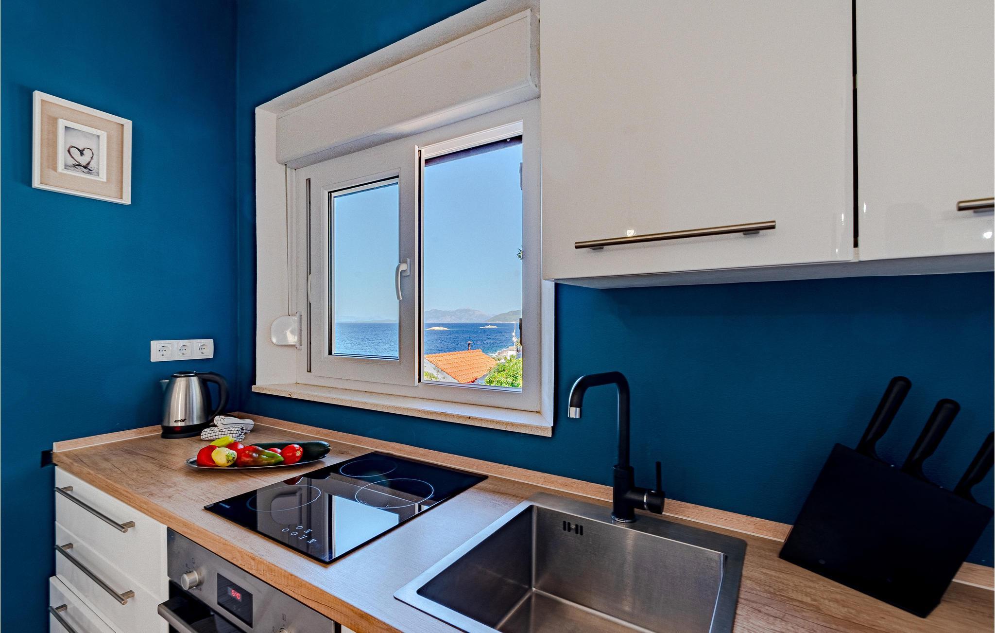 Denne hyggelige lejlighed har plads til fire personer og er godt indrettet. I kan ikke mindst glæder jer til terrassen og den vidunderlige havudsigt. Her kan I begynde dagen med en lækker morgenmad og nyde et glas vin sidst på dagen.