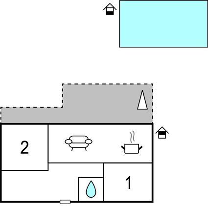 Gæsterne har fælles adgang til en pool, hvor du kan få en kold dukkert, og en stor overdækket terrasse, hvor du kan hygge dig med mad fra grillen, en kulørt drink med paraply og familien samt vennernes selskab.