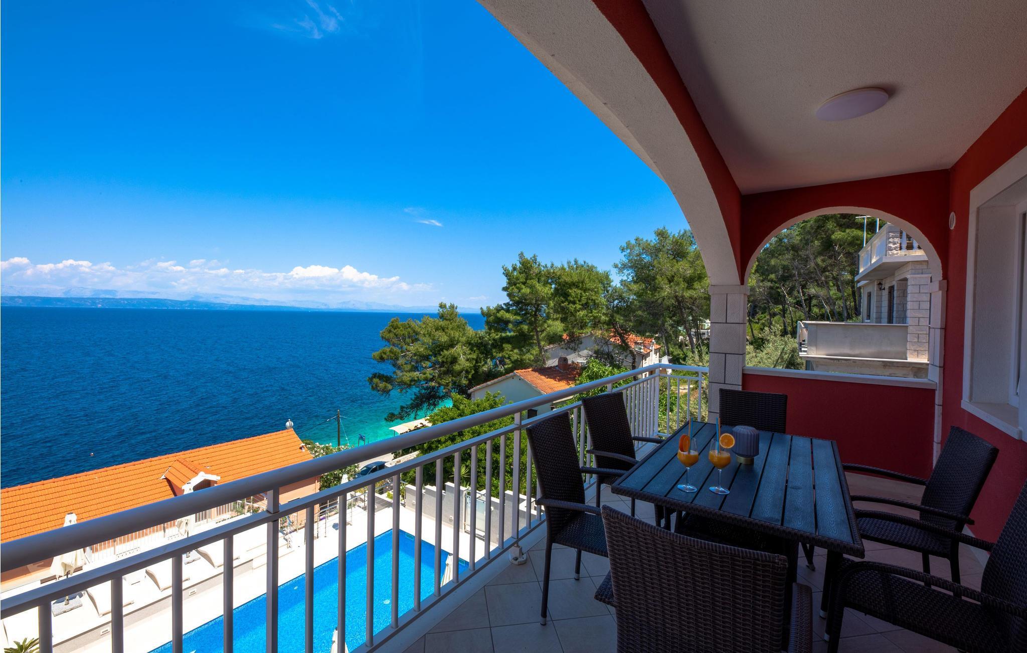 Lejlighederne er pænt og smagfuldt indrettet med herlig panoramaudsigt over havet. I stueplan er der et fælles rum med billardbord samt en grill.